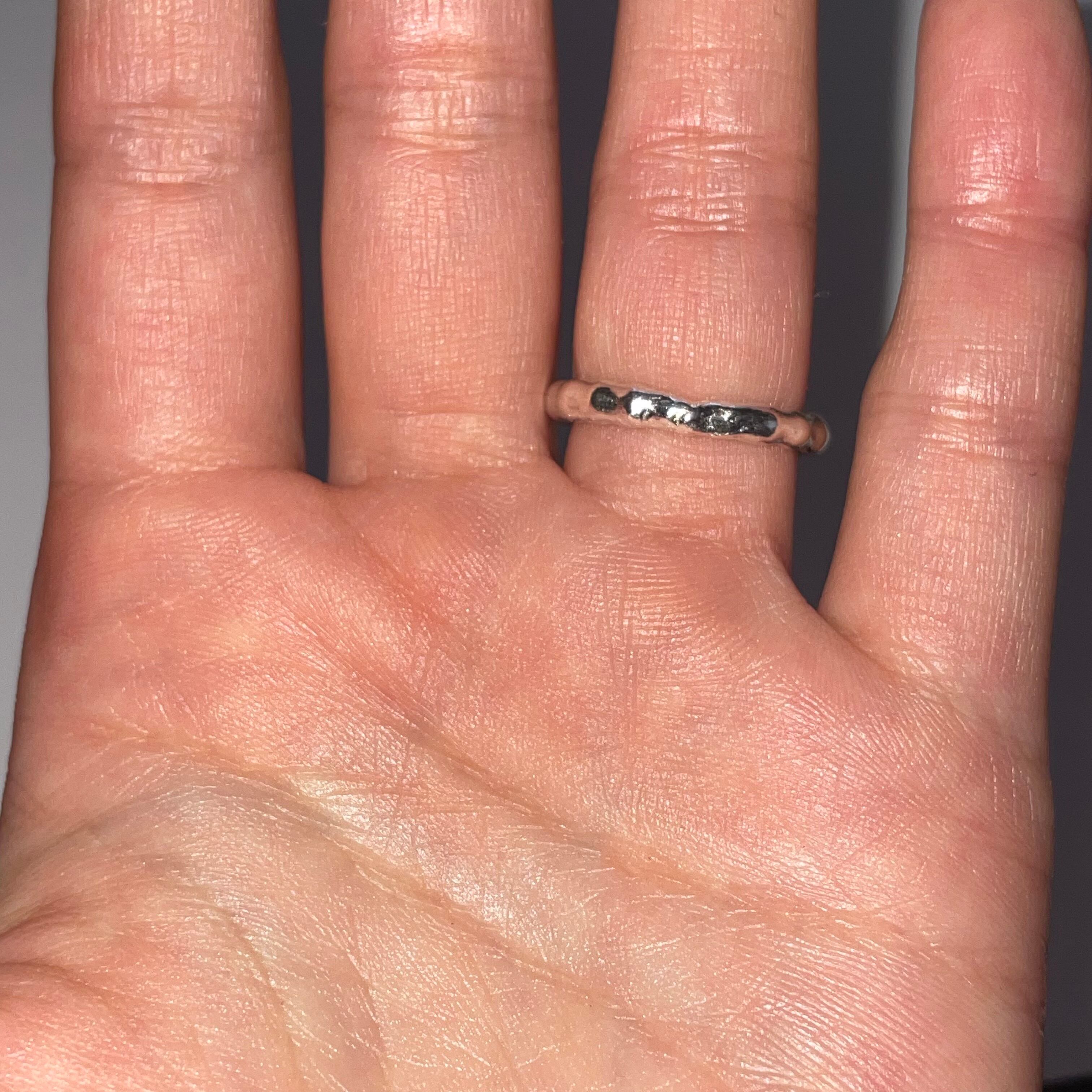 A silver ring made of recycled silver clay with a purity of 99.9% or higher.