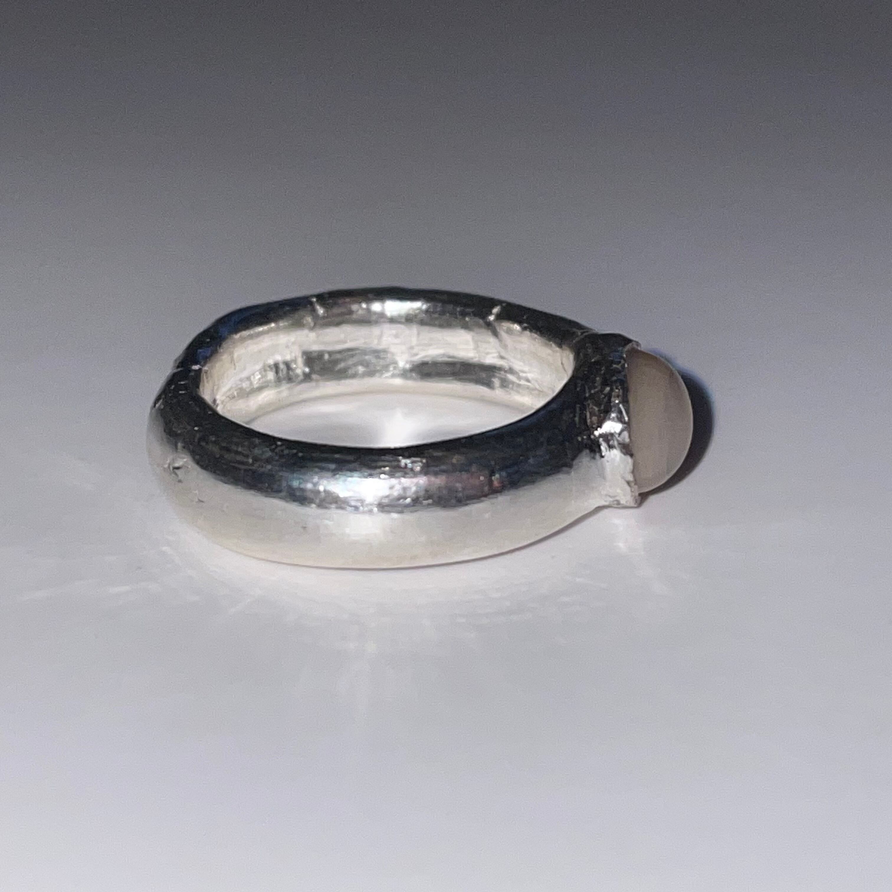 A silver ring made of recycled silver clay with a purity of 99.9% or higher.