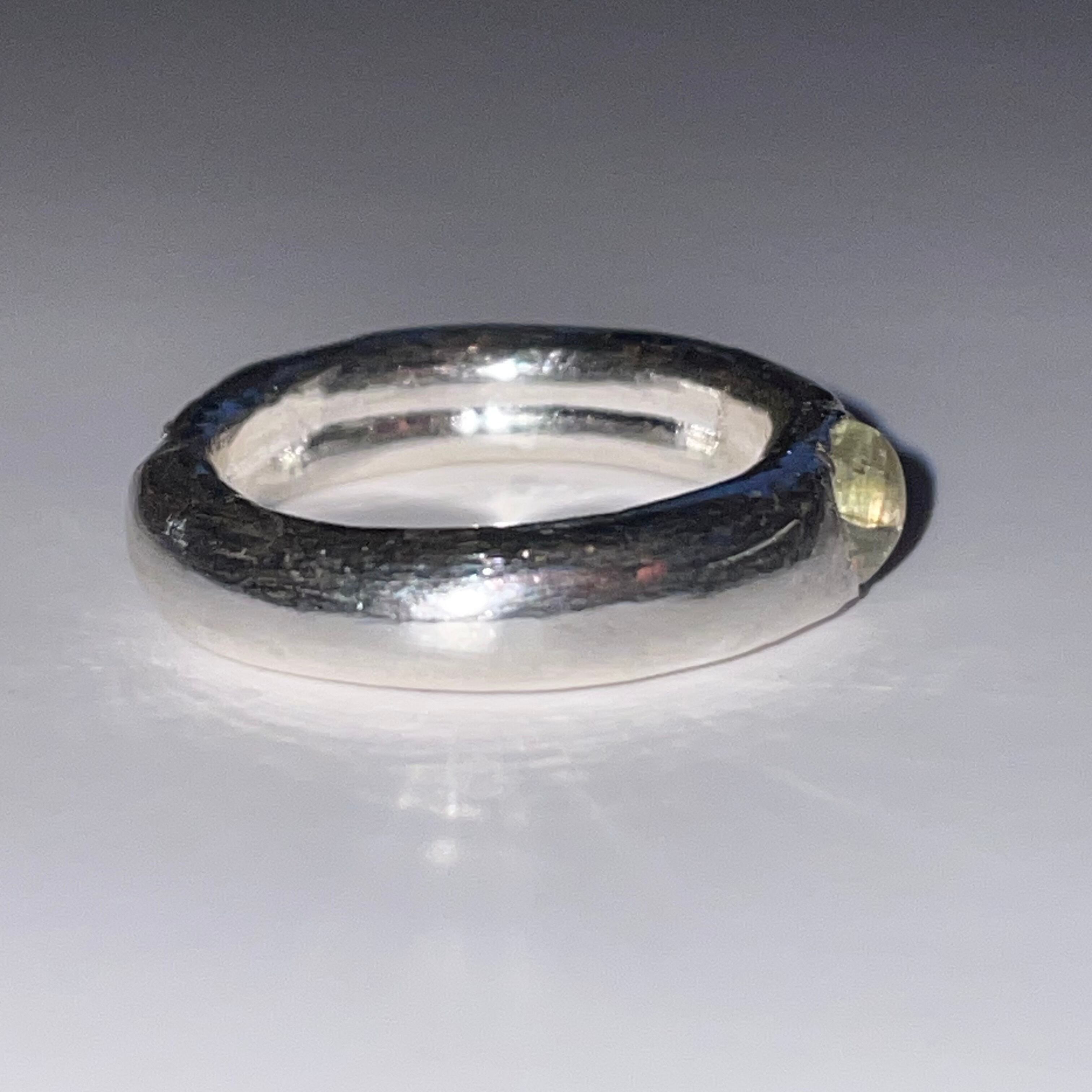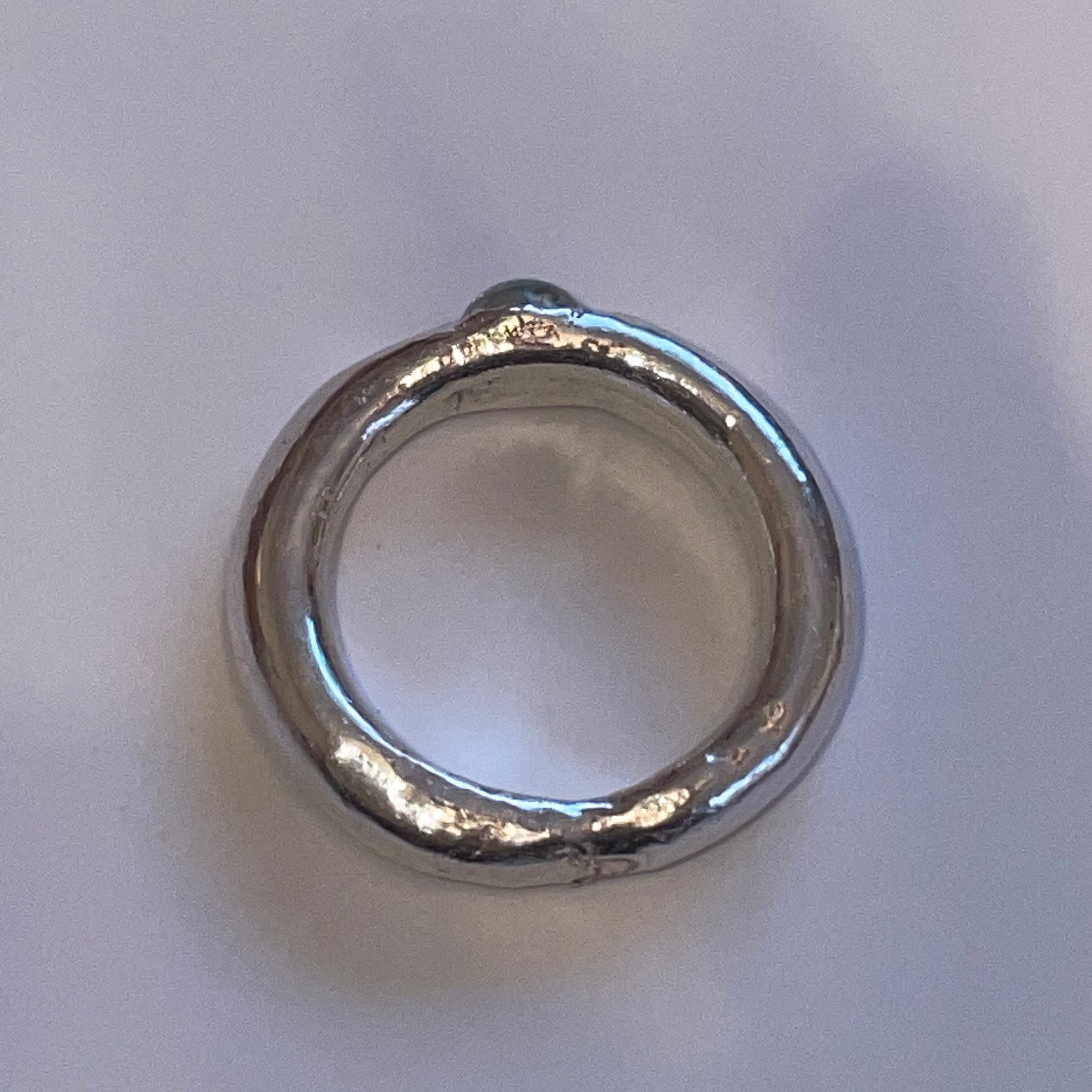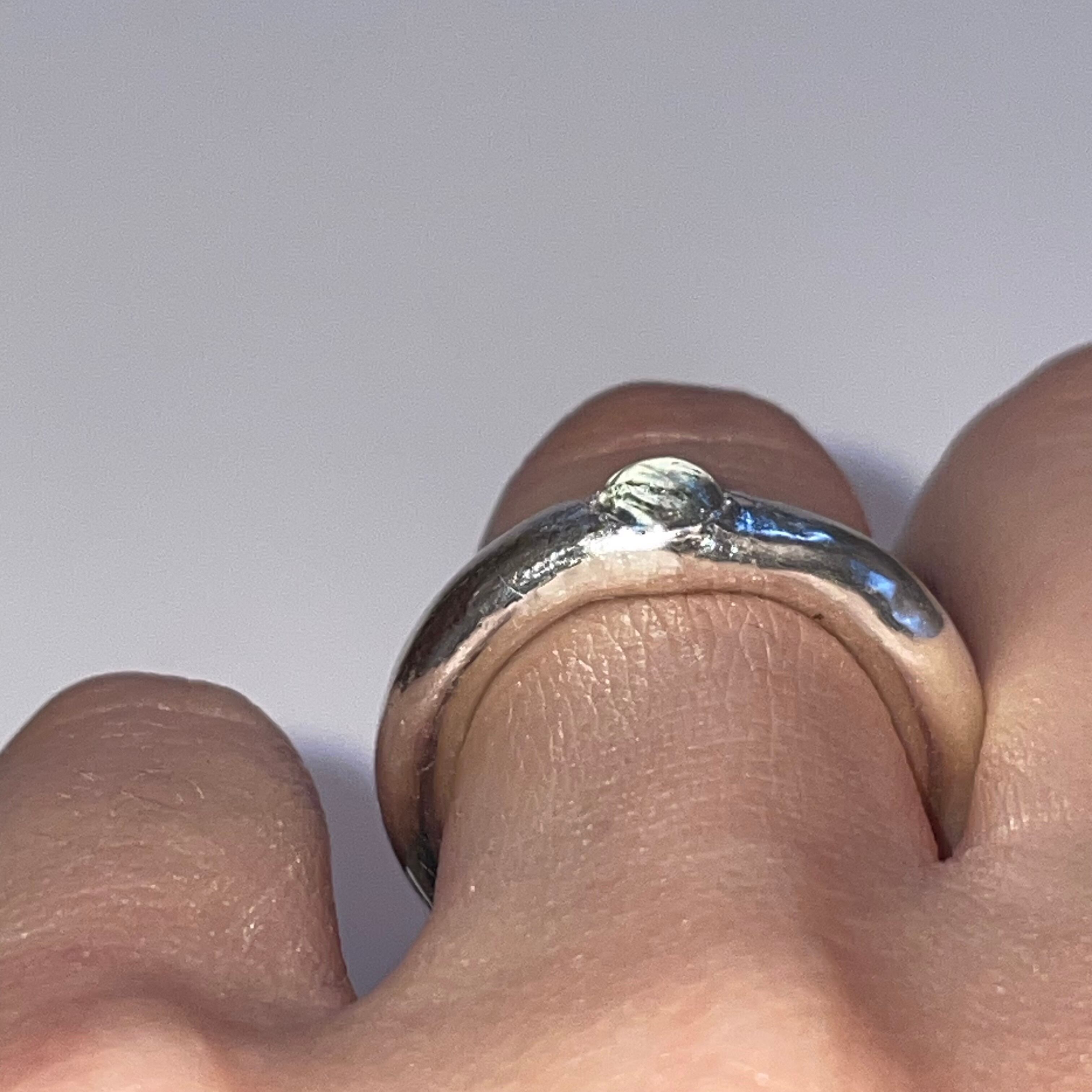 A silver ring made of recycled silver clay with a purity of 99.9% or higher.