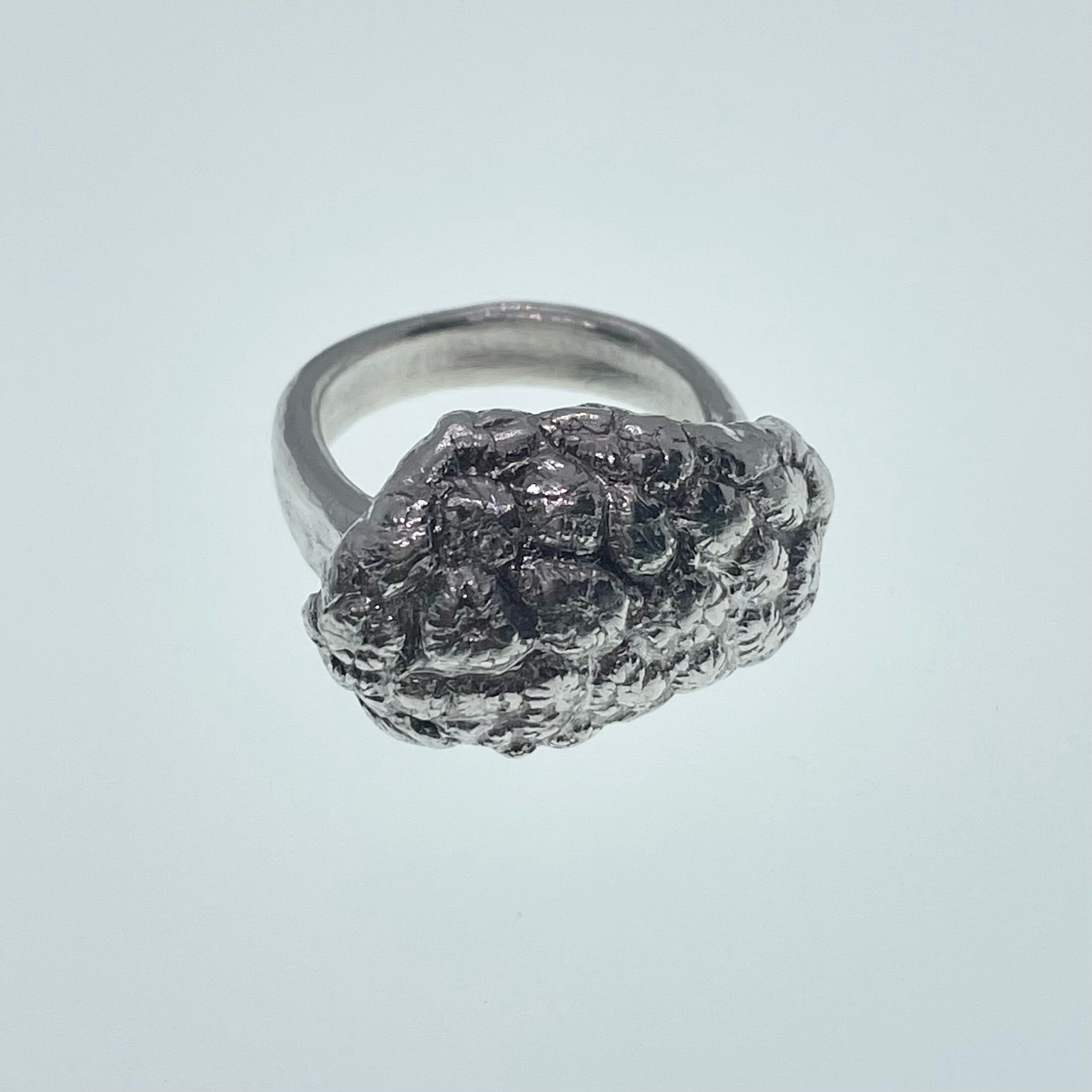 A silver ring made of silver clay with a purity of 99.9% or higher.