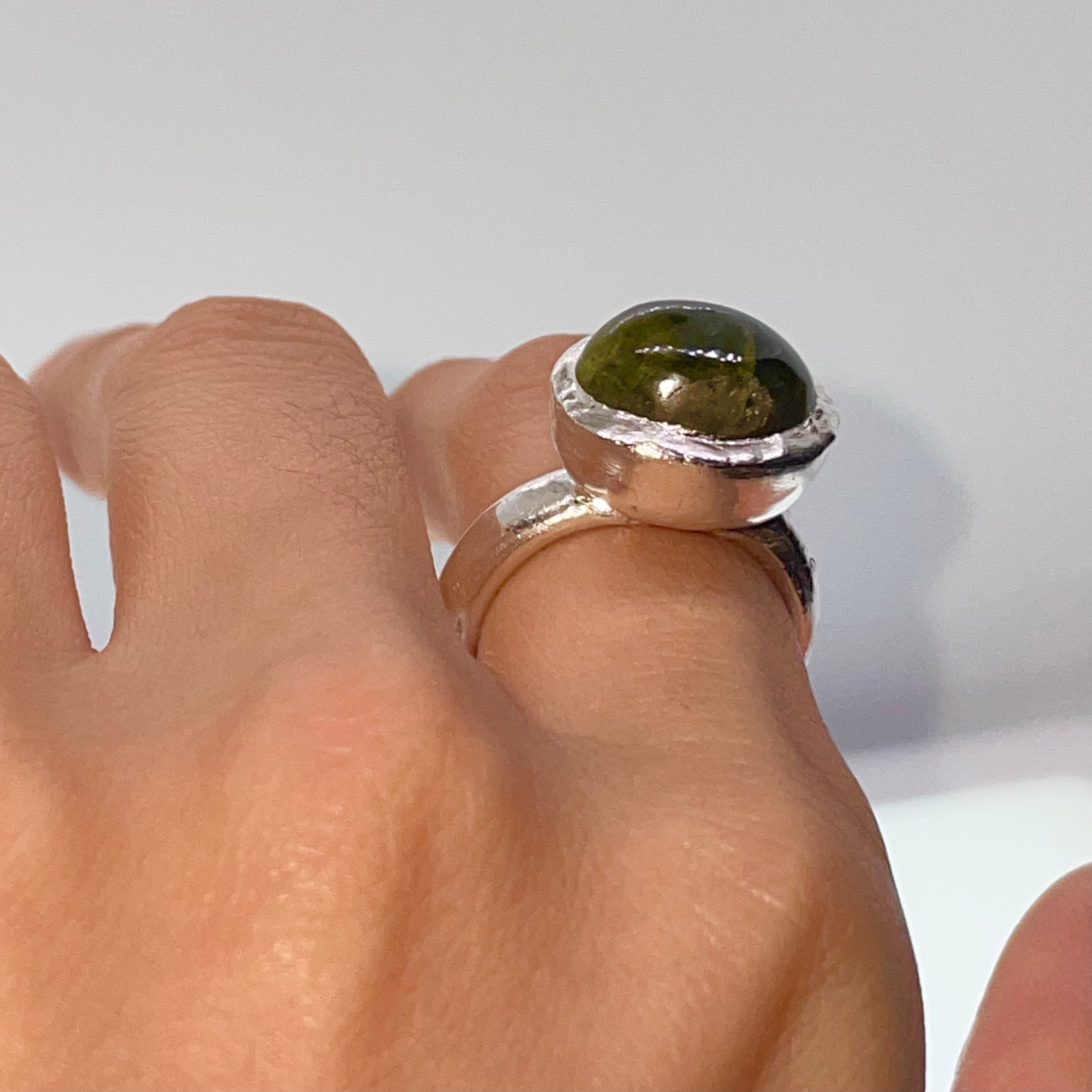 材質: リサイクル銀粘土(純銀99.9%)、天然ペリドット(パキスタン産)