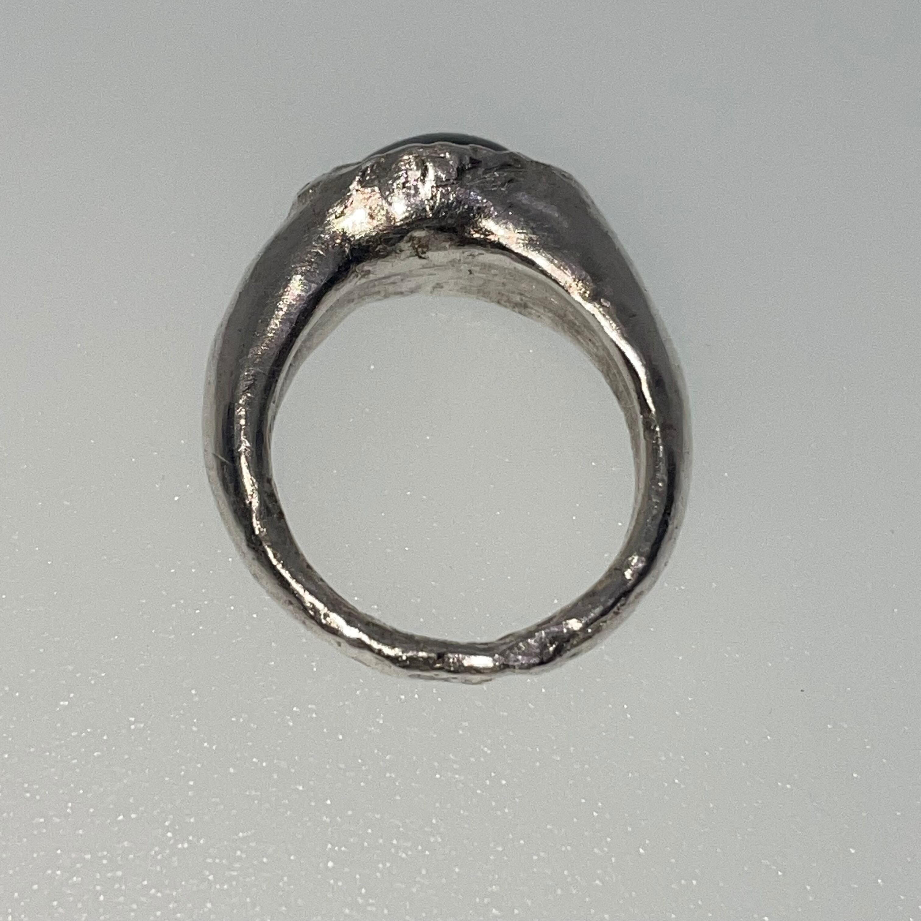 純度99.9%以上のリサイクル銀粘土に天然のルビーを埋め込んで焼き上げたシルバーリングです。
