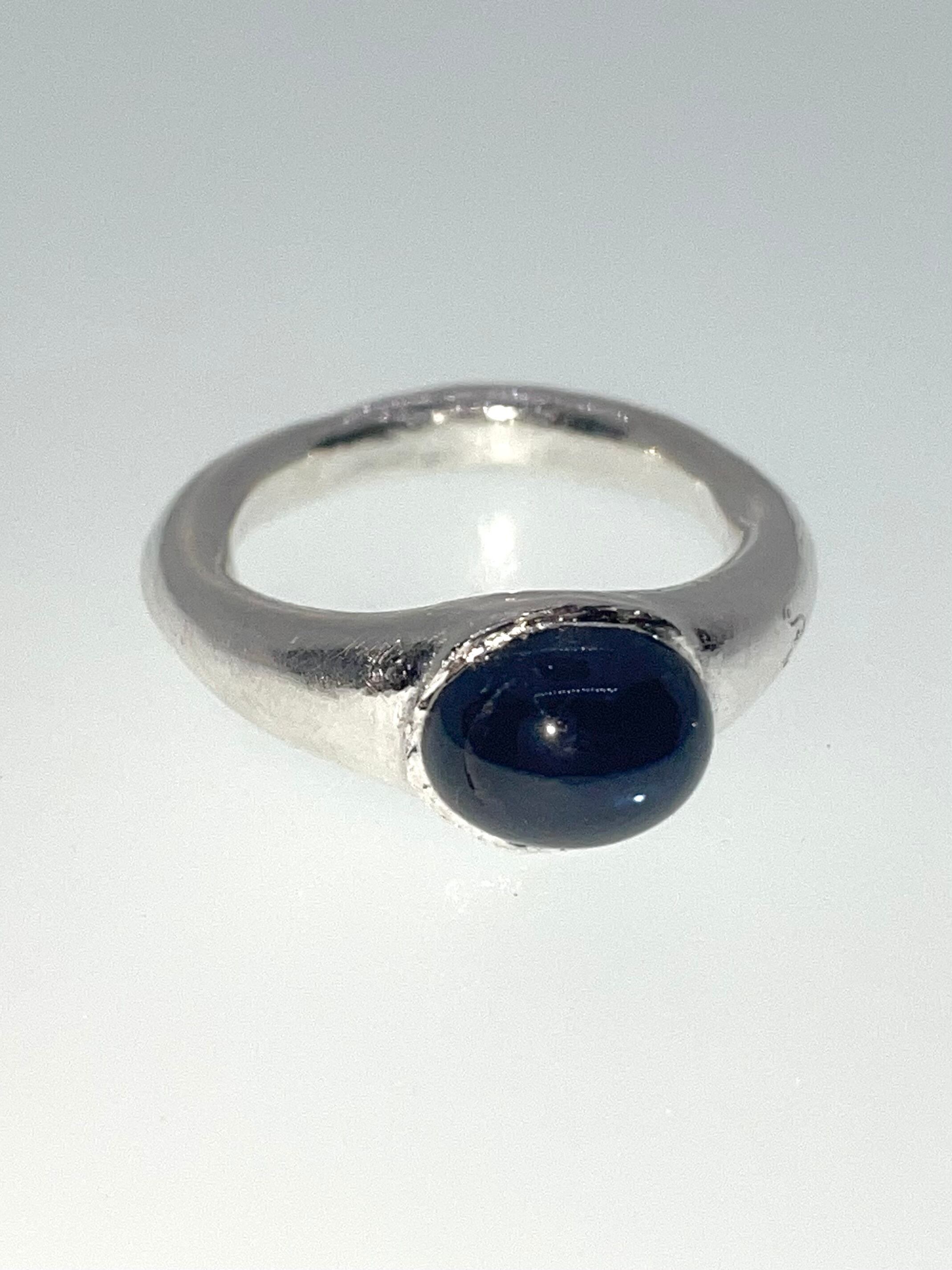 材質: リサイクル銀粘土(純銀99.9%)、天然サファイア(タイ産)