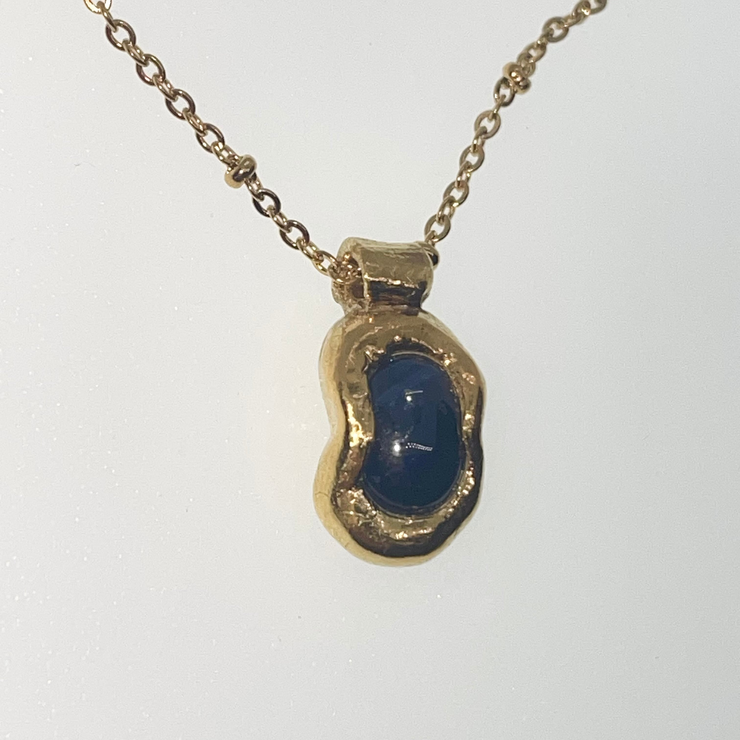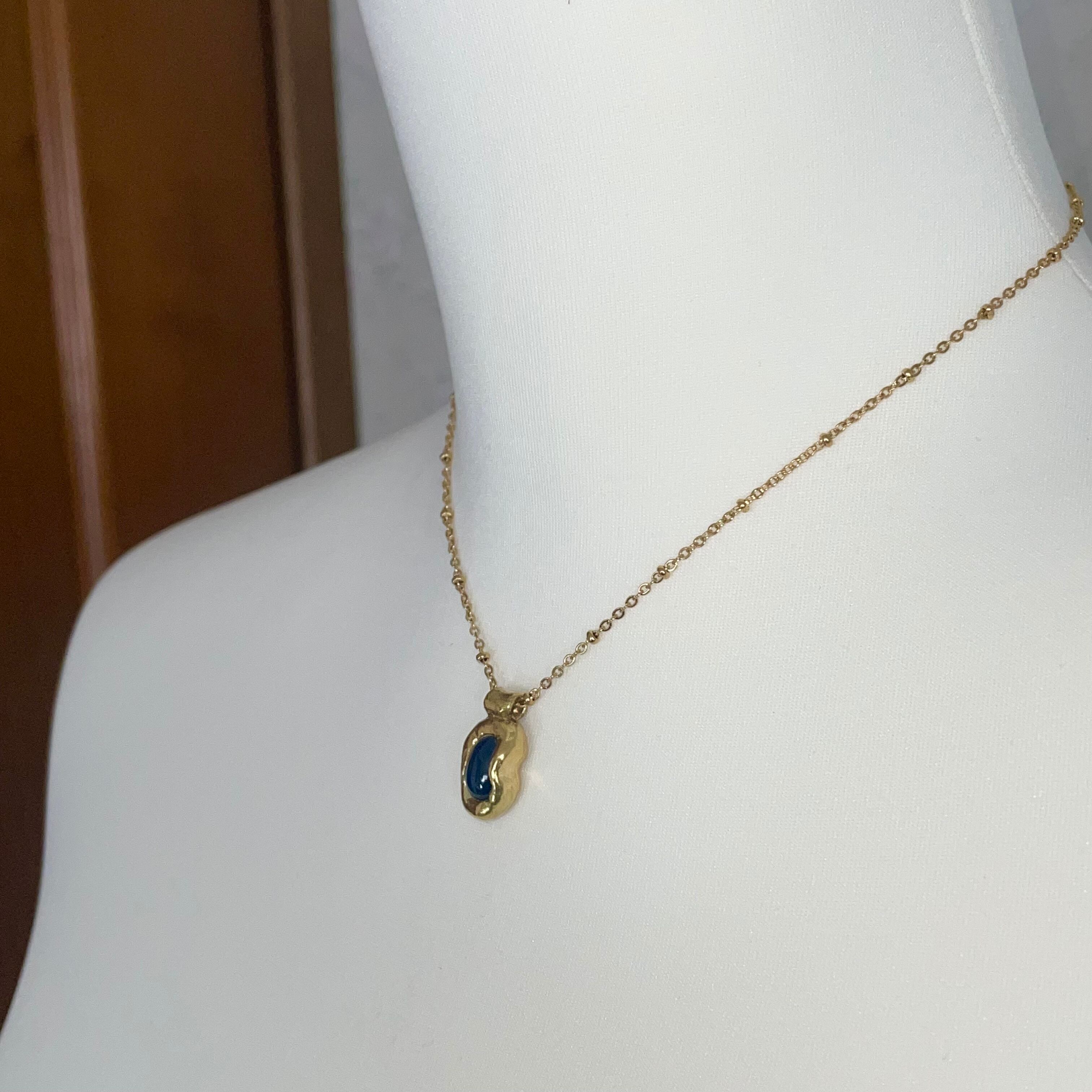 Material: Sterling silver (99.9%), sapphire, 24K gold plating, surgical stainless steel 316L chain, adjuster