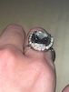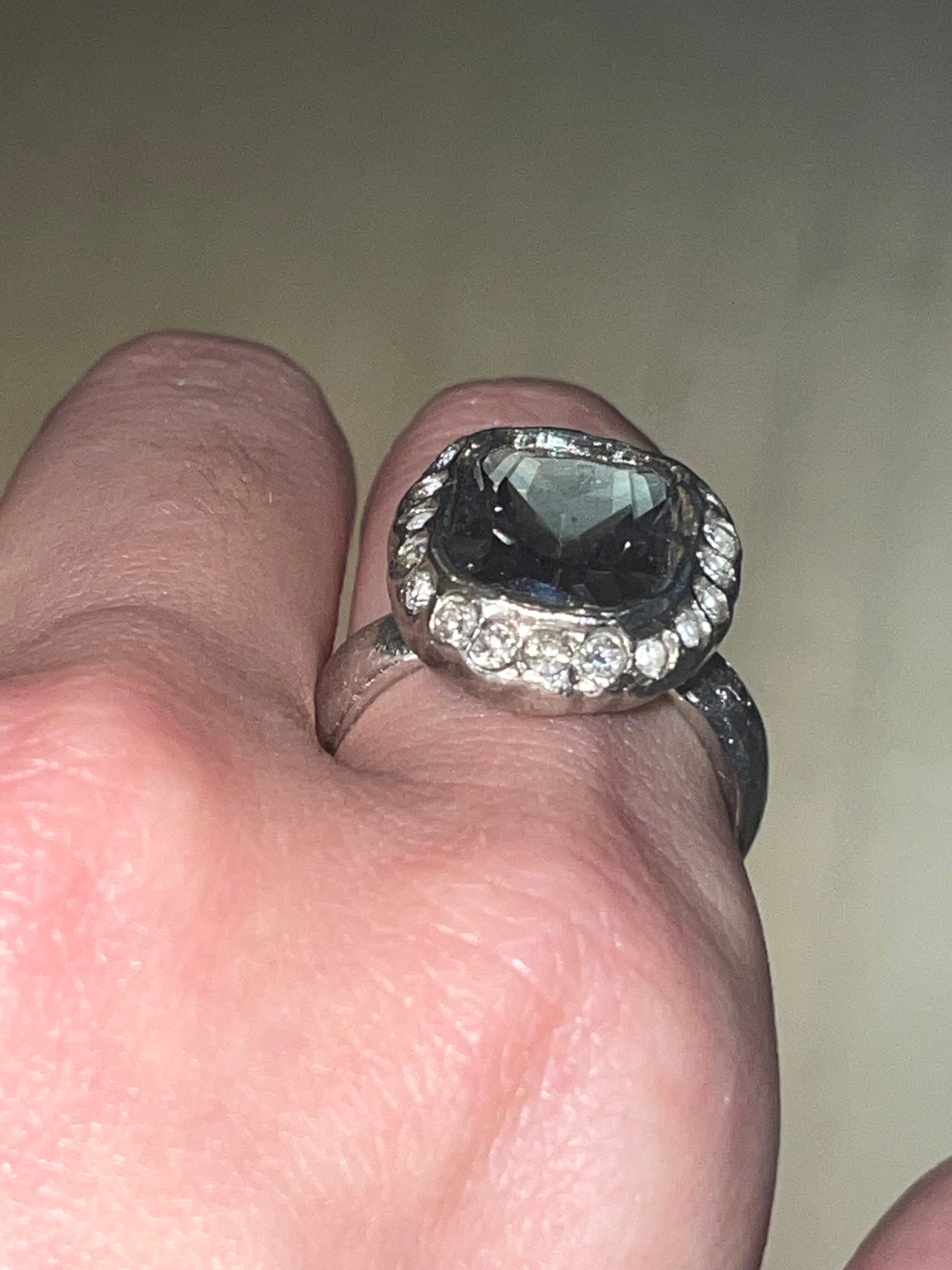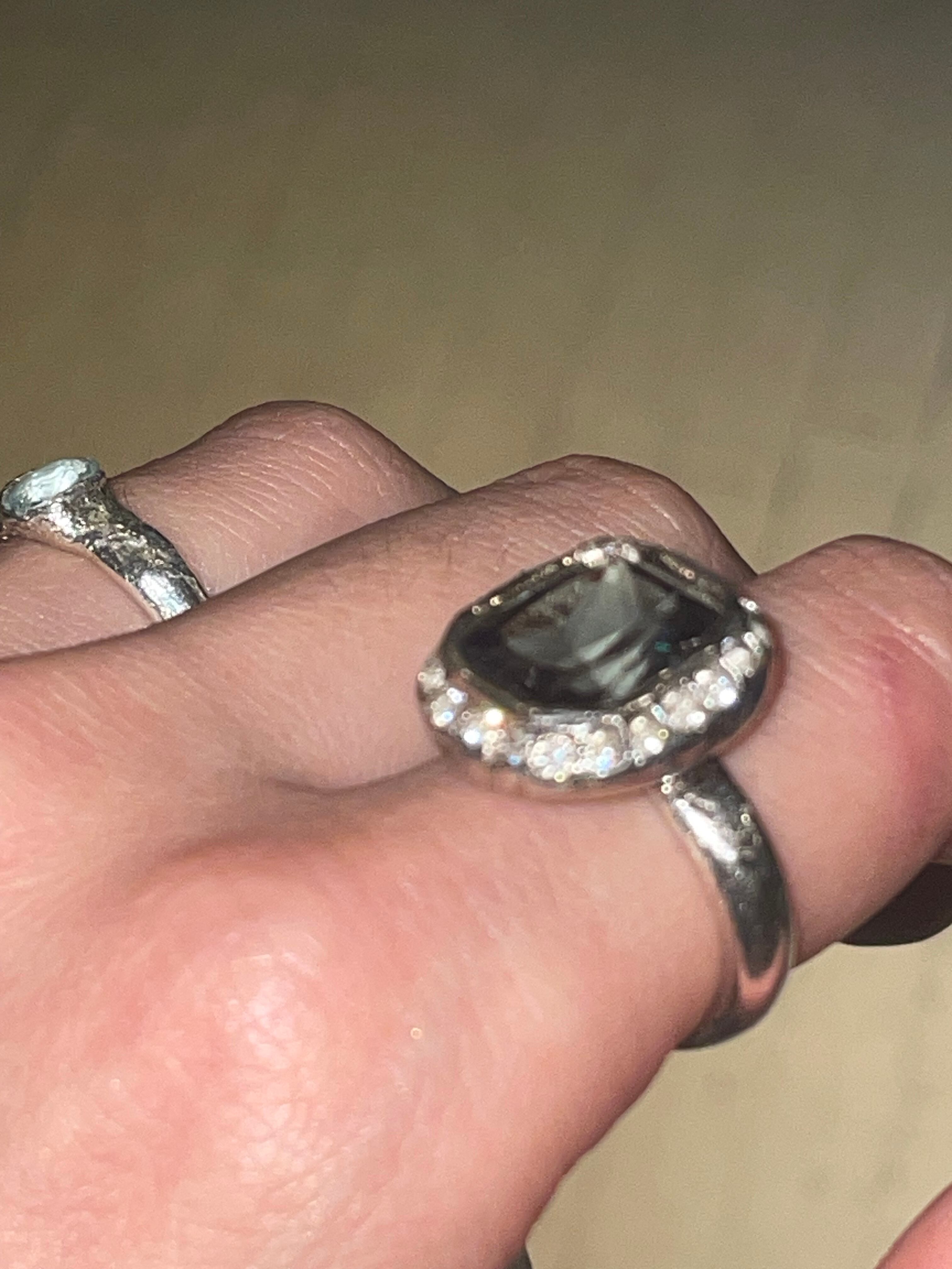 純度99.9%以上のリサイクル銀粘土に合成石埋め込んで焼き上げたシルバーリングです。