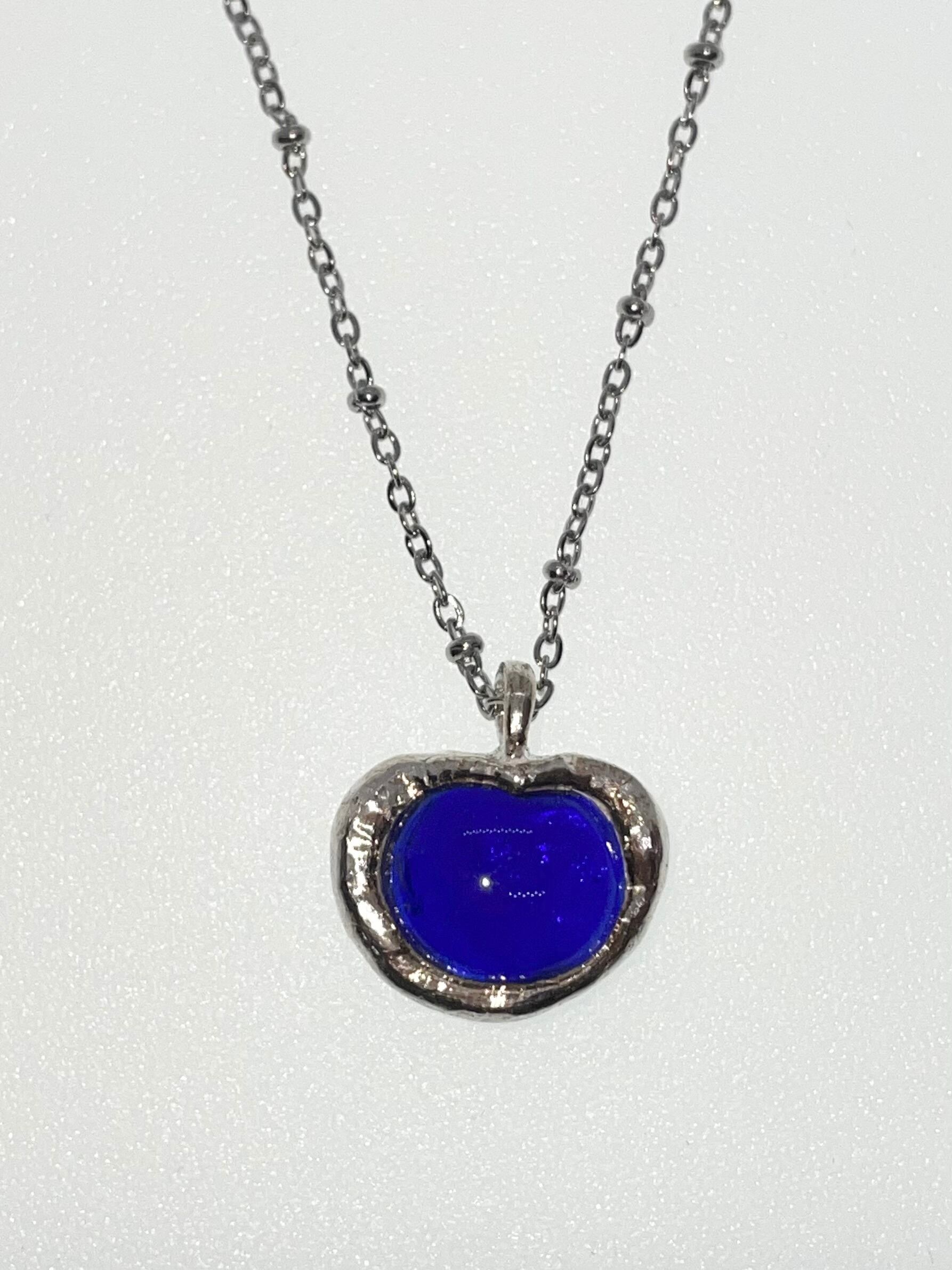 Material: Pure silver (99.9%), Okinawa Ryukyu-glass, surgical stainless steel 316L chain, adjuster