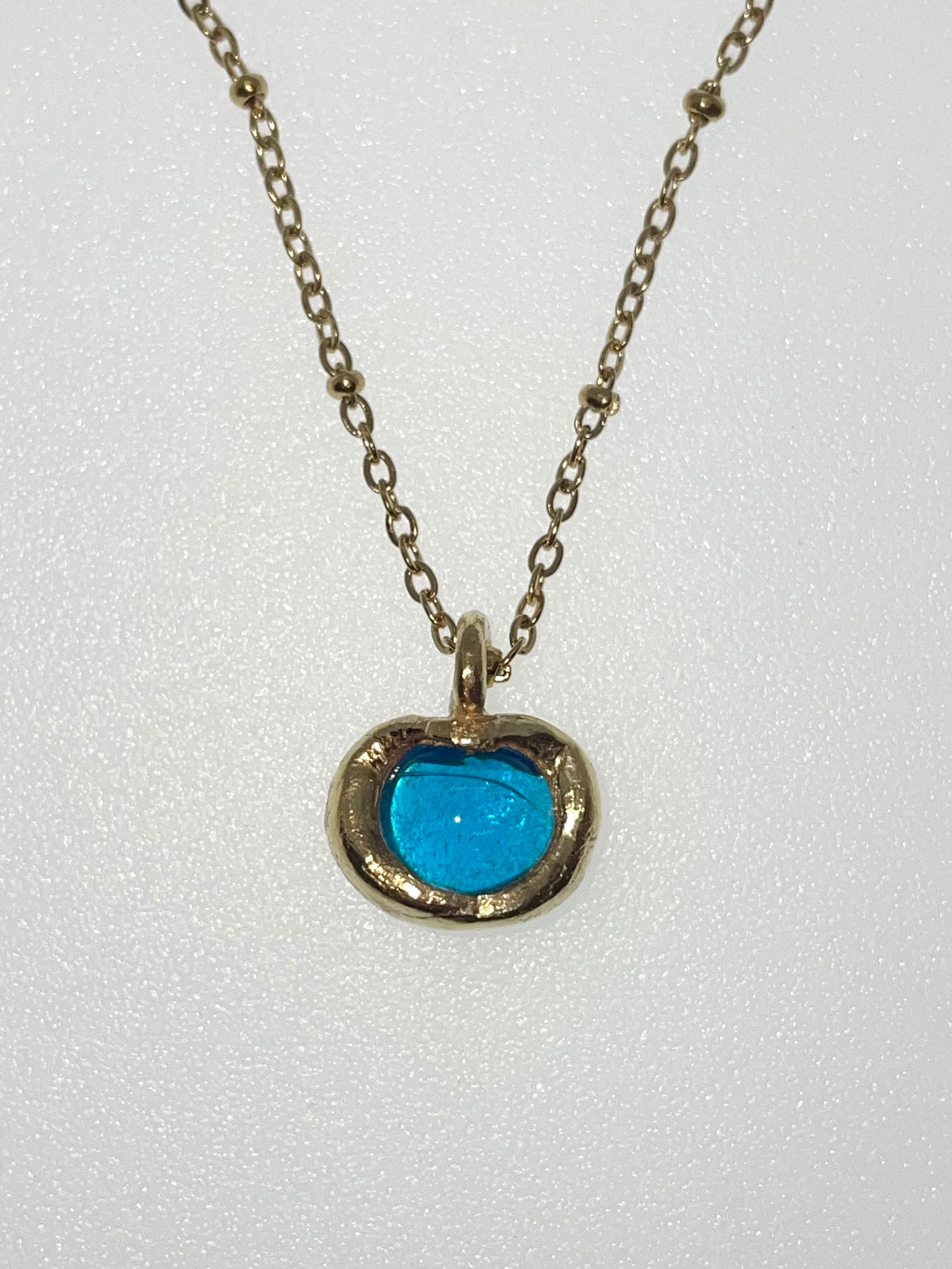 Material: Pure silver (99.9%), Okinawa Ryukyu-glass, 24K gold plating, surgical stainless steel 316L chain, adjuster