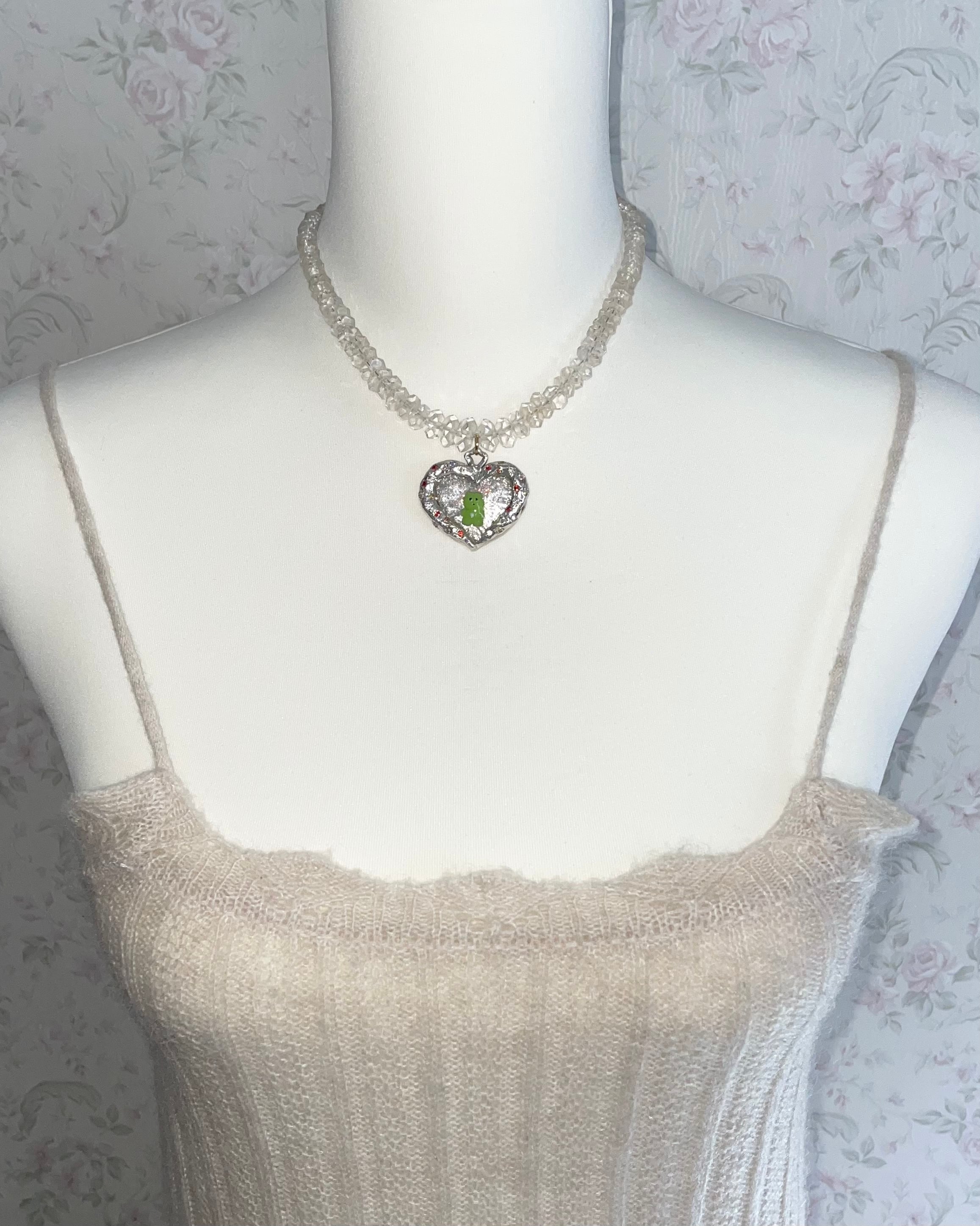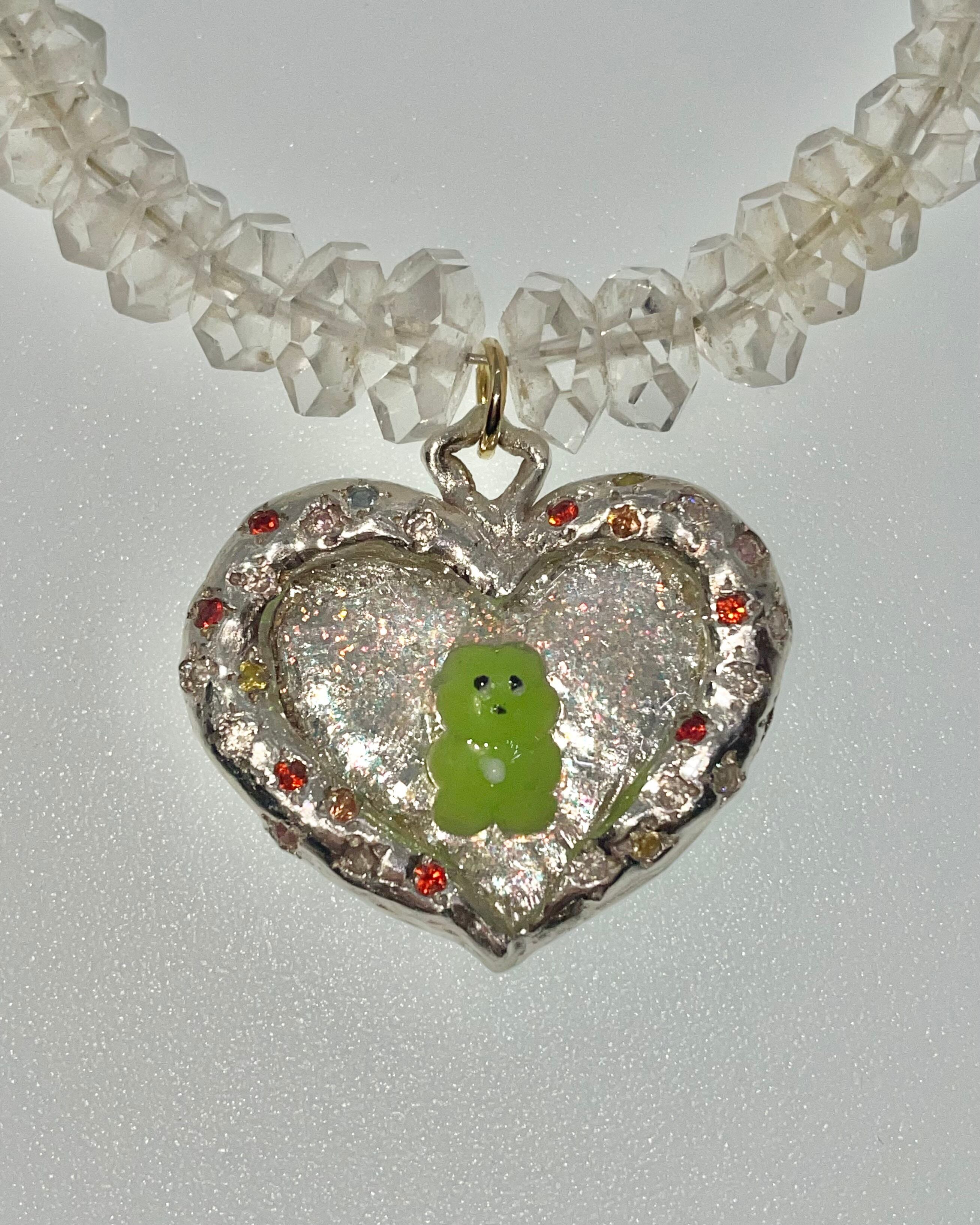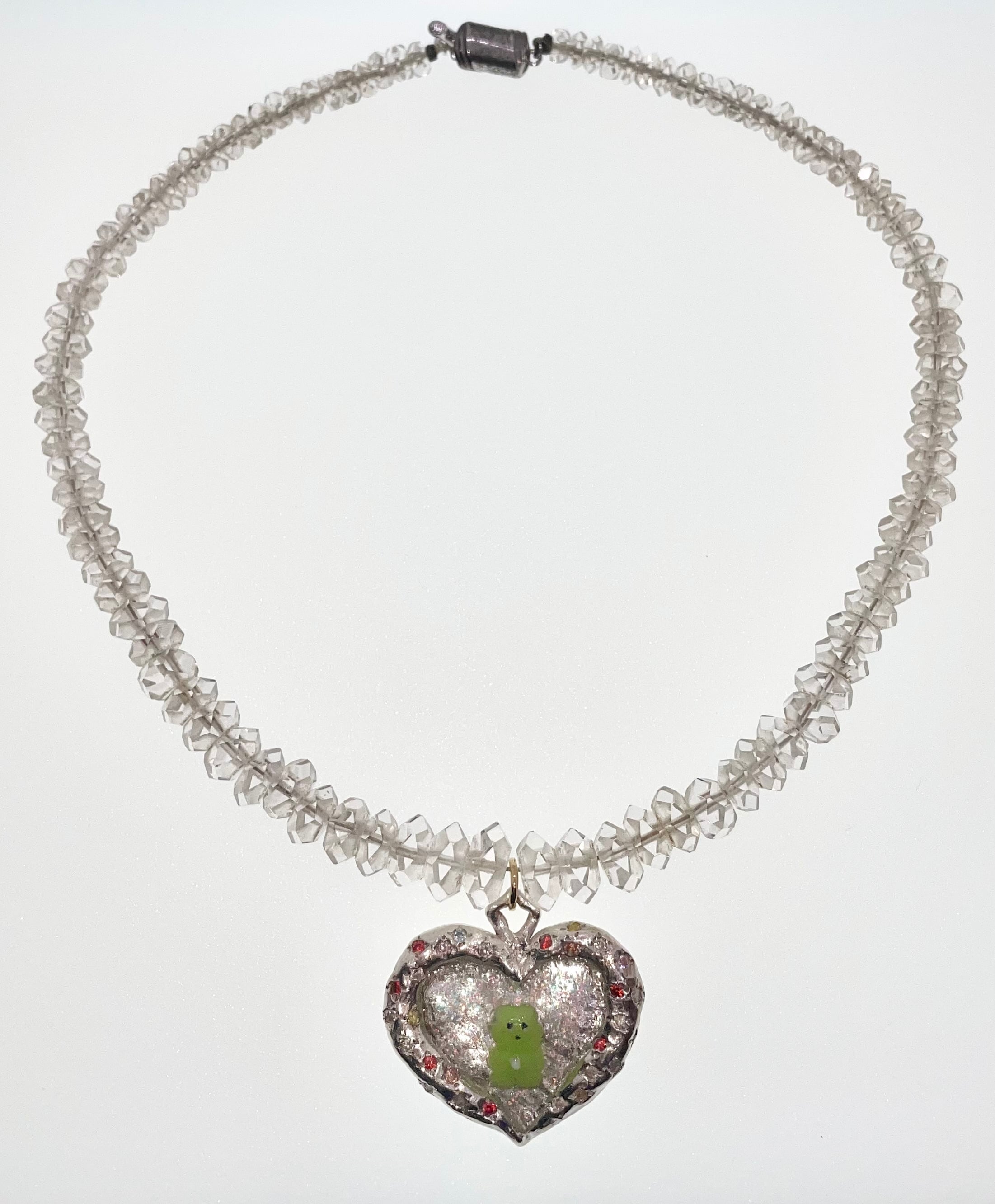 材質: 純銀(99.9%)、合成石、樹脂、天然水晶ビーズ、金属パーツ(ネックレスリメイク品)