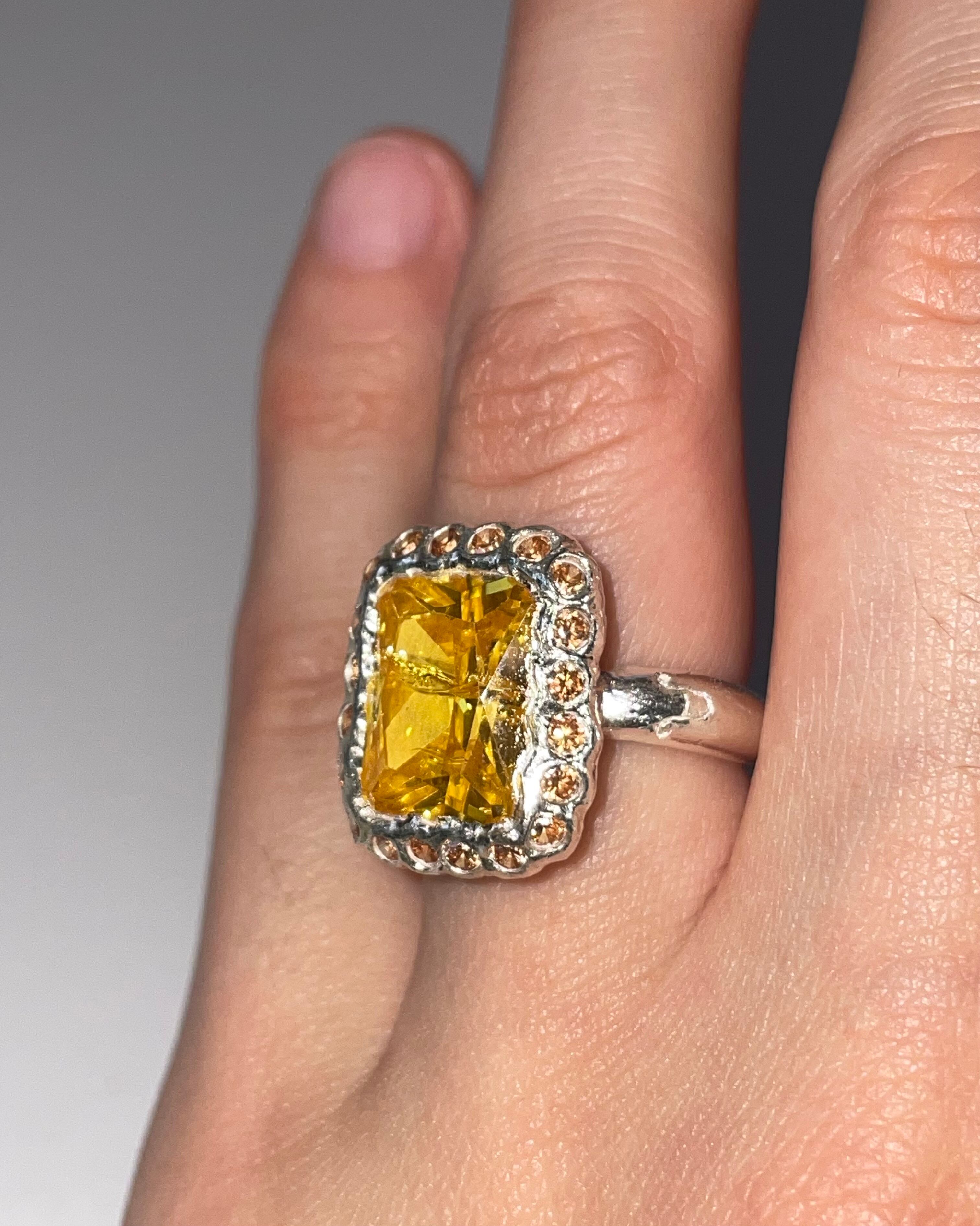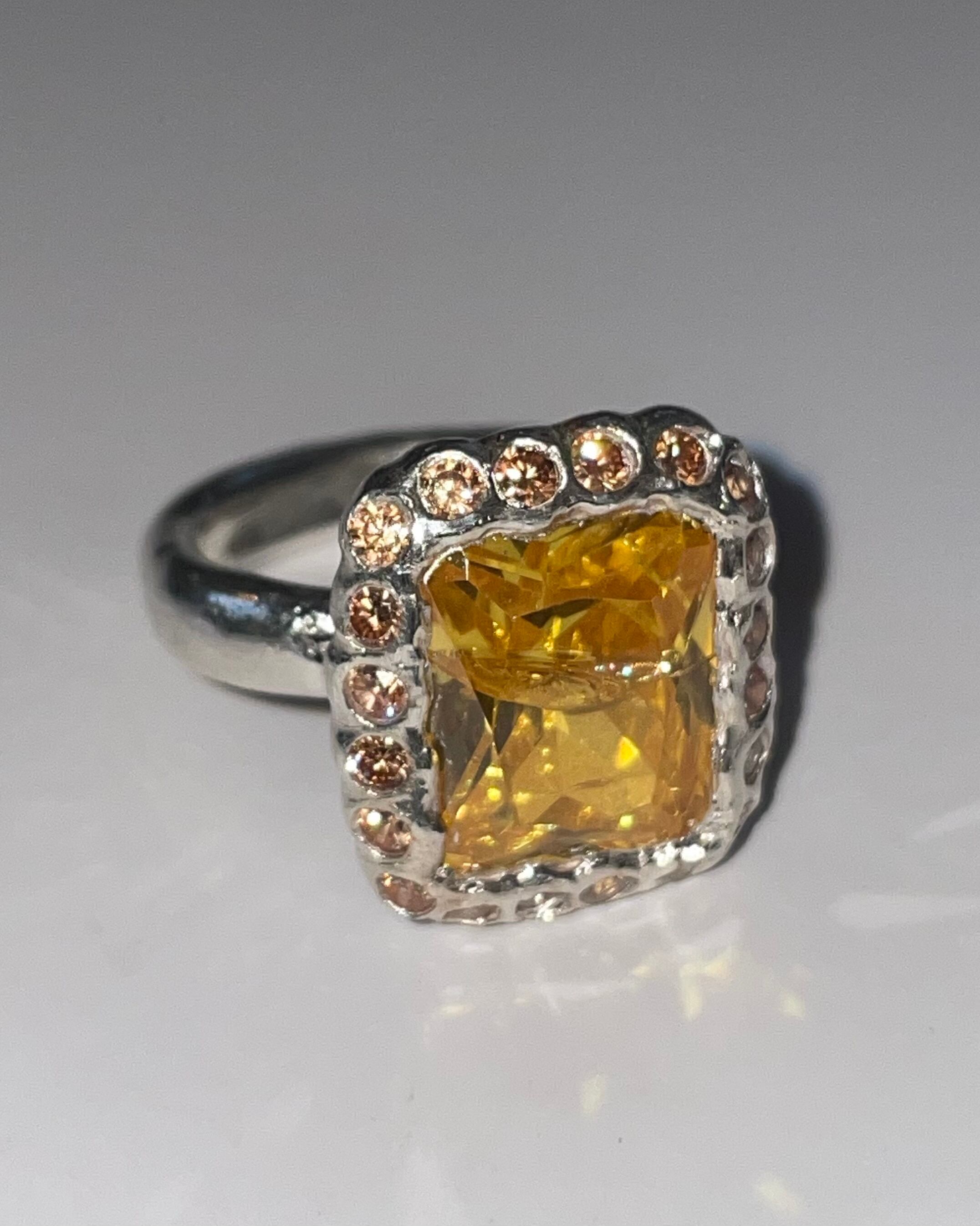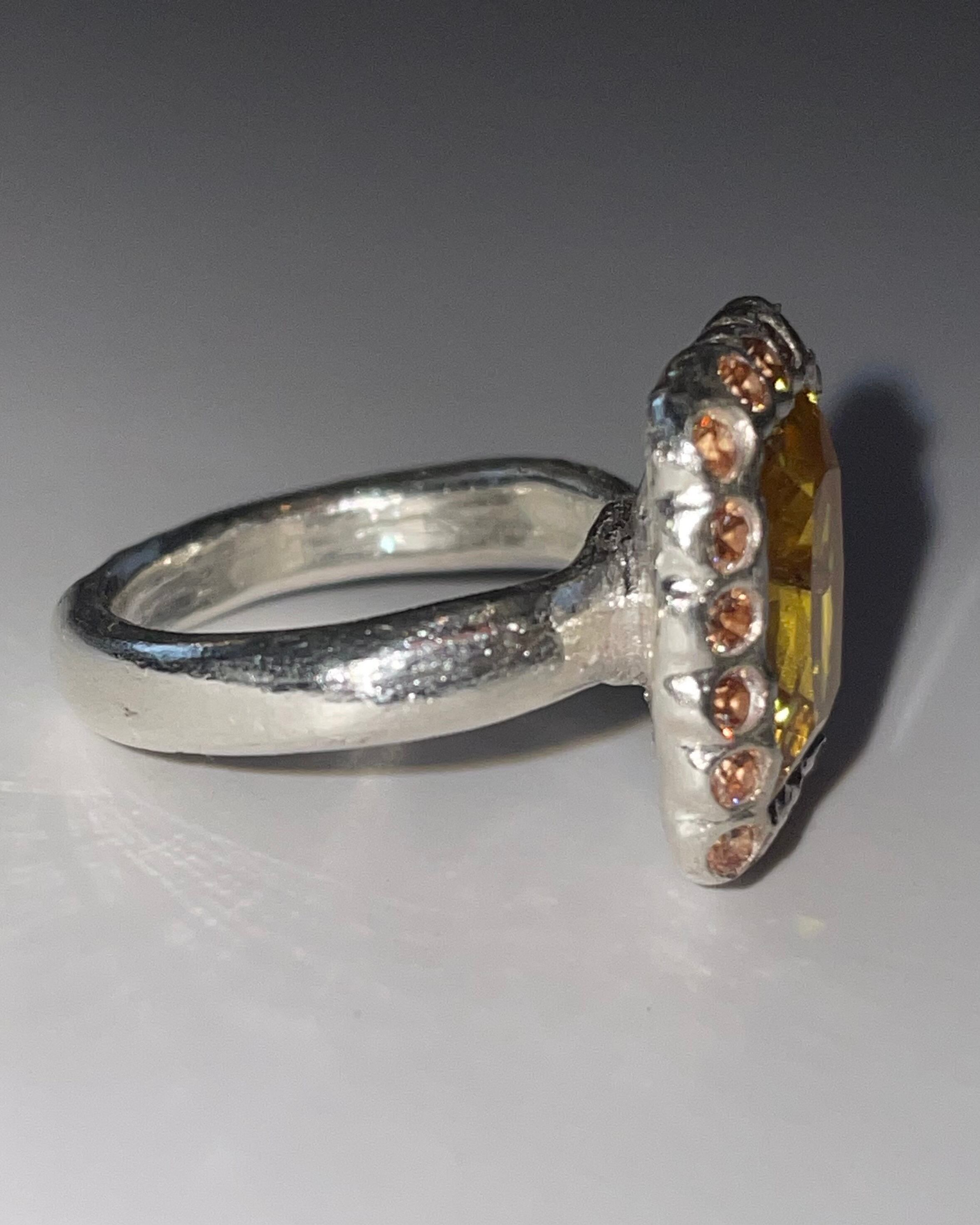 A silver ring made by embedding Synthetic stones in recycled silver clay with a purity of 99.9% or higher.