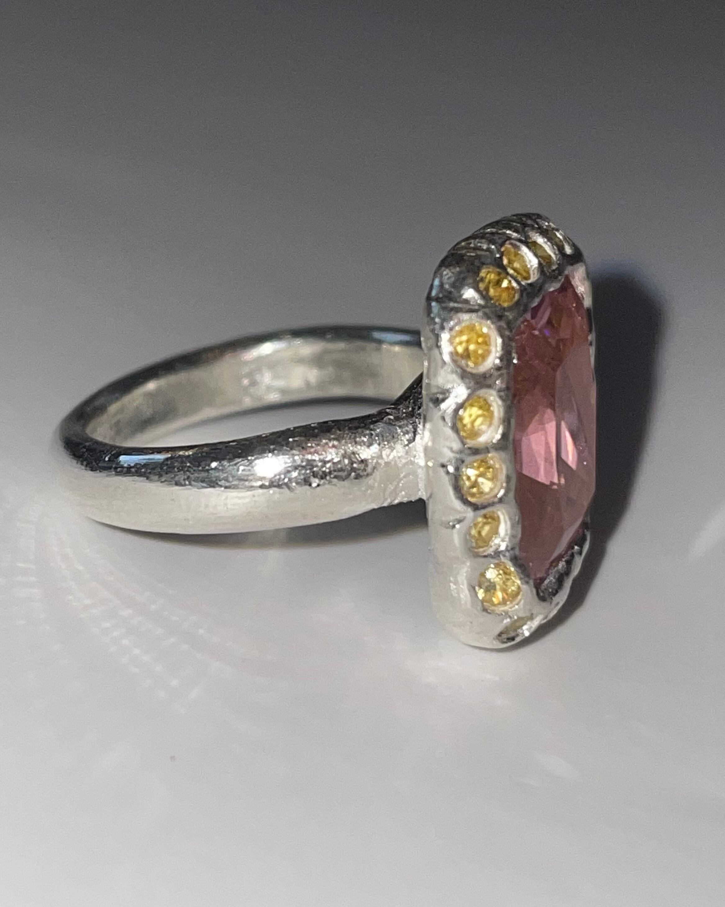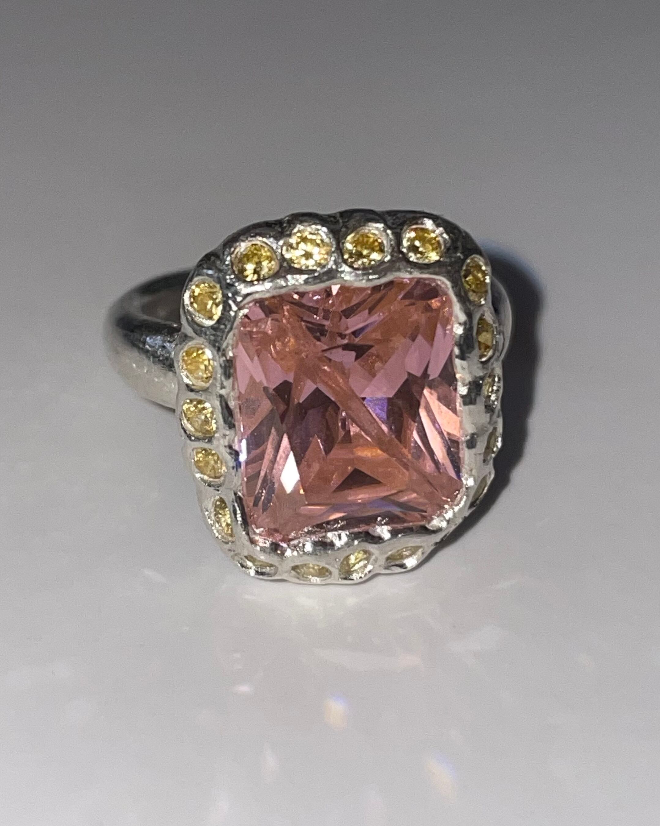 A silver ring made by embedding Synthetic stones in recycled silver clay with a purity of 99.9% or higher.