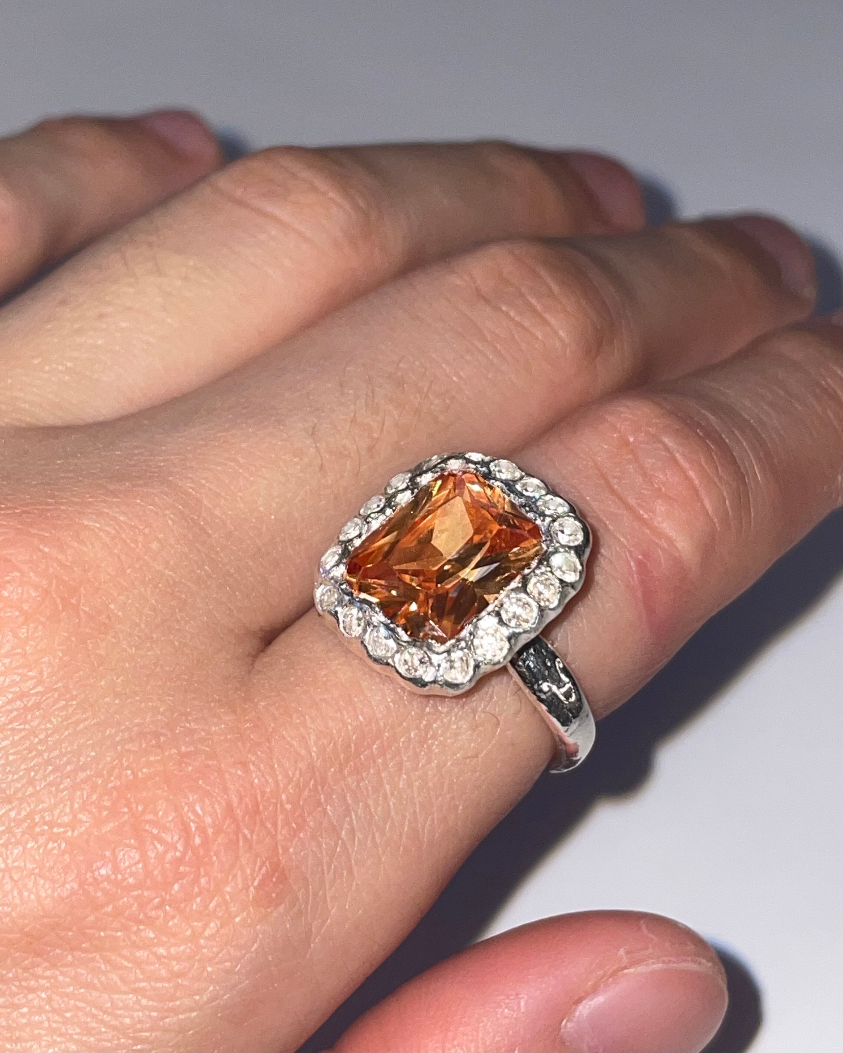 純度99.9%以上のリサイクル銀粘土に合成石埋め込んで焼き上げたシルバーリングです。