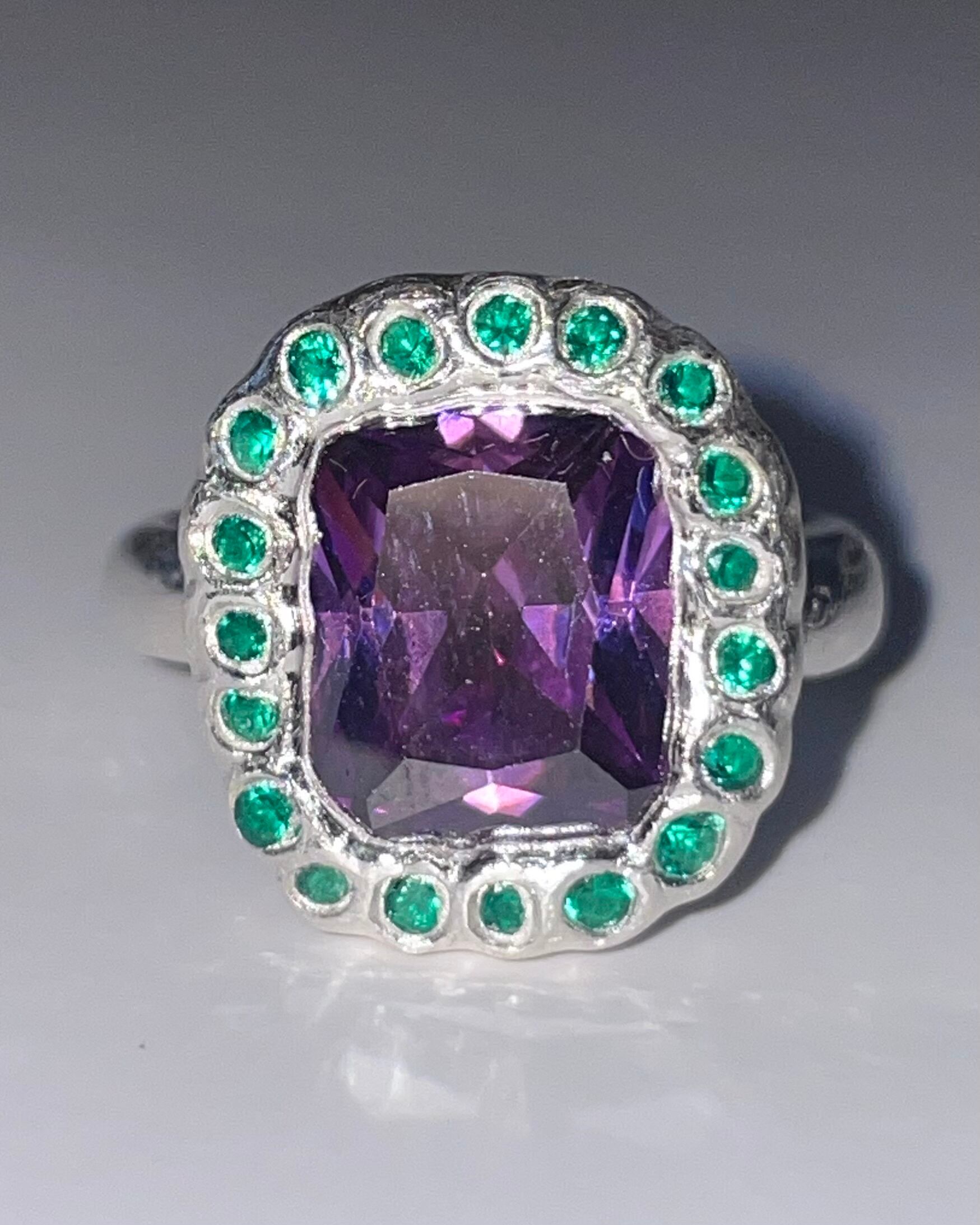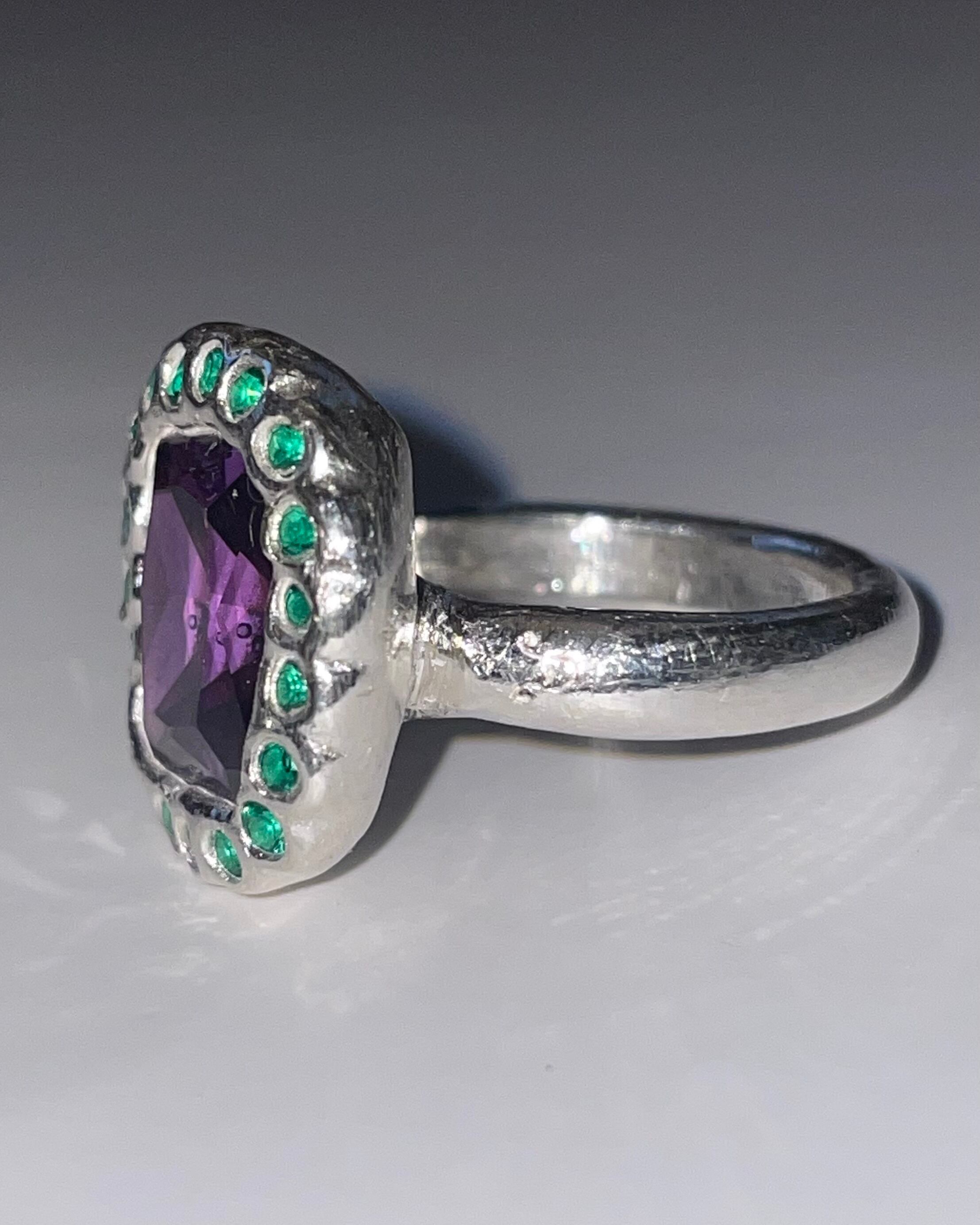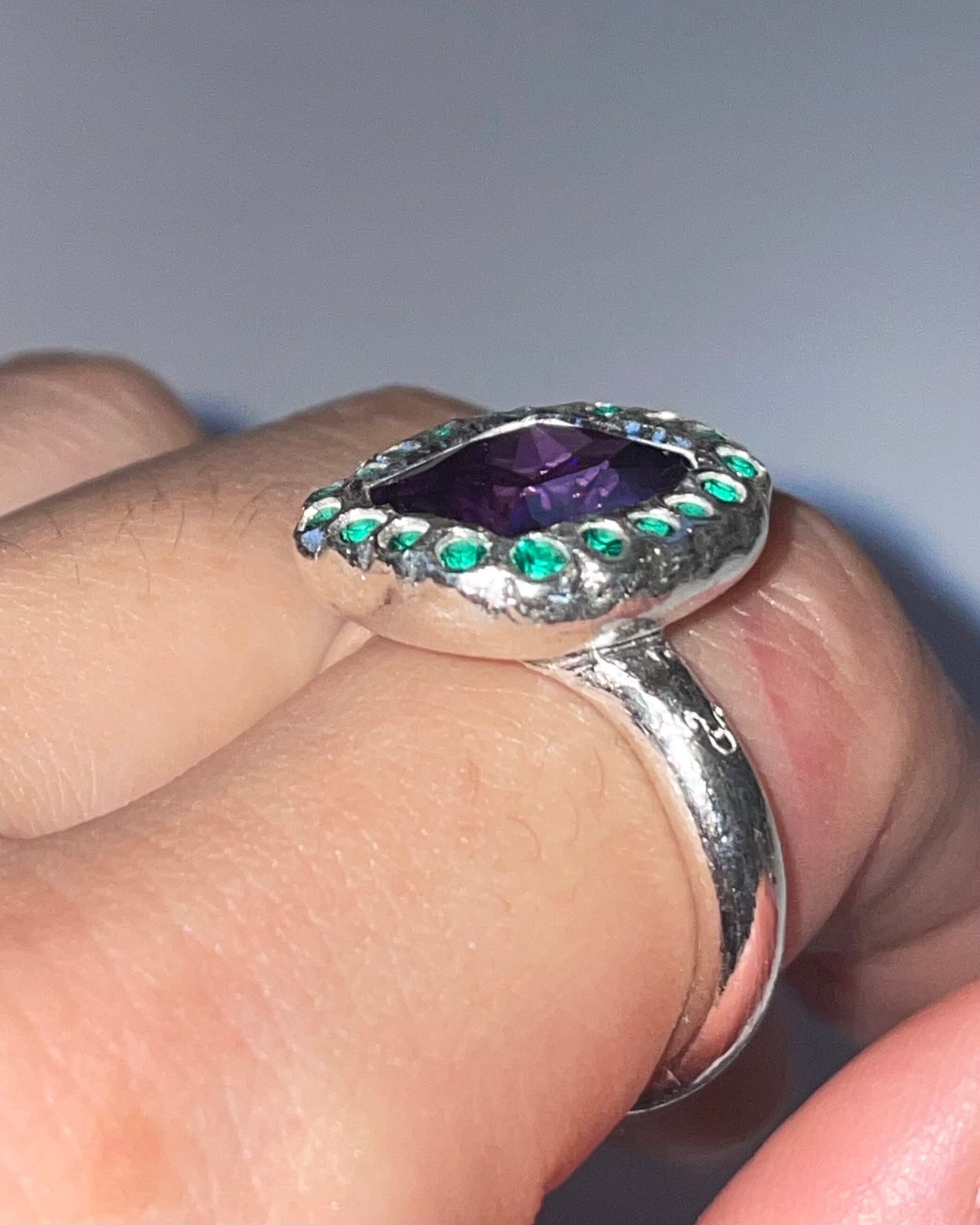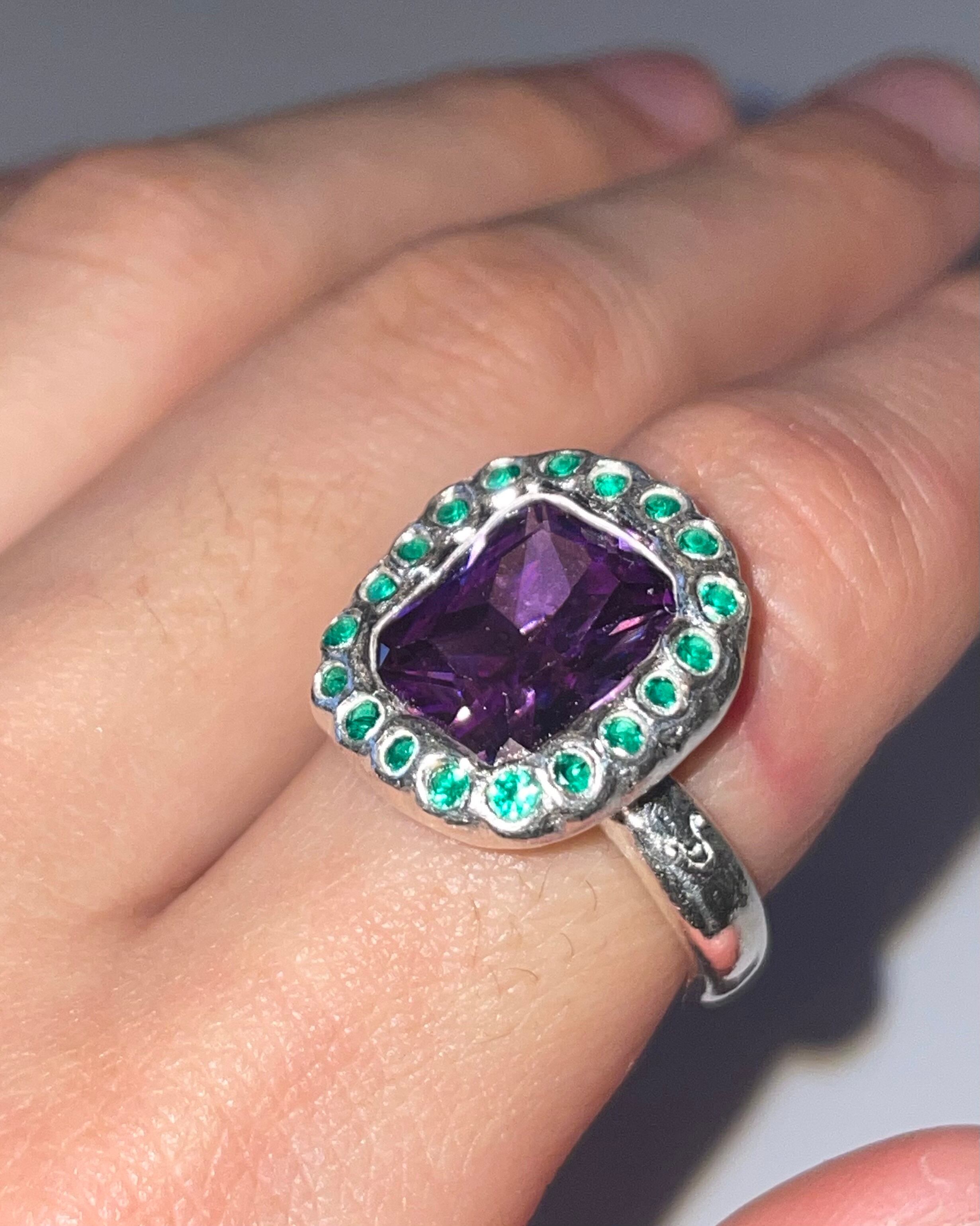 A silver ring made by embedding Synthetic stones in recycled silver clay with a purity of 99.9% or higher.