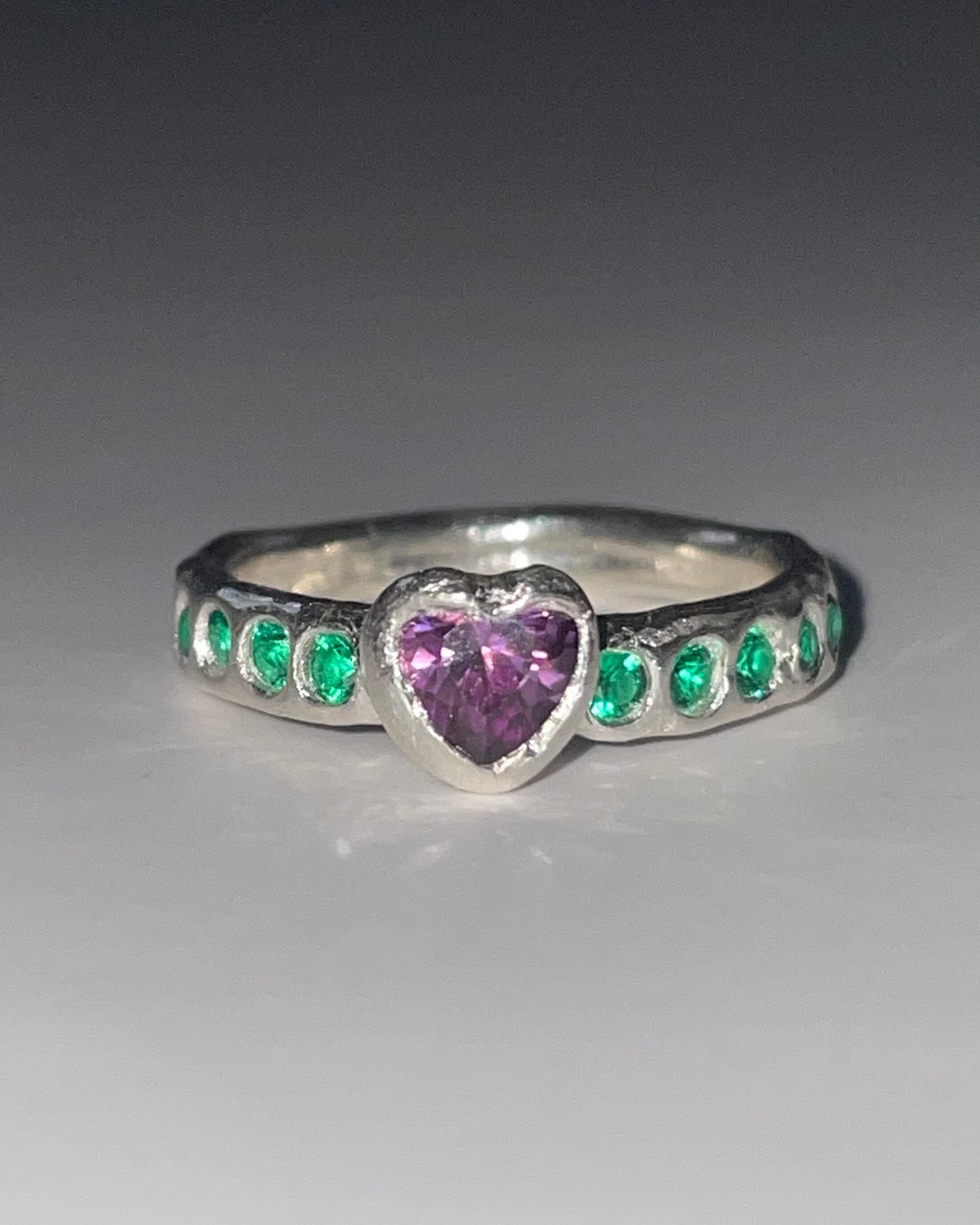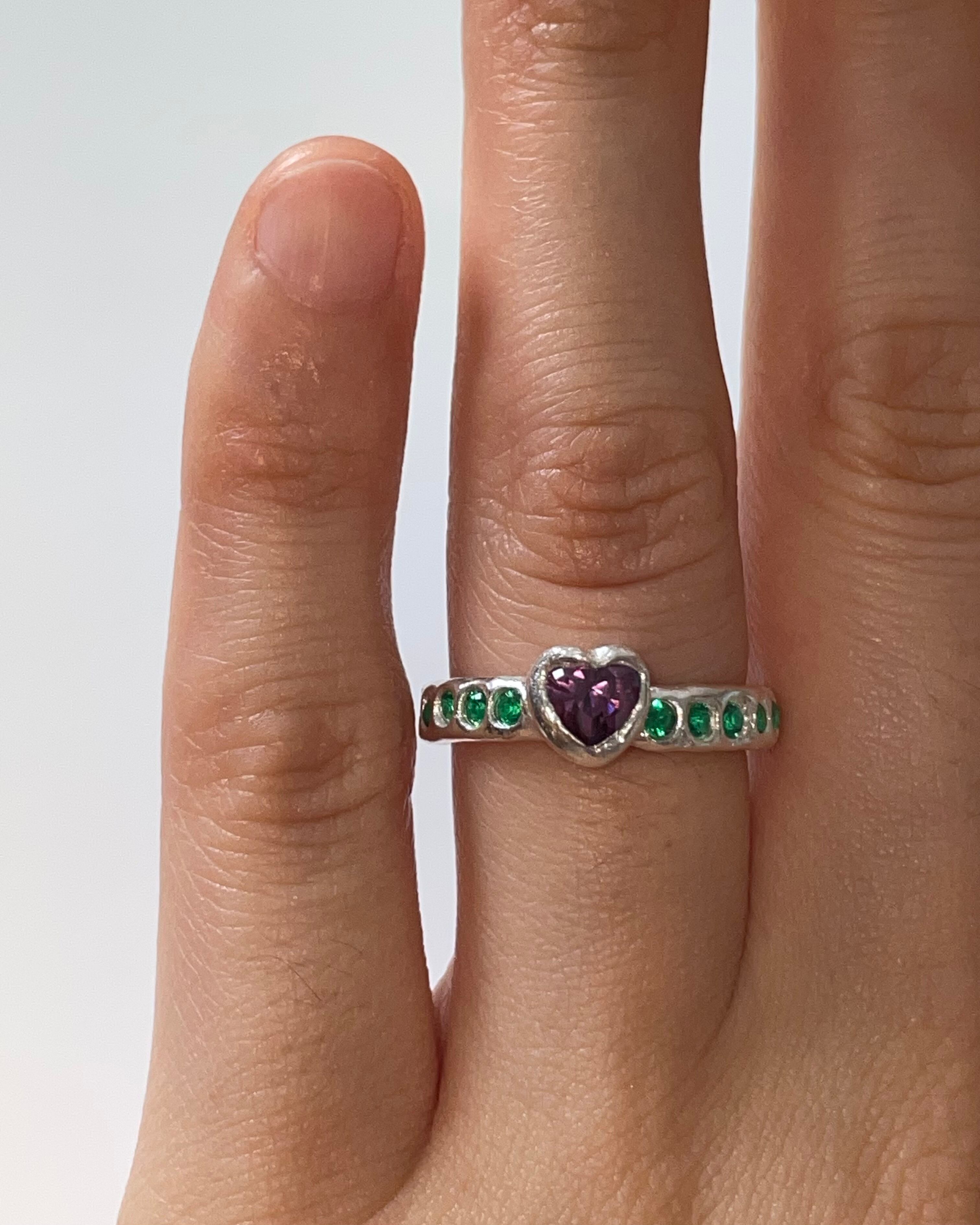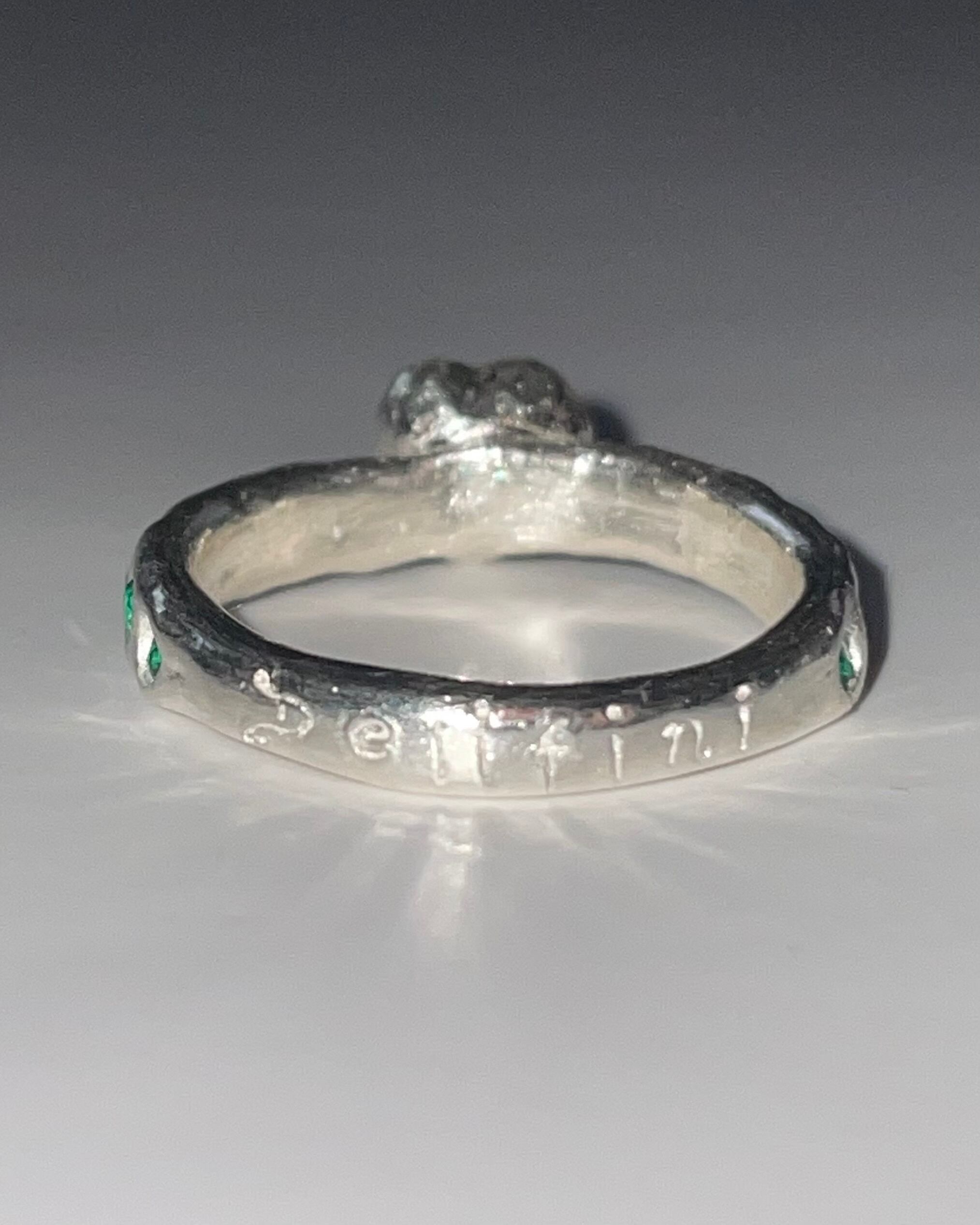 A silver ring made by embedding Synthetic stones in recycled silver clay with a purity of 99.9% or higher.