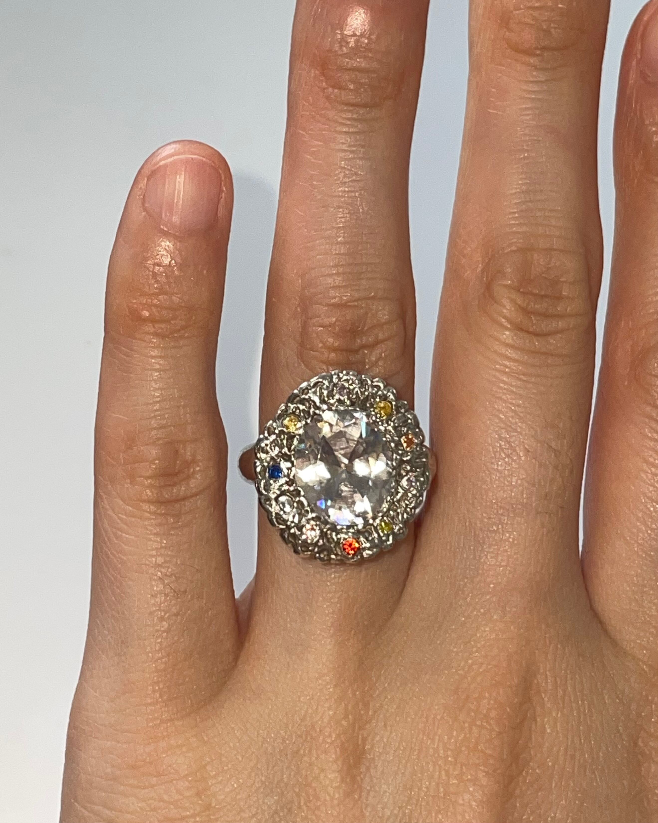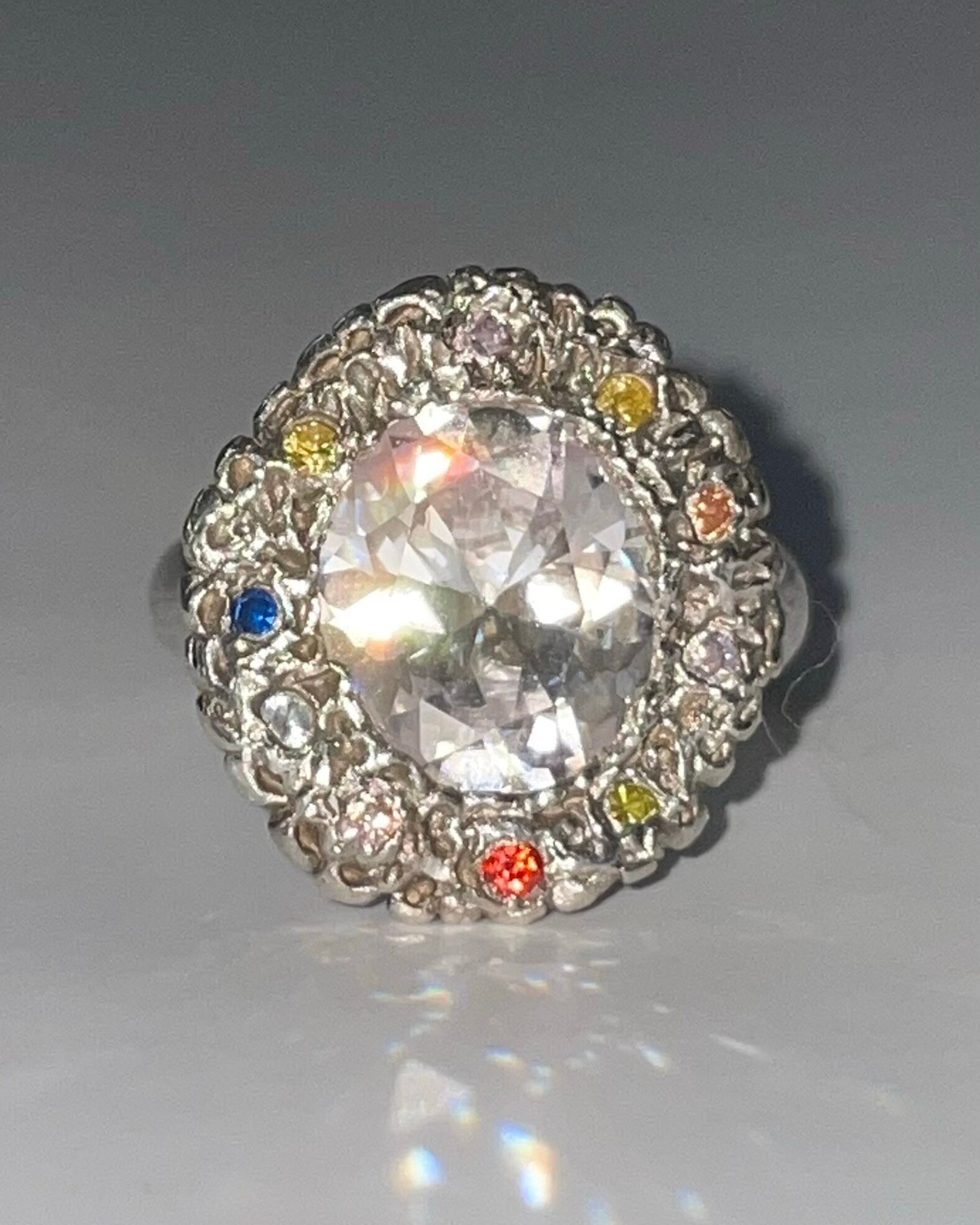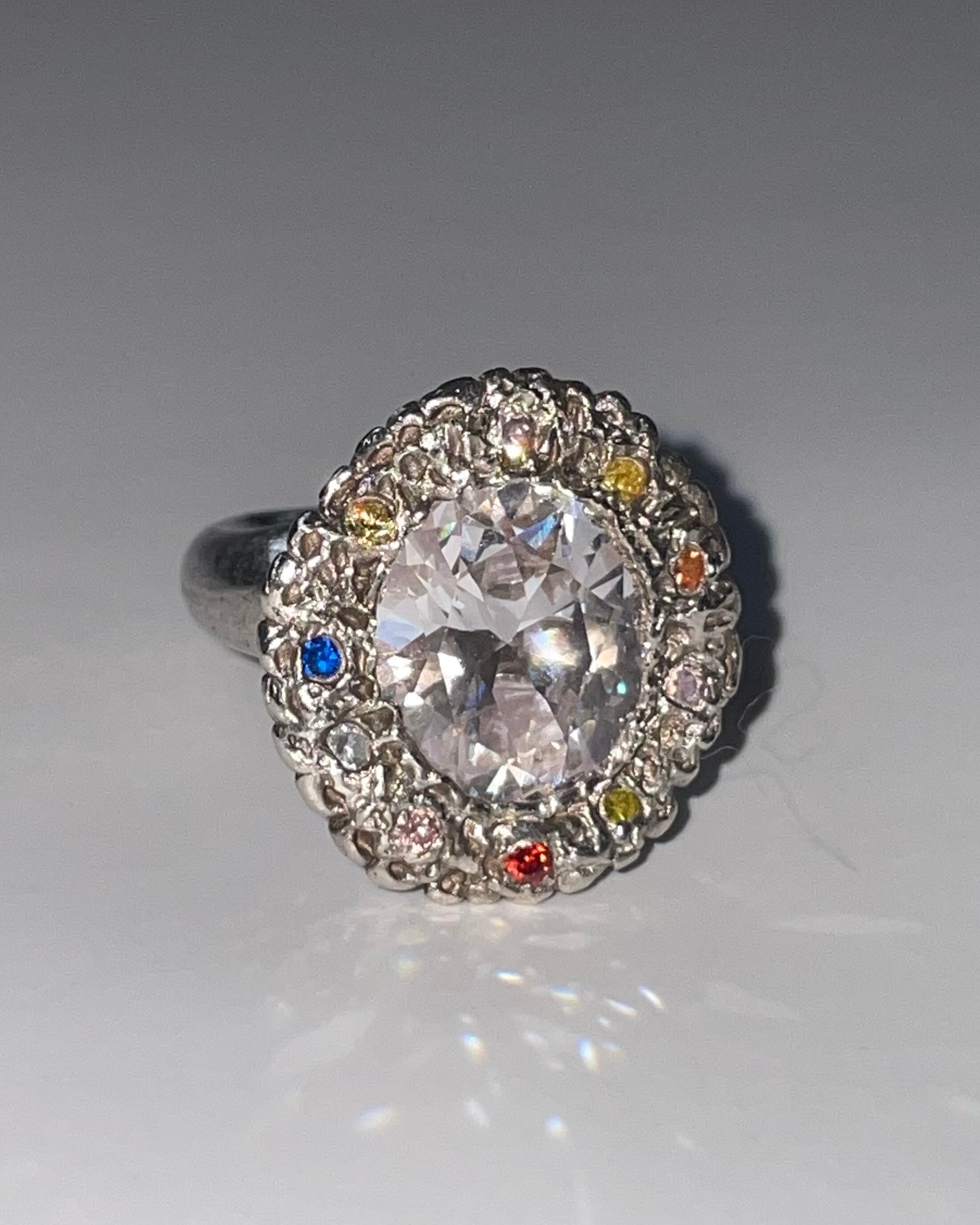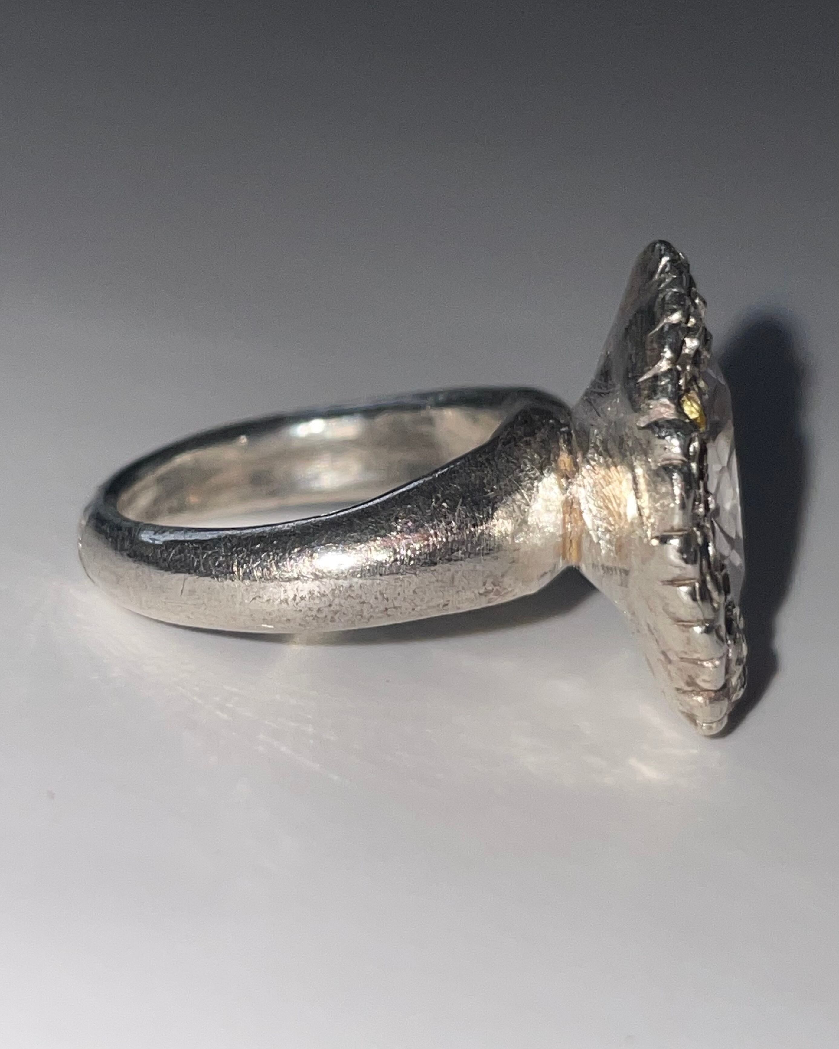 A silver ring made by embedding Synthetic stones in recycled silver clay with a purity of 99.9% or higher.