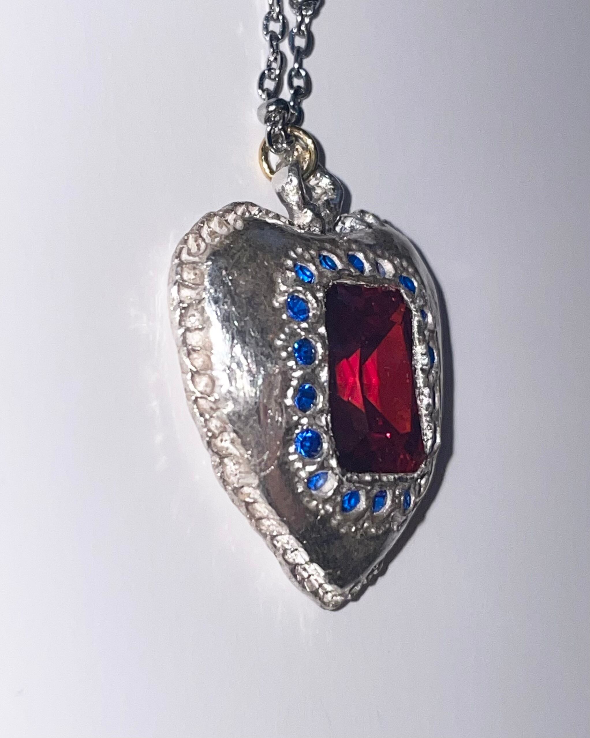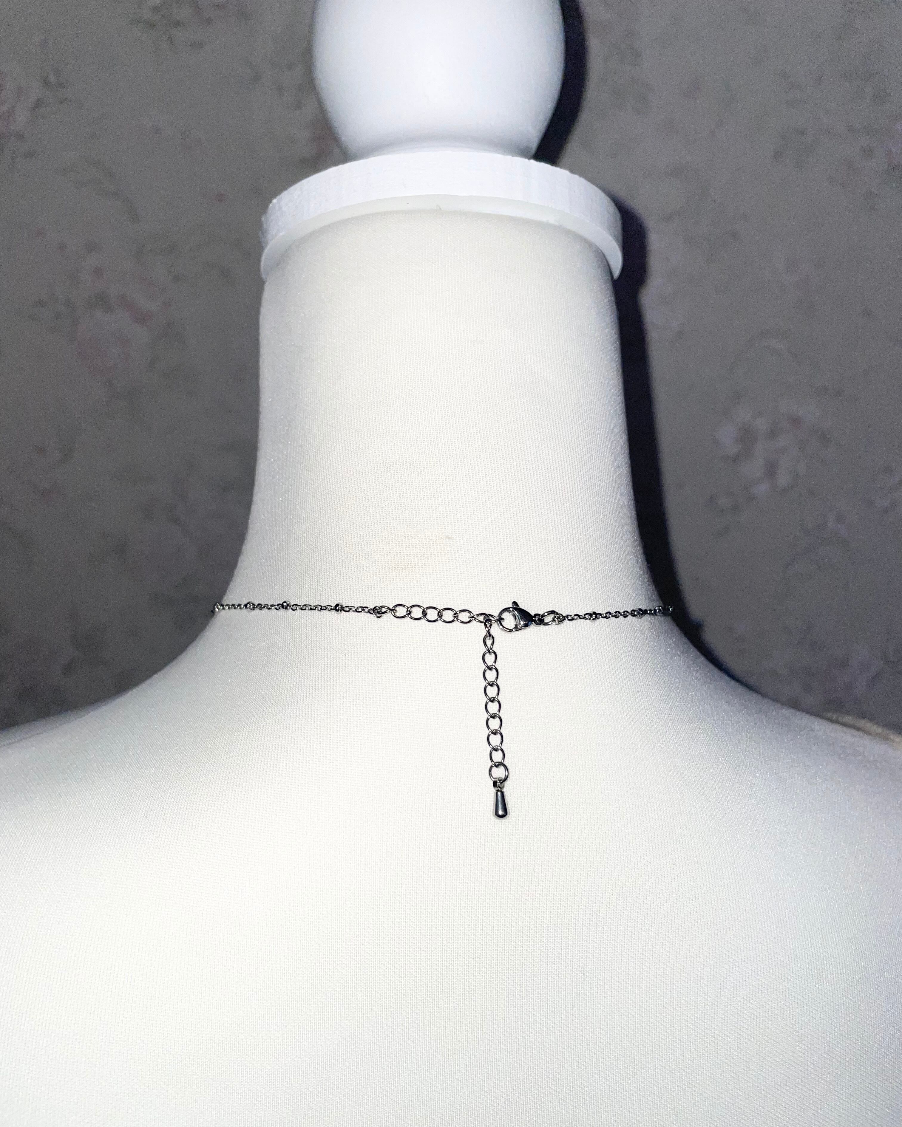 Material: Pure silver (99.9%), synthetic stone, surgical stainless steel 316L chain, adjuster