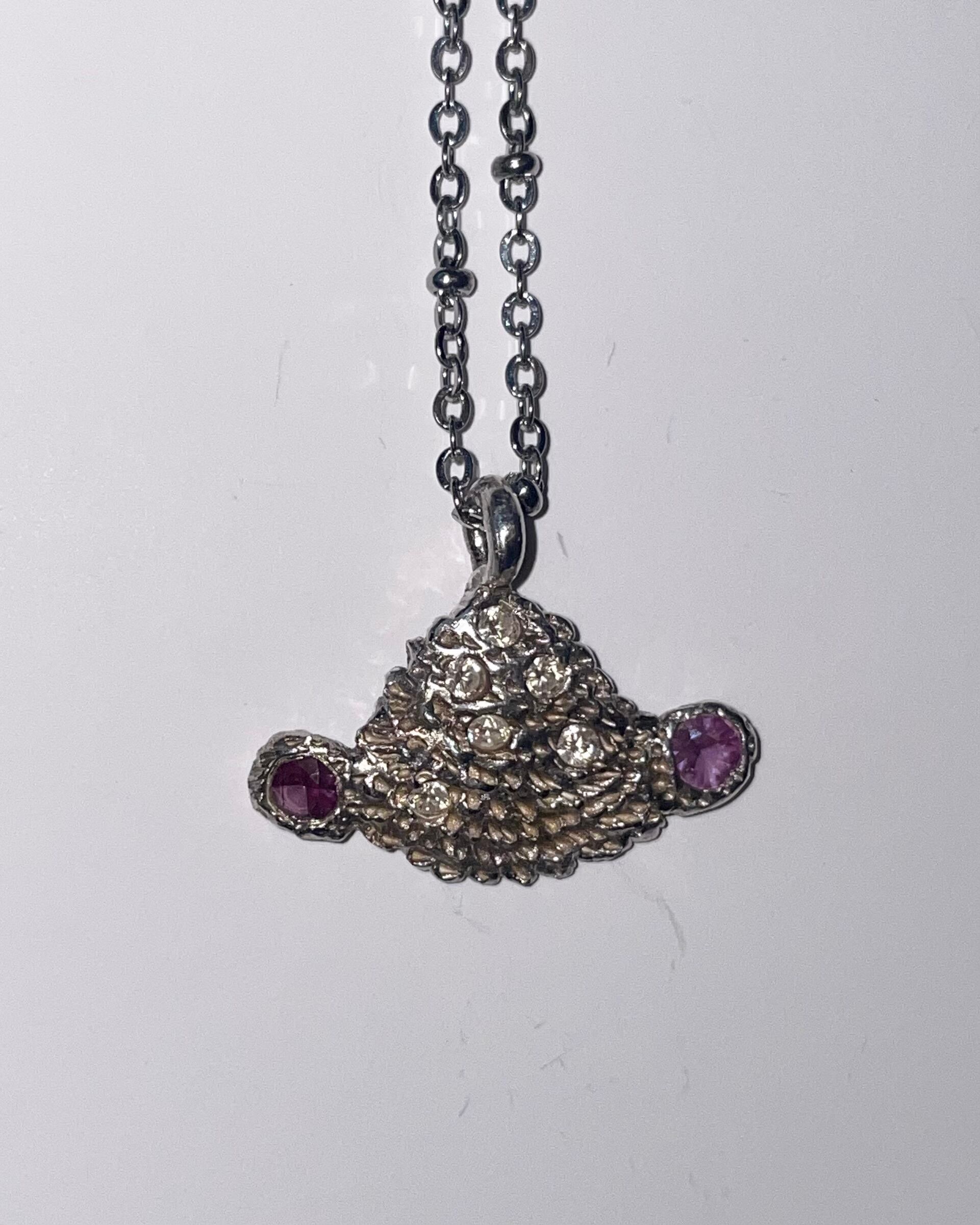 Material: Pure silver (99.9%), synthetic stone, surgical stainless steel 316L chain, adjuster