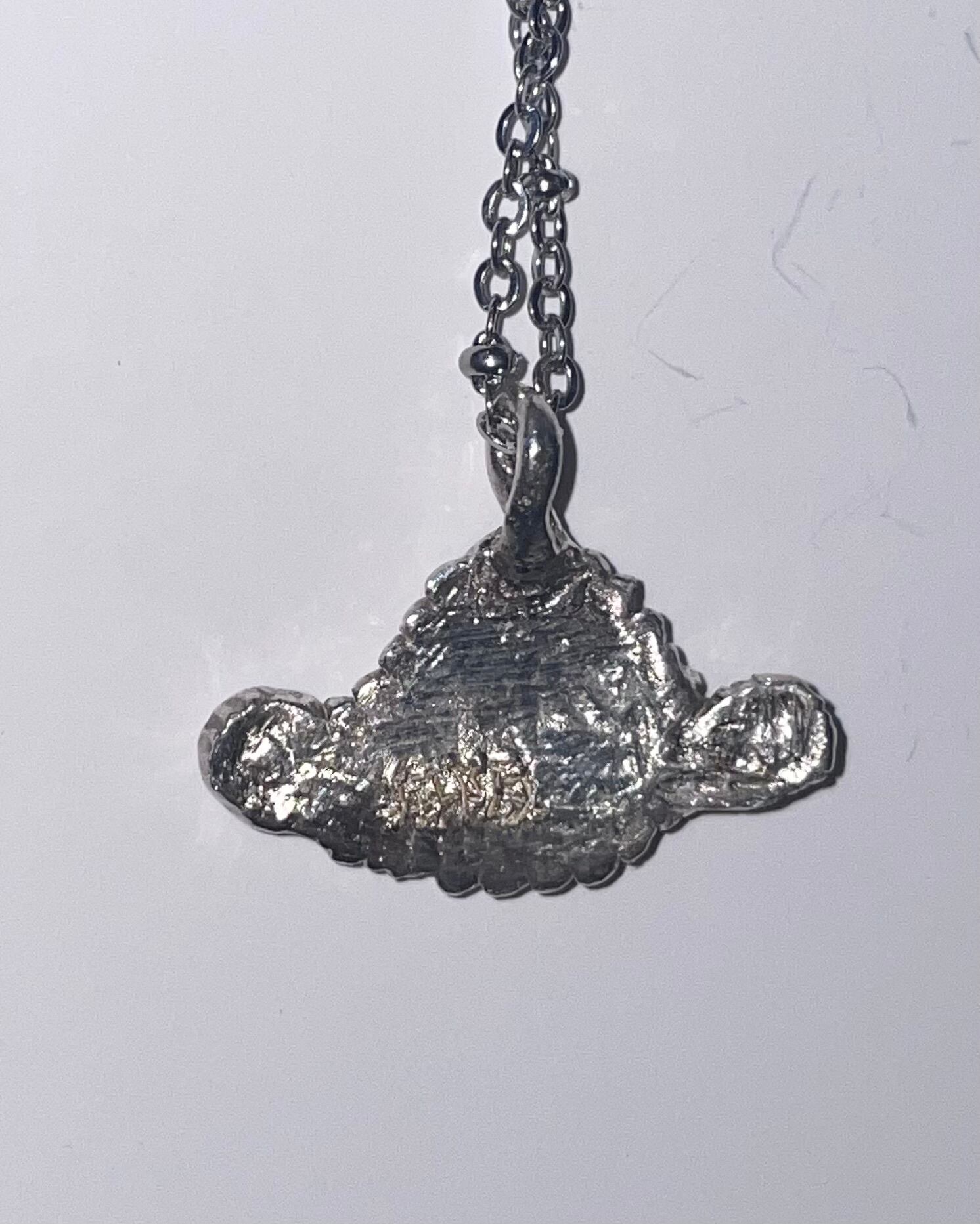 A silver charm made of recycled silver clay with a purity of 99.9% or higher.