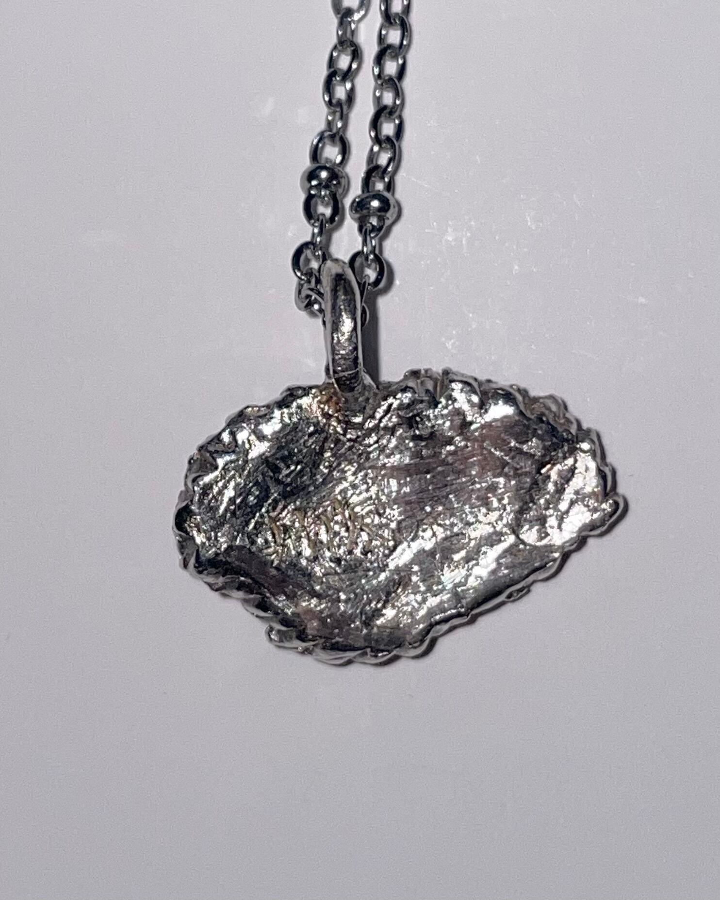 A silver charm made of recycled silver clay with a purity of 99.9% or higher.