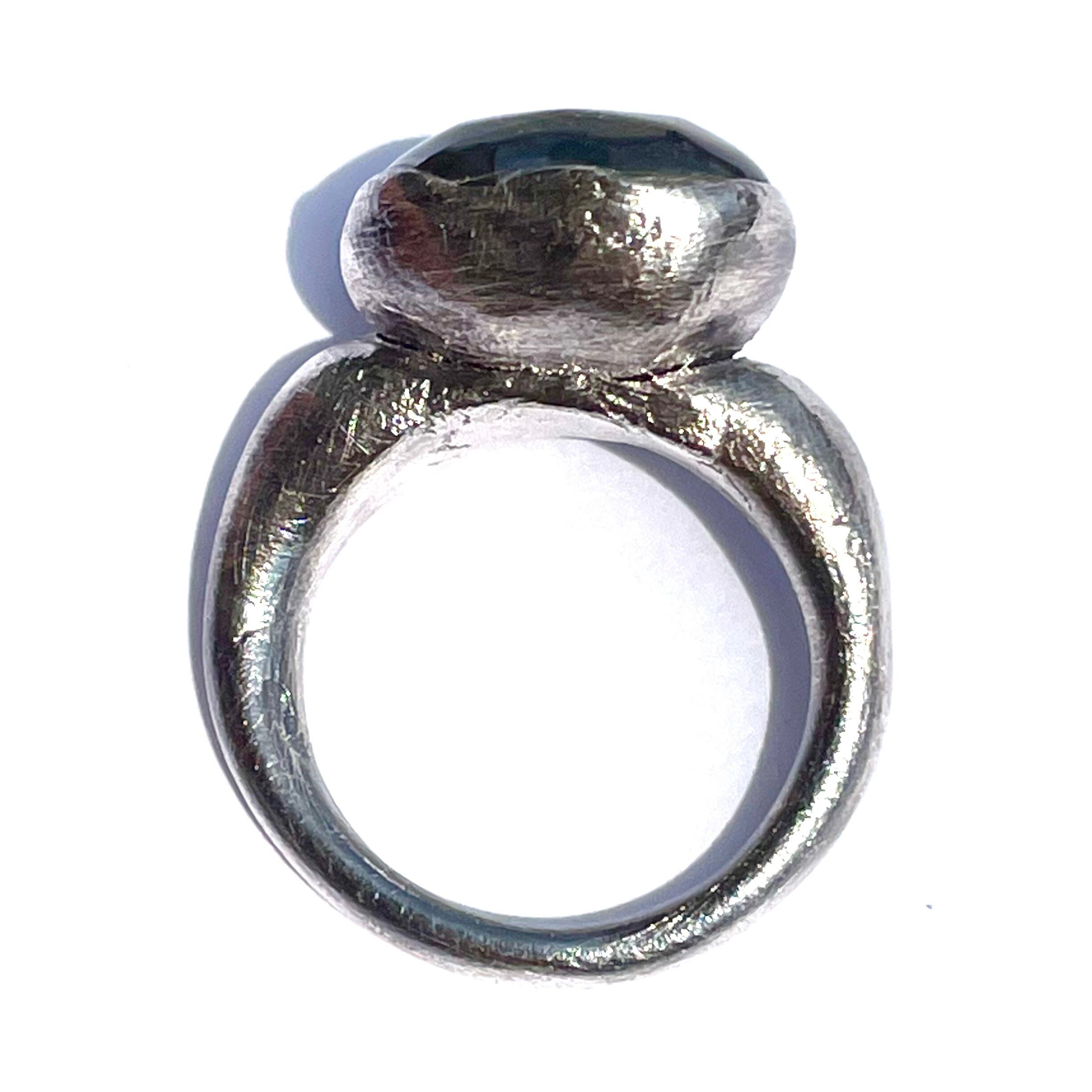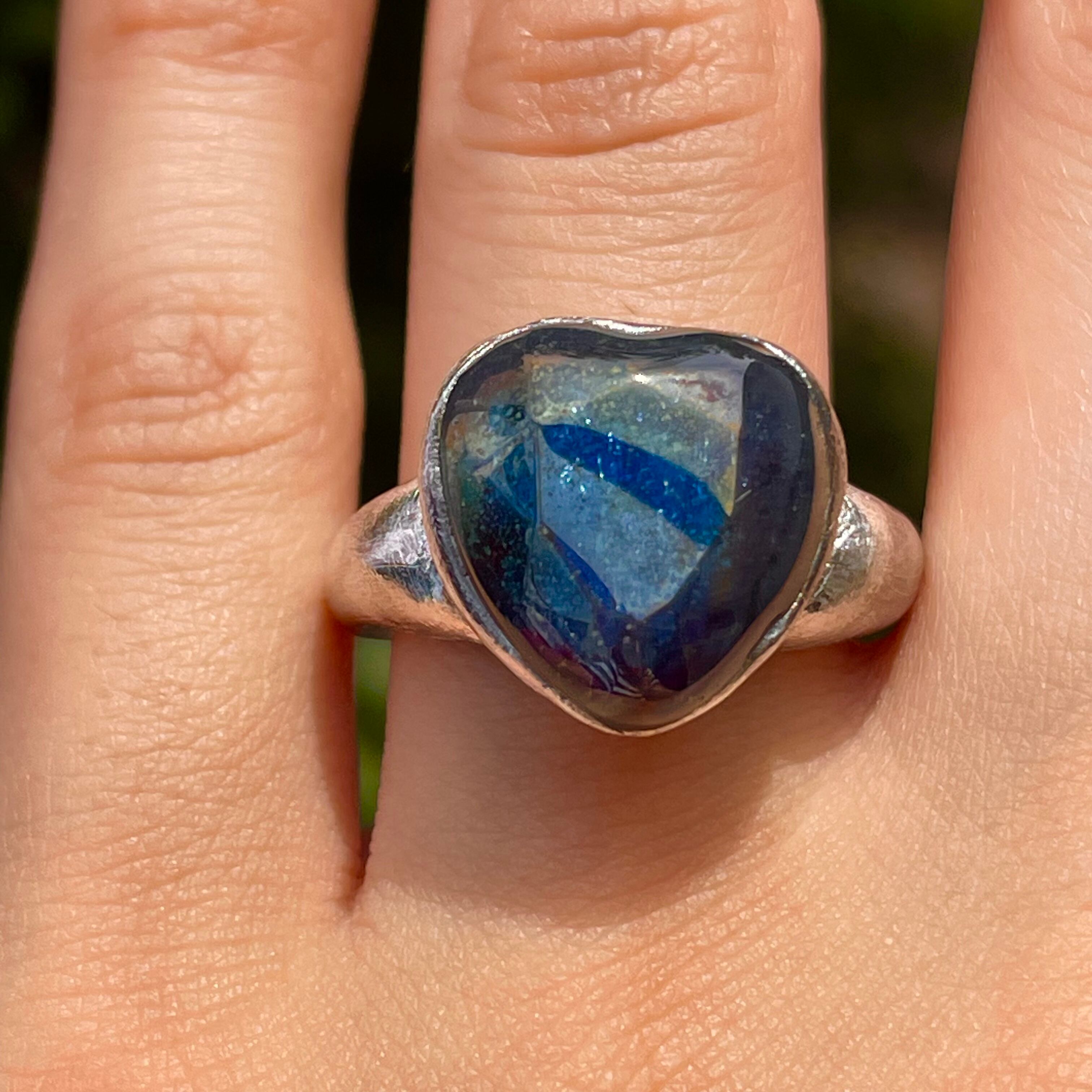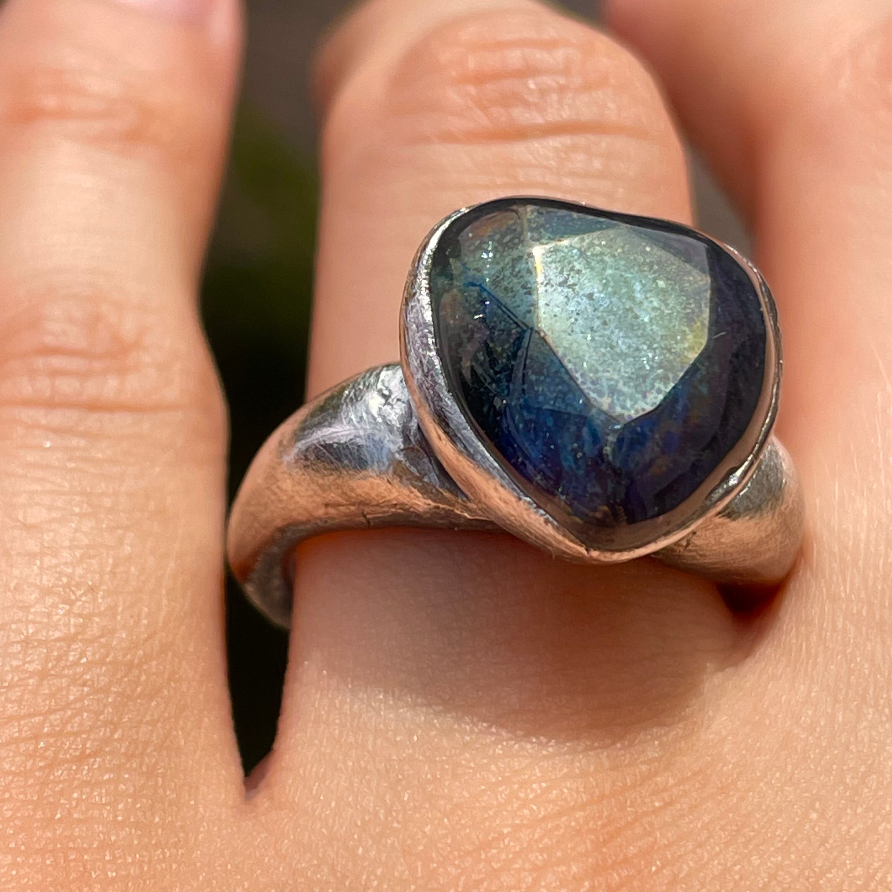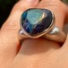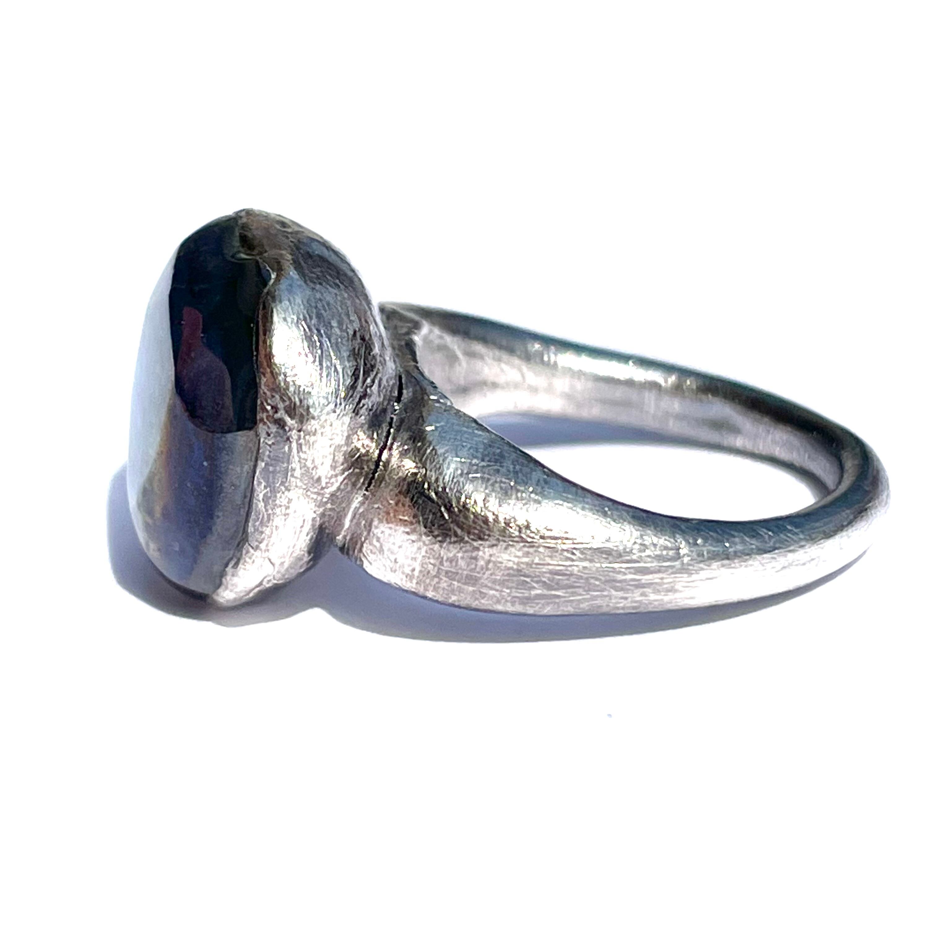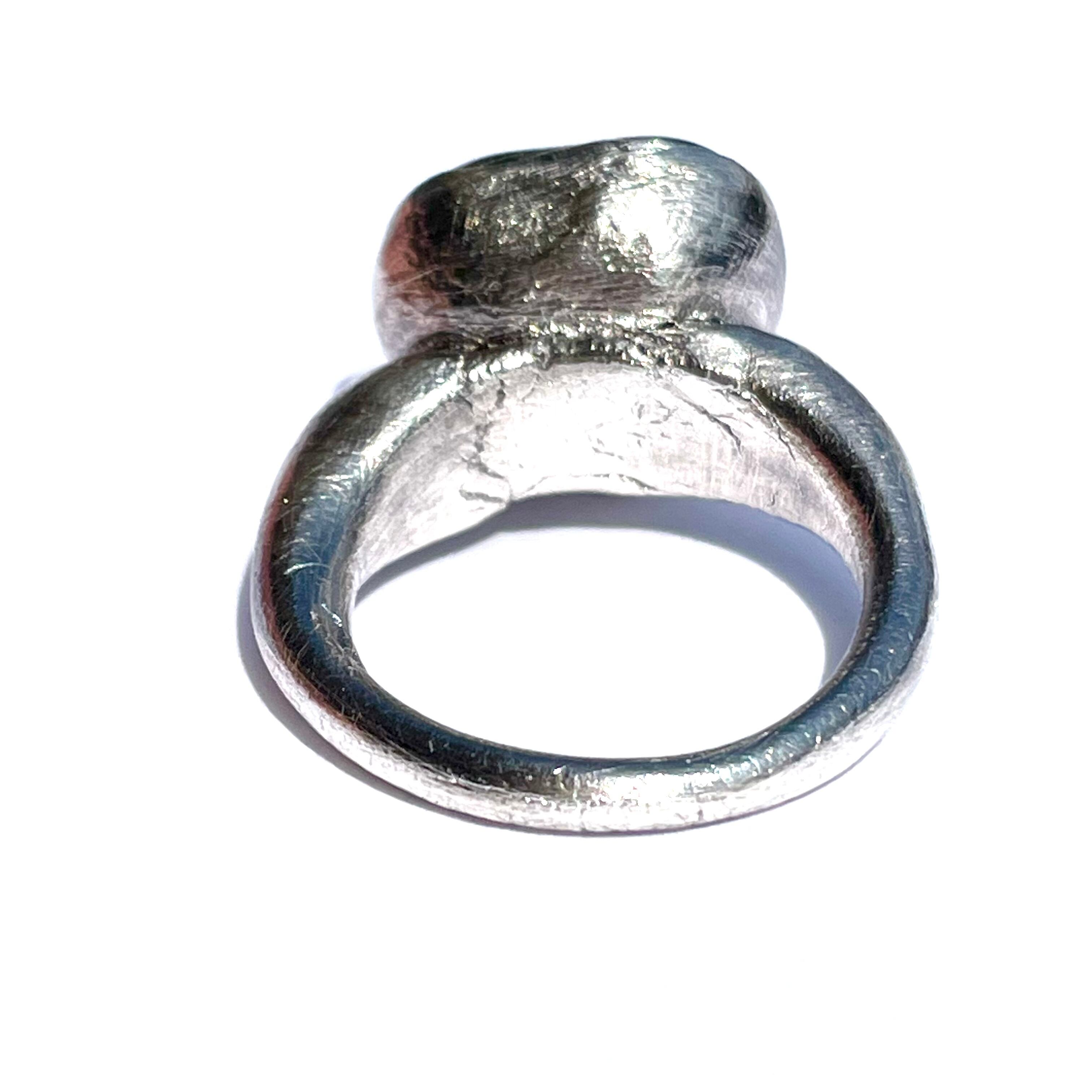 純度99.9%以上の銀粘土を使ったシルバーリングです。ドラゴンブレス(チェコガラス)を埋め込んで焼き上げました。