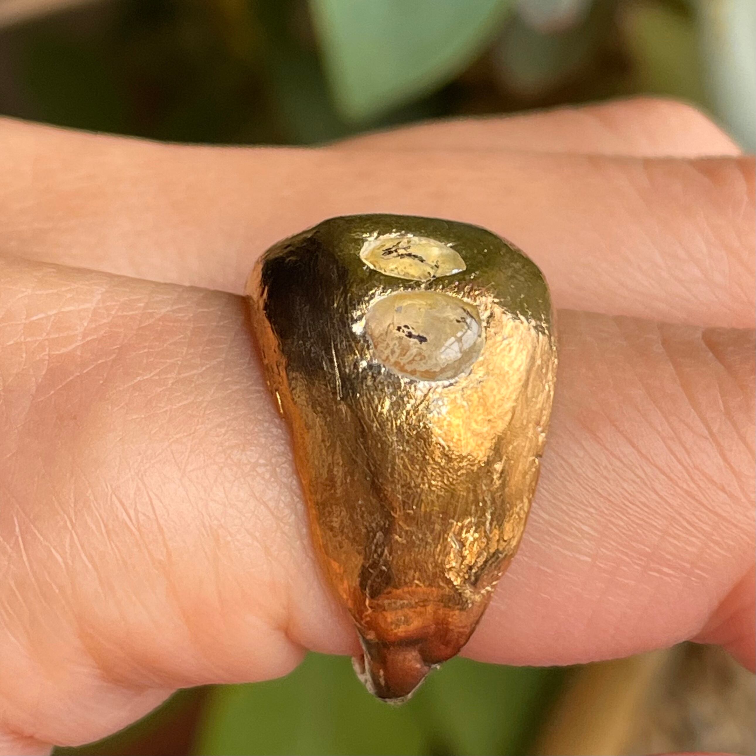 silver ring made by embedding Okinawan Ryukyu glass in recycled silver clay with a purity of 99.9% or higher.