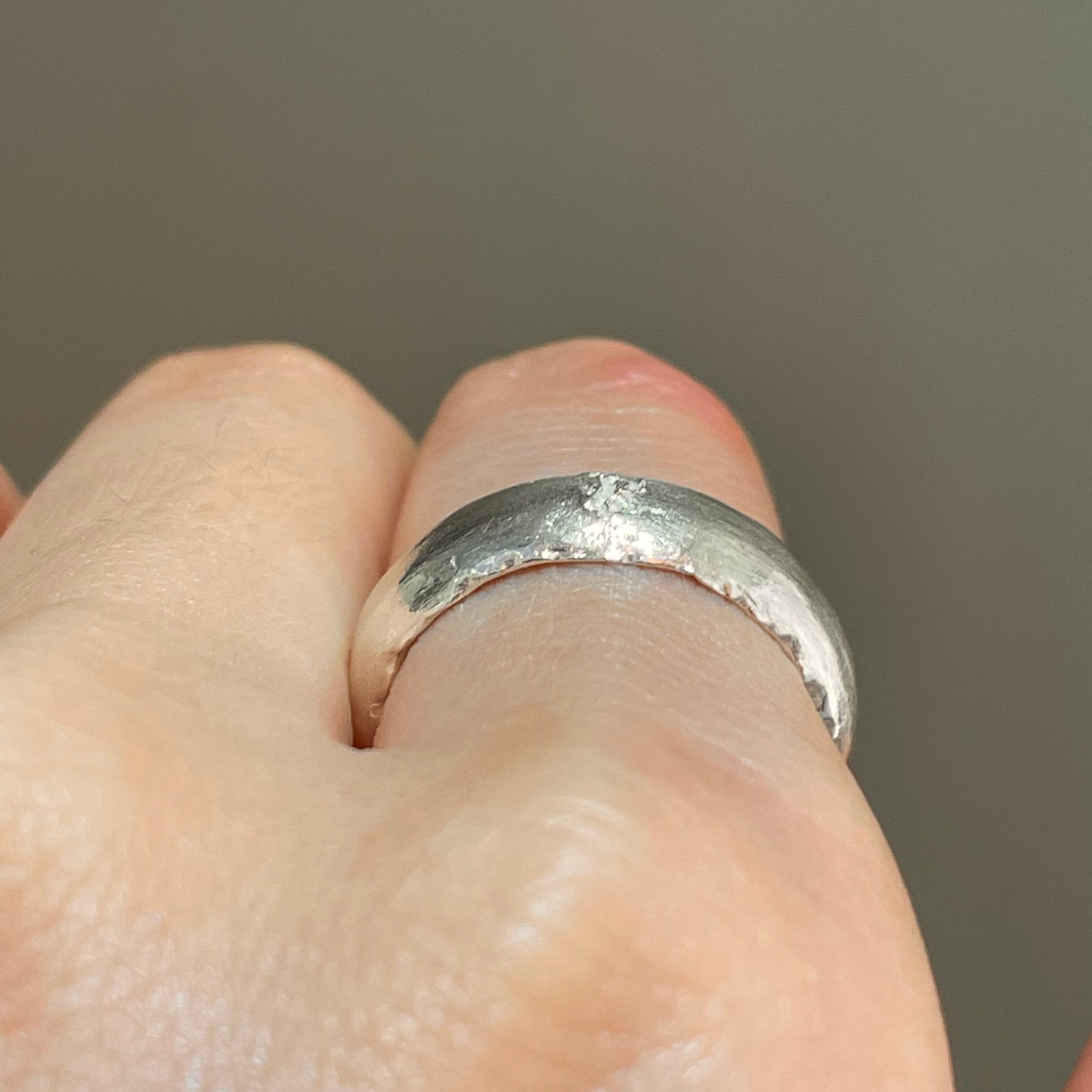 純度99.9%以上のリサイクル銀粘土を焼き上げたシルバーリングです。