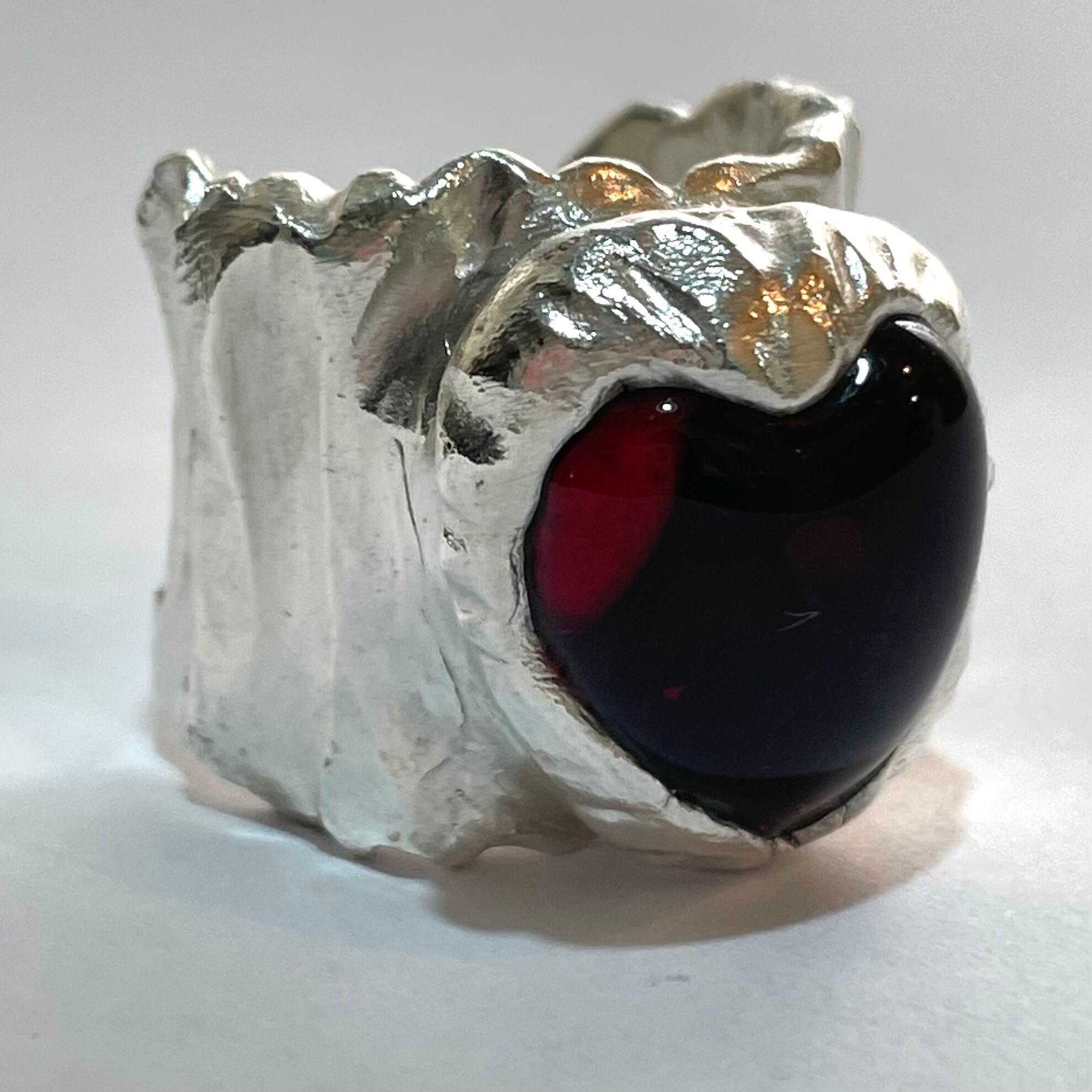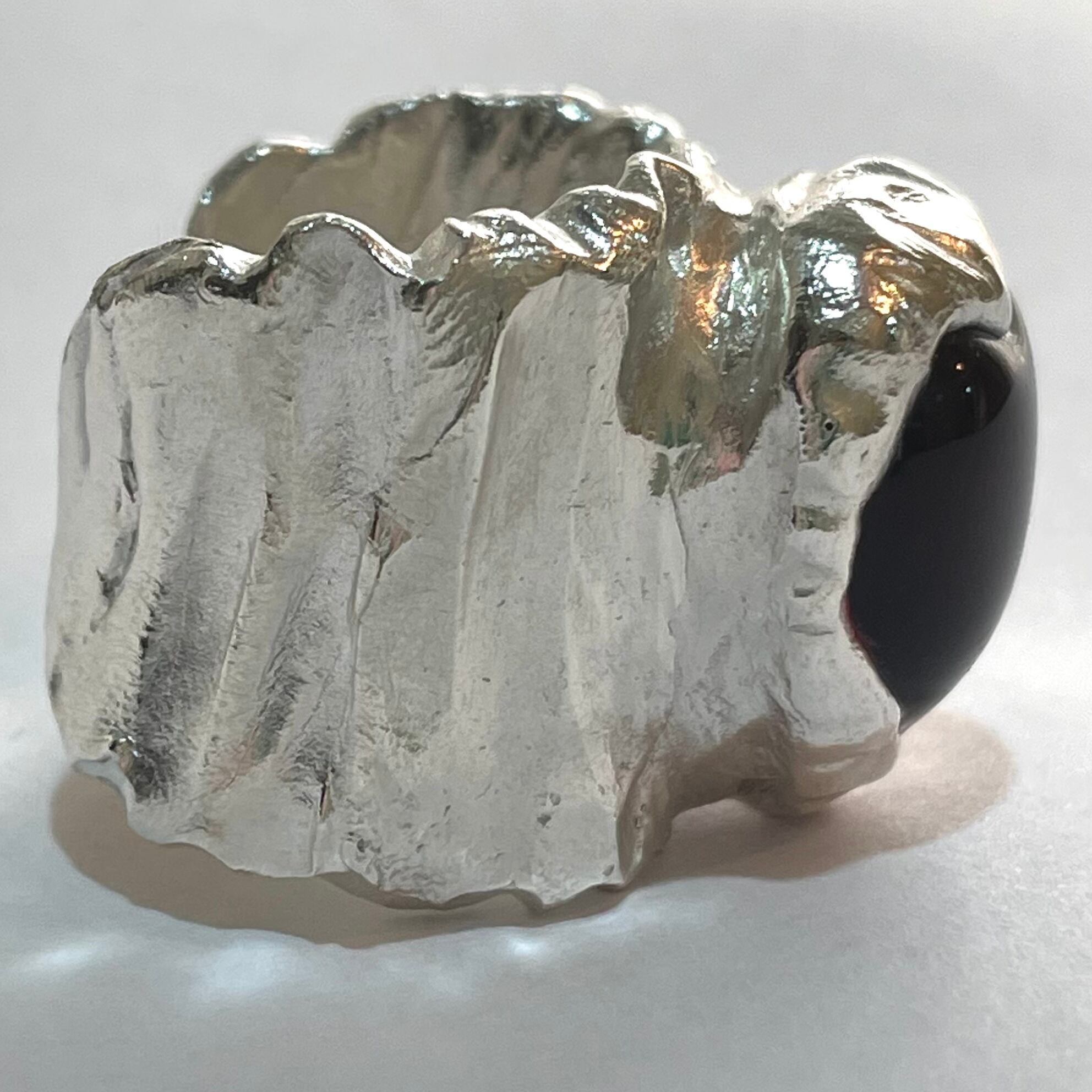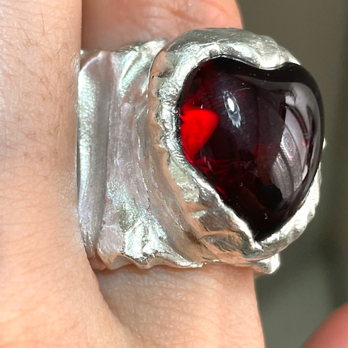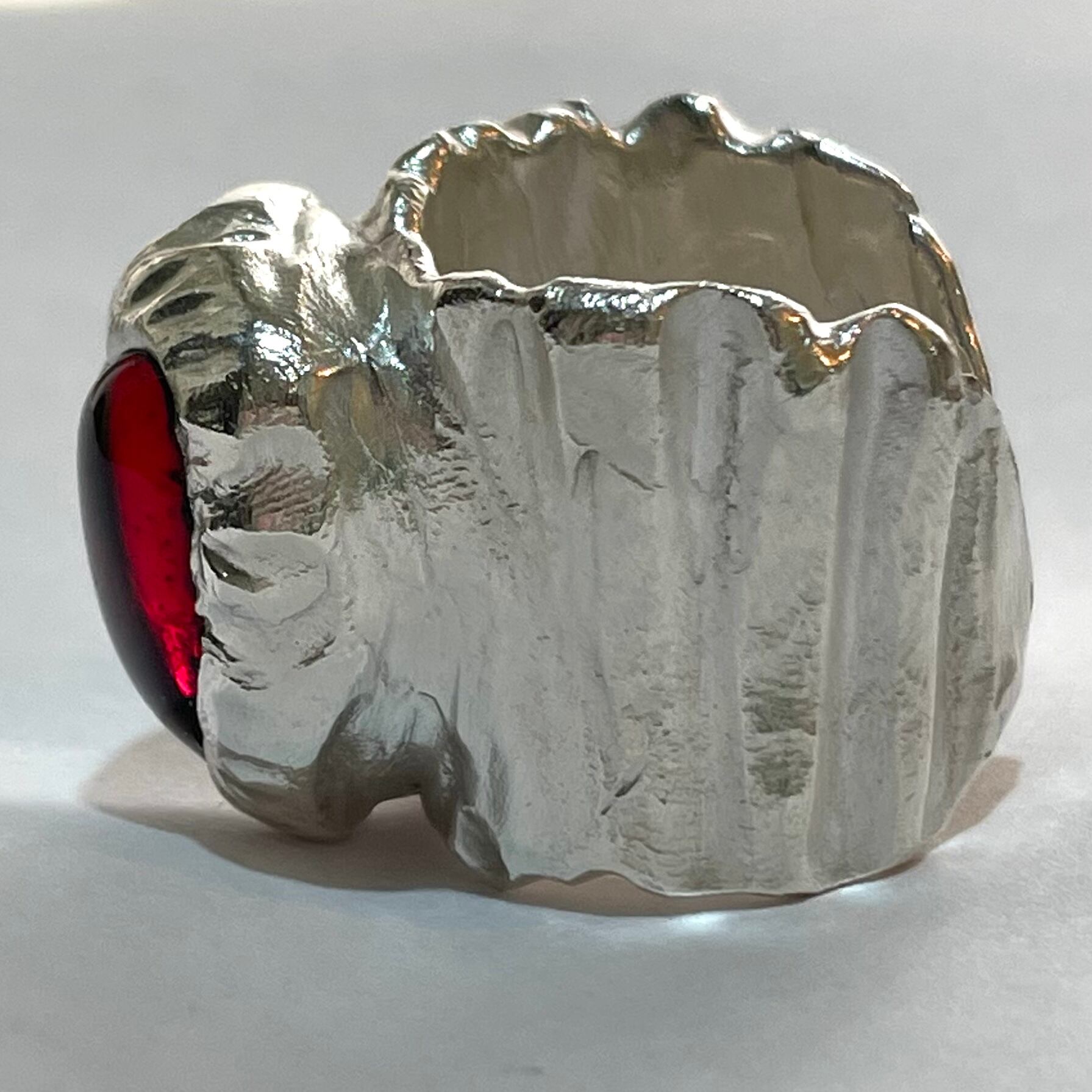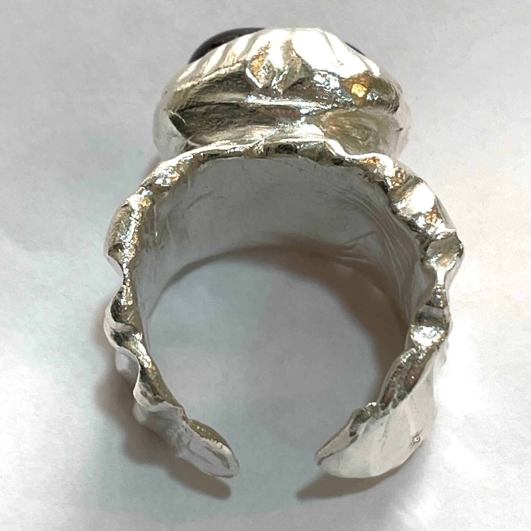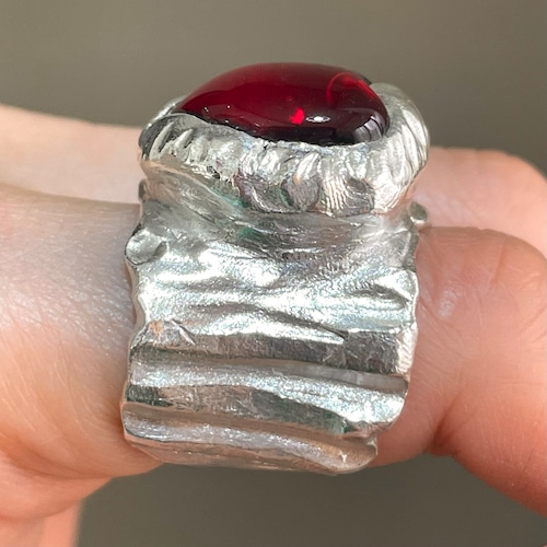 純度99.9%以上のリサイクル銀粘土に沖縄の琉球ガラスを埋め込んで焼き上げたシルバーリングです。