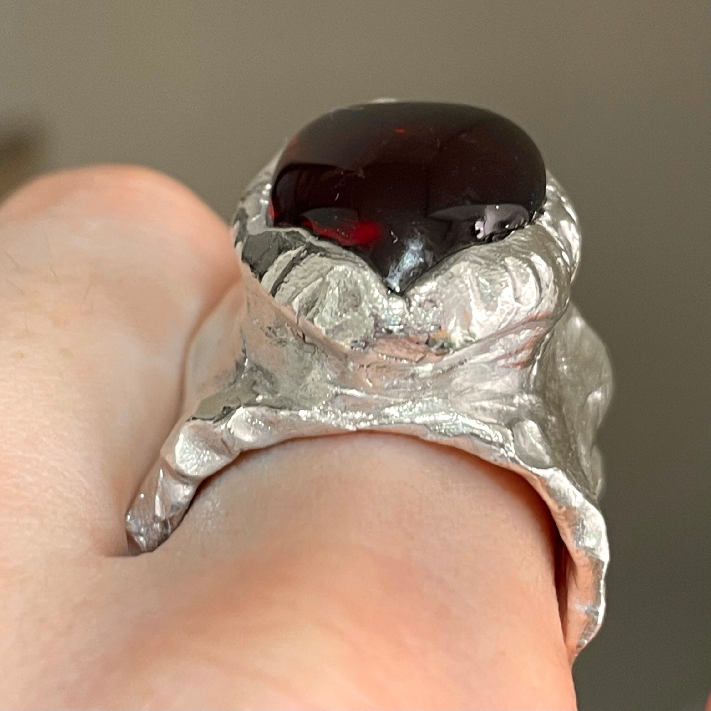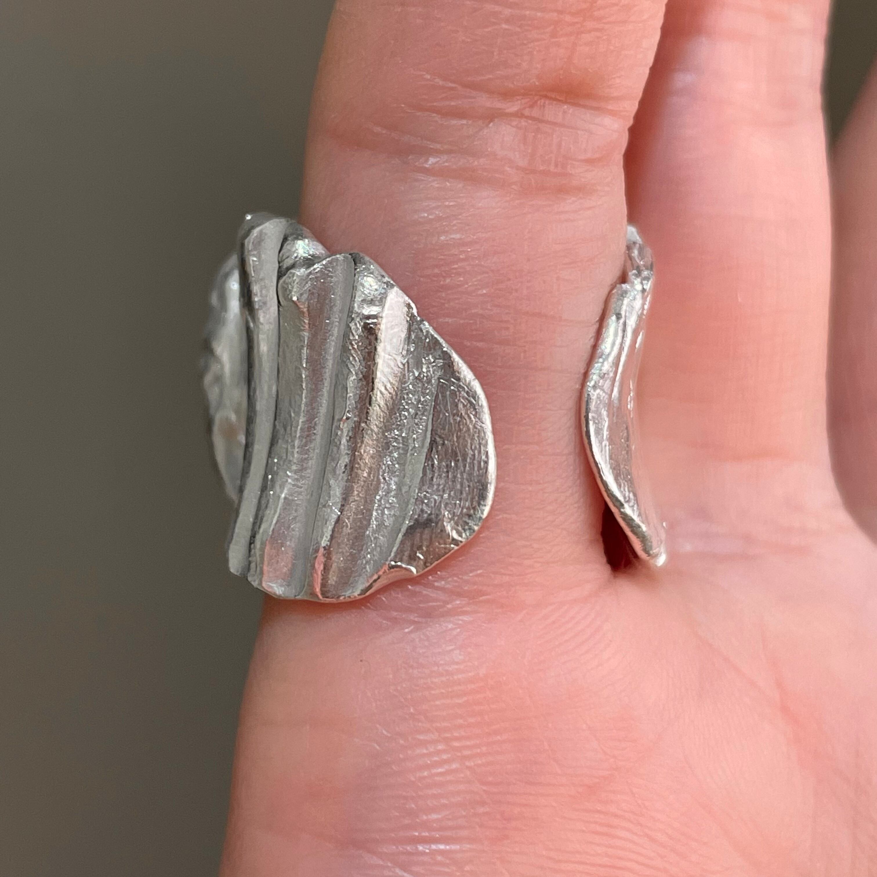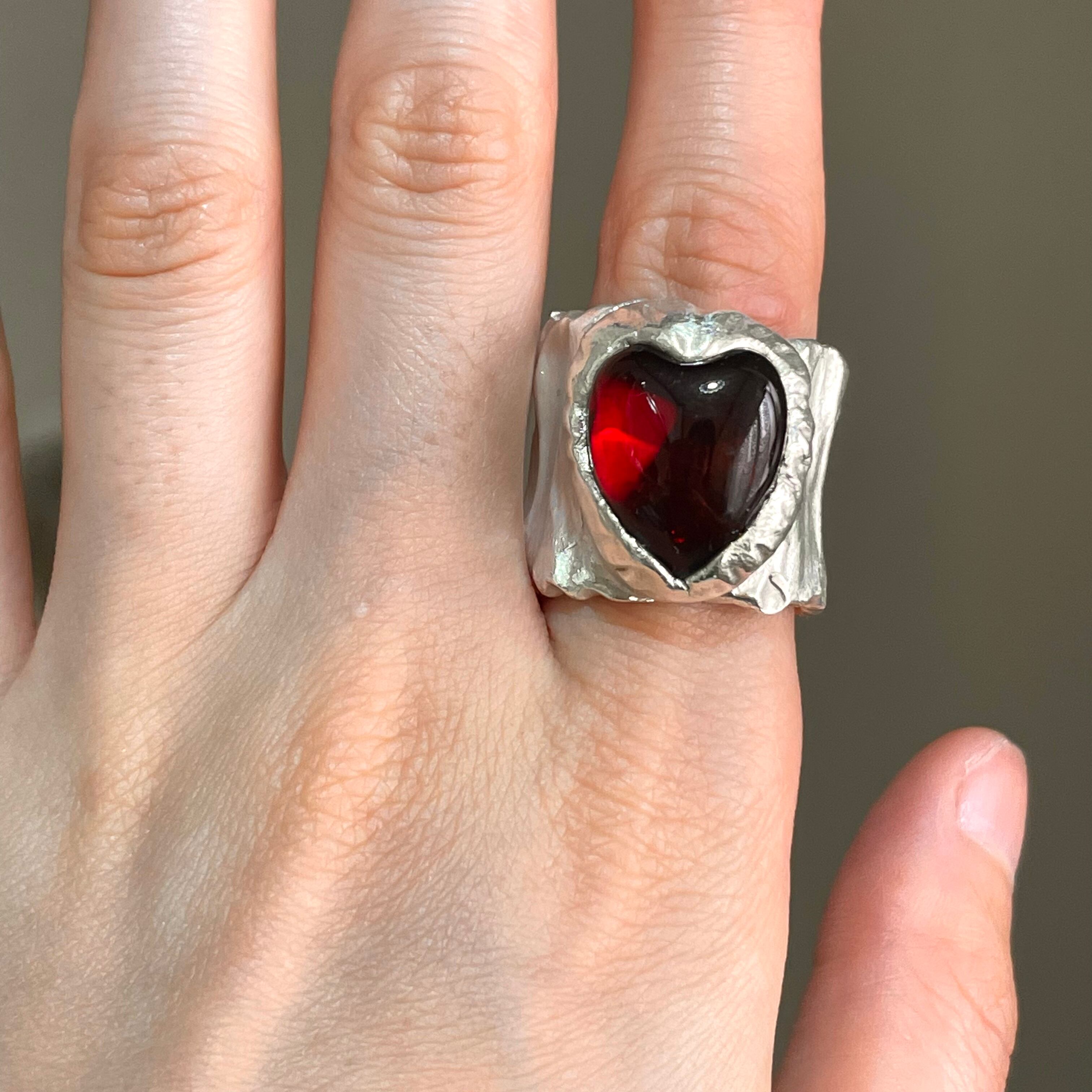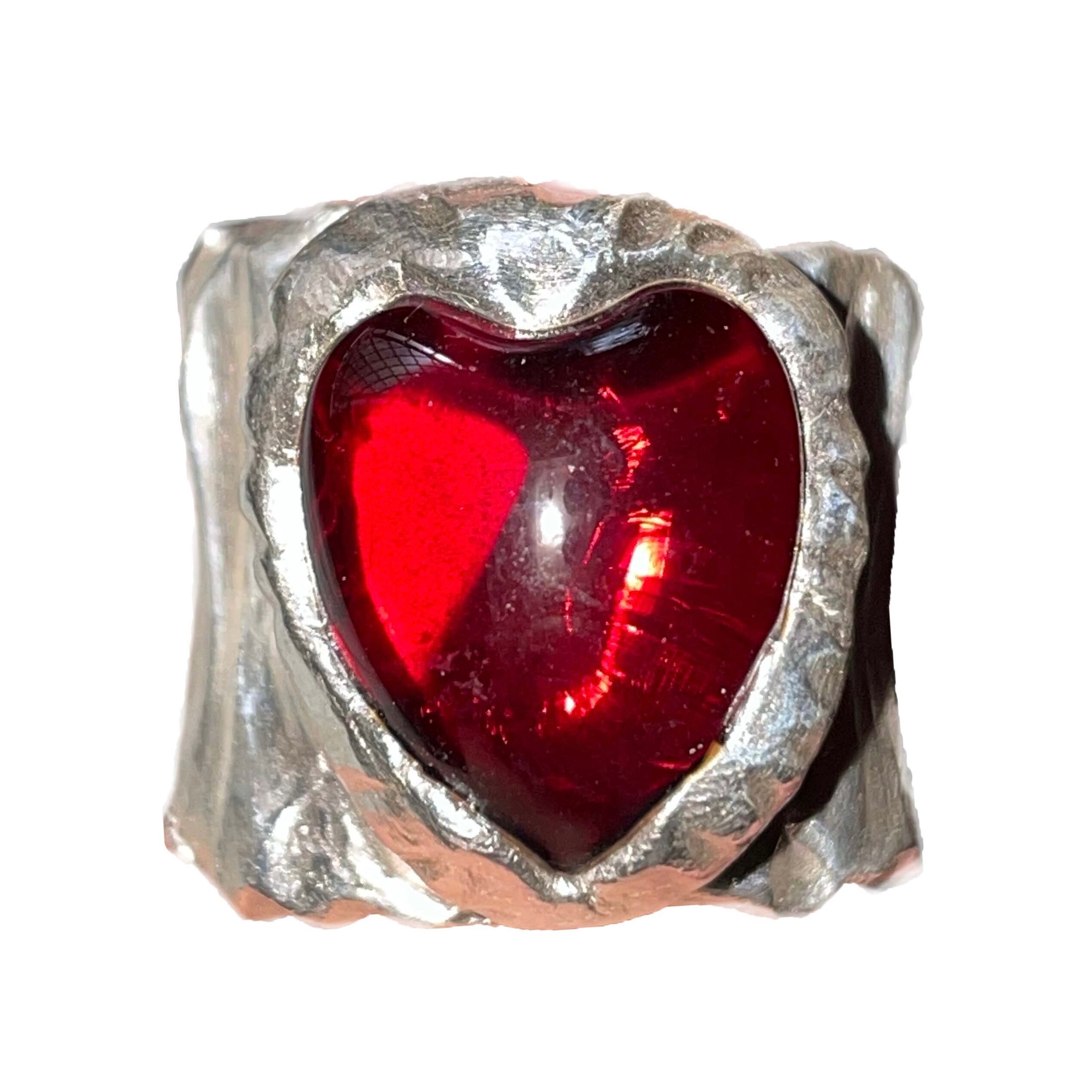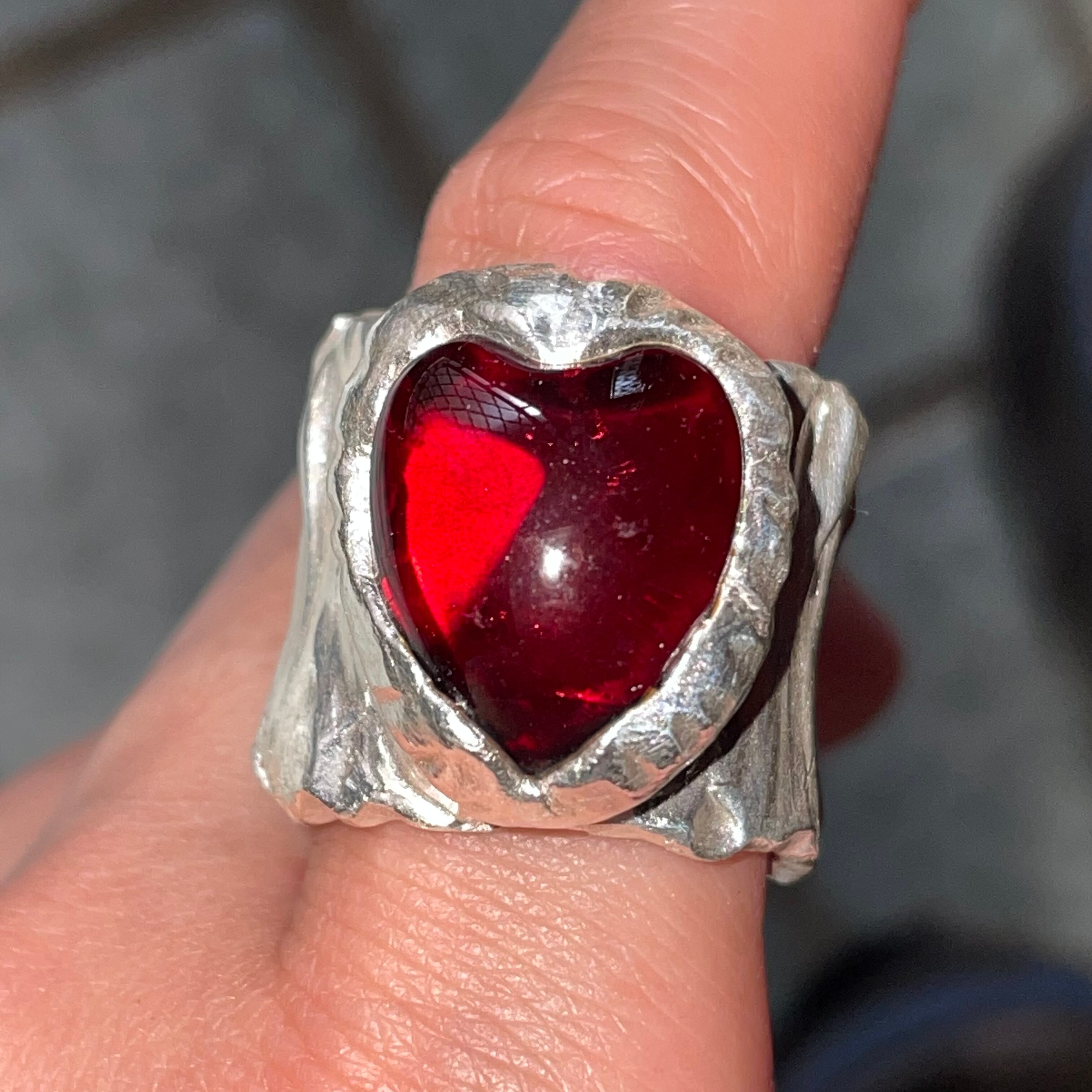 純度99.9%以上のリサイクル銀粘土に沖縄の琉球ガラスを埋め込んで焼き上げたシルバーリングです。