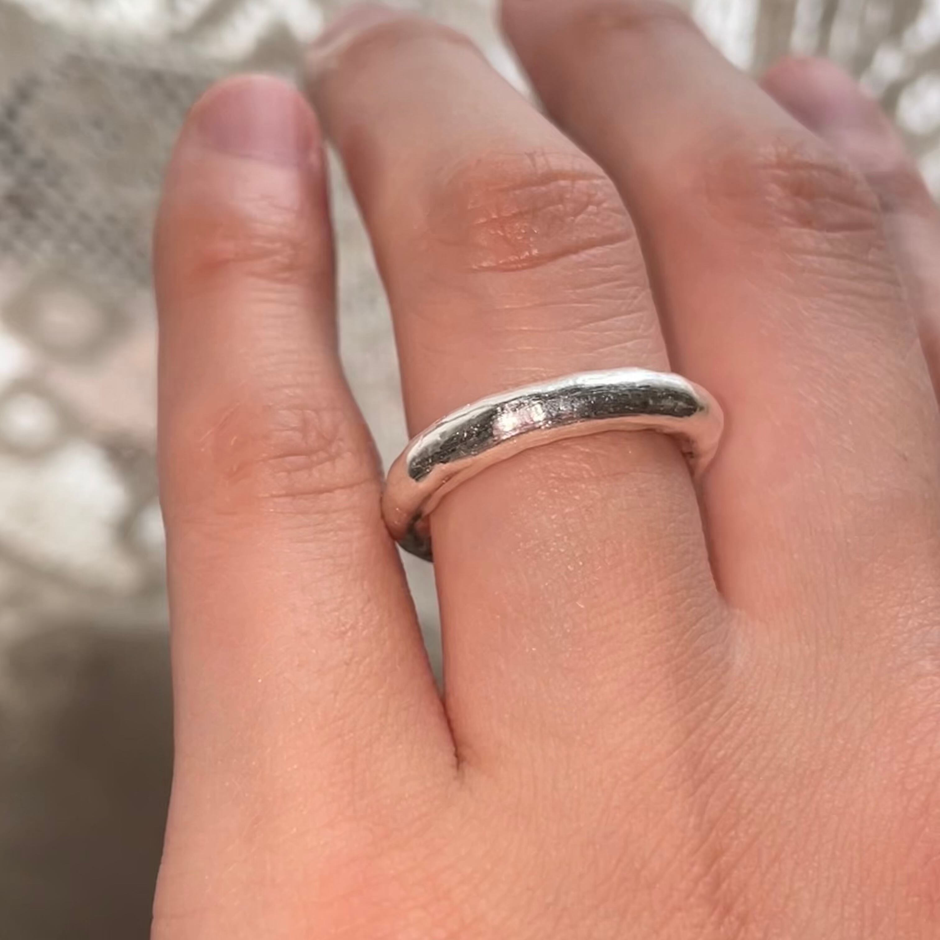 A silver ring made of recycled silver clay with a purity of 99.9% or higher.
