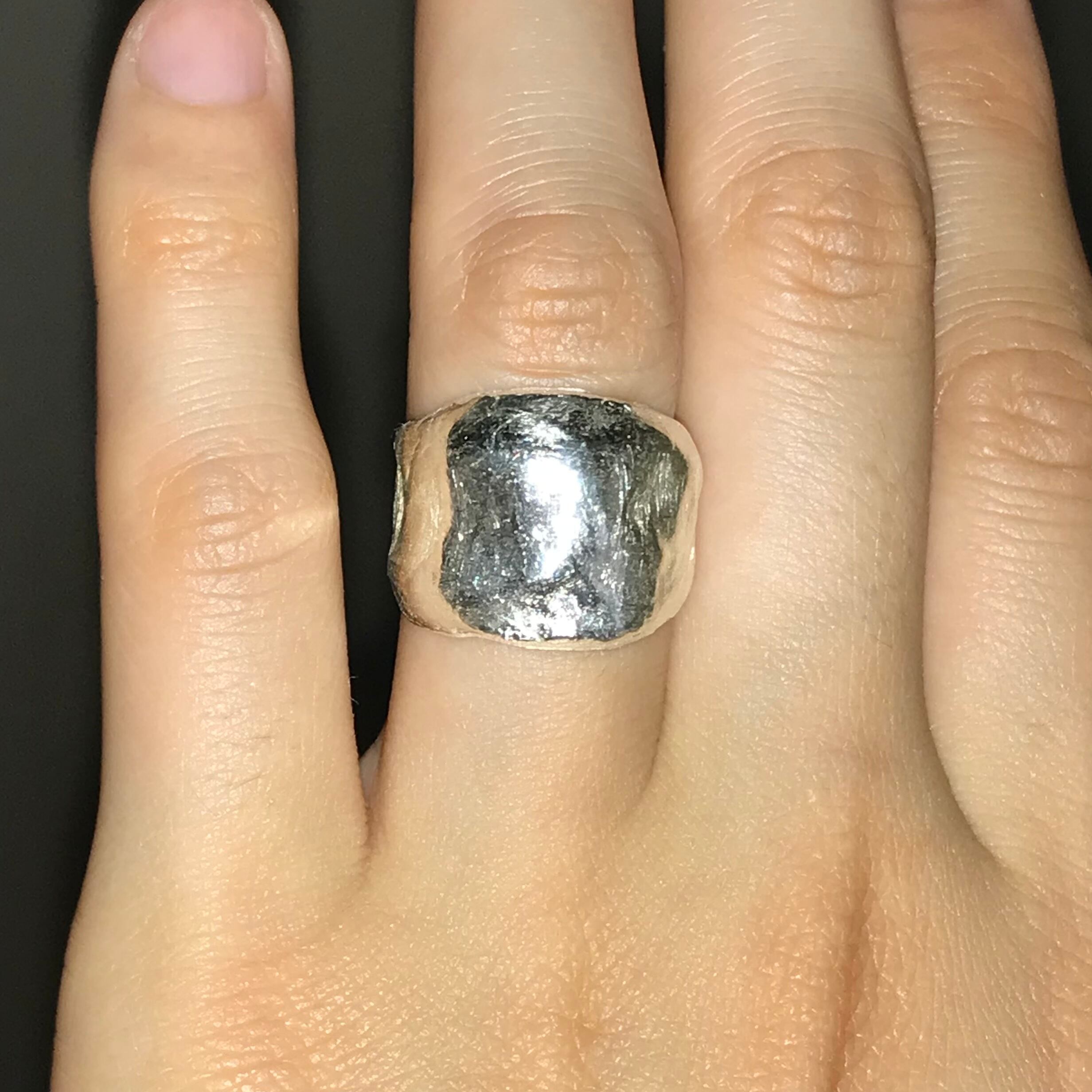 A silver ring made of recycled silver clay with a purity of 99.9% or higher.