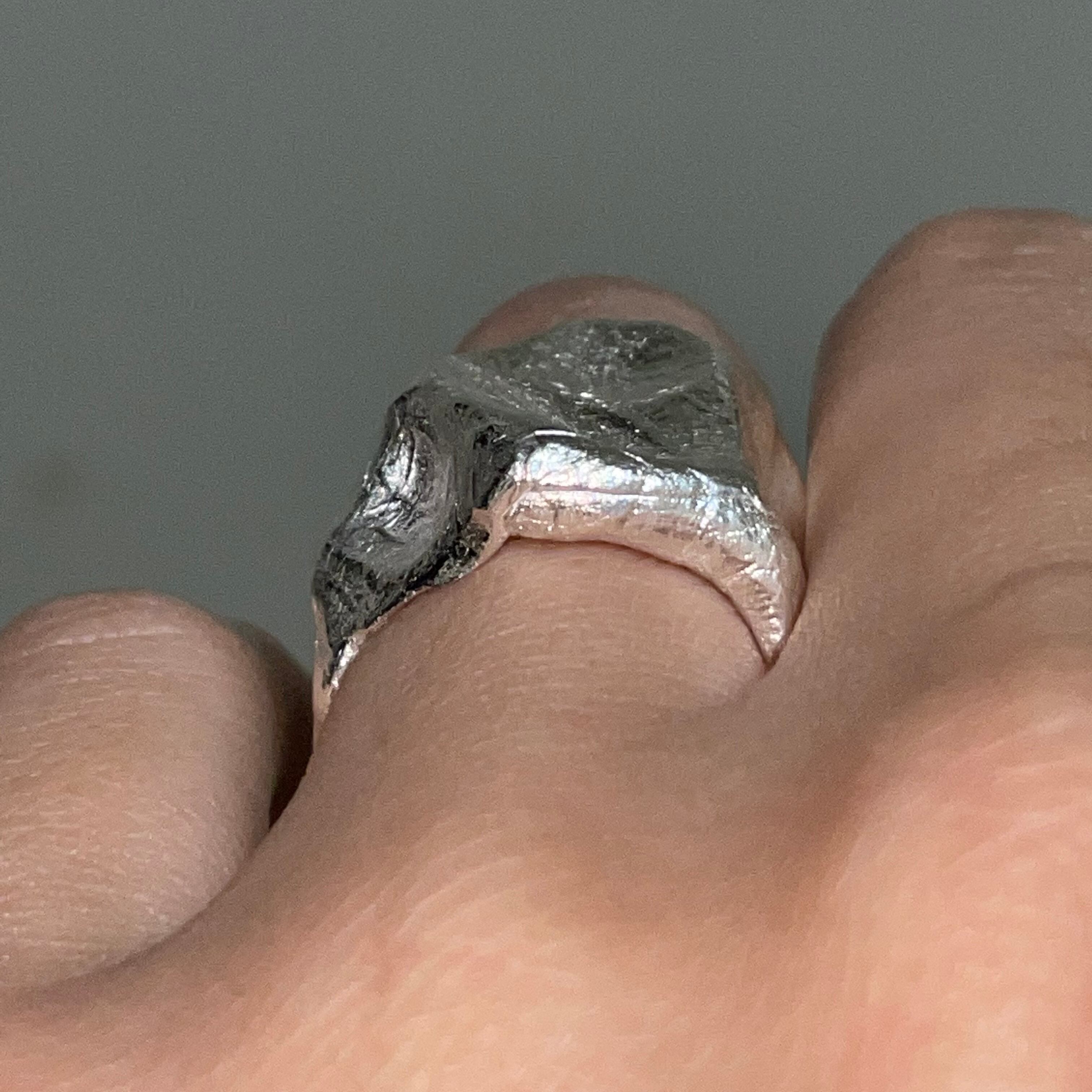 A silver ring made of recycled silver clay with a purity of 99.9% or higher.