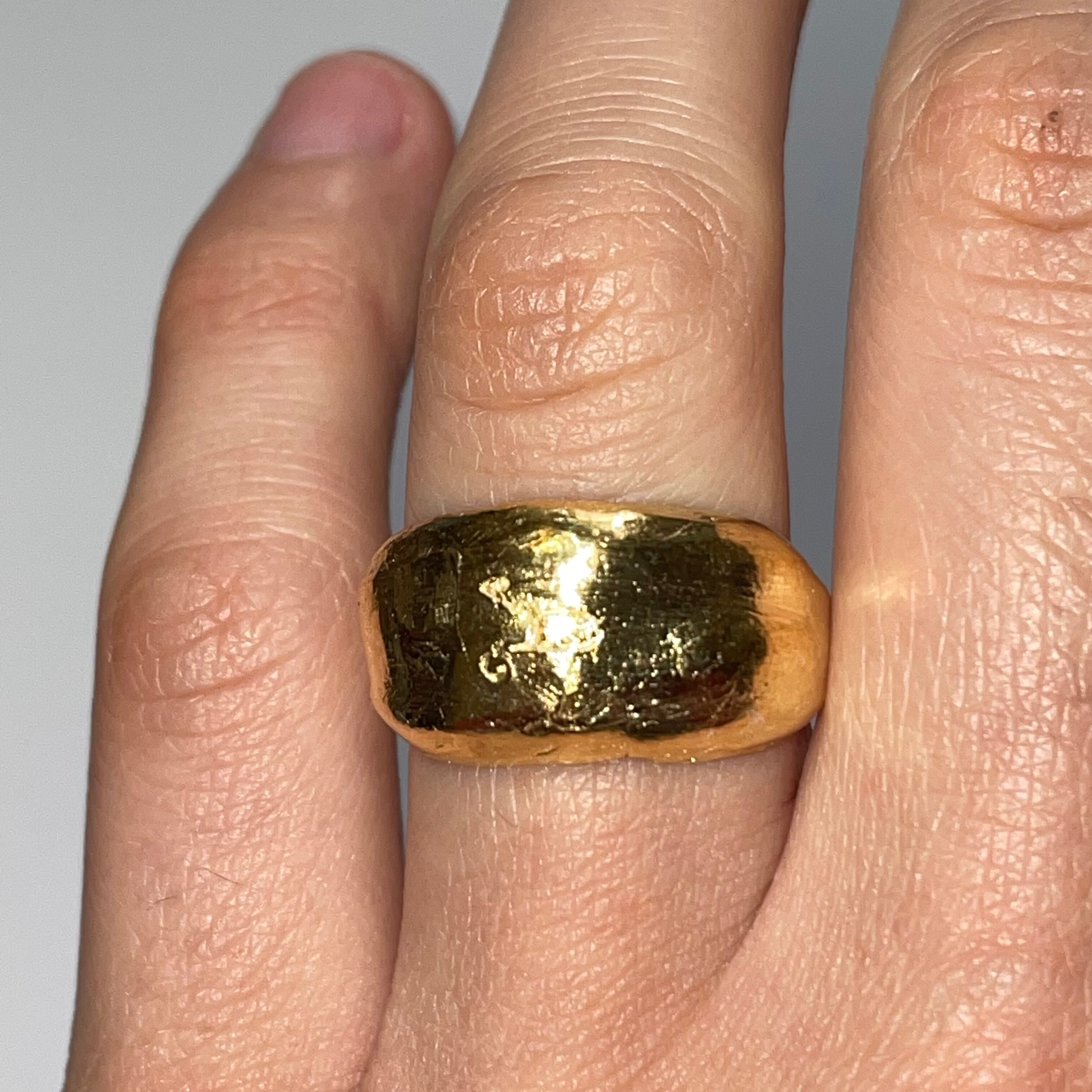 A silver ring made of recycled silver clay with a purity of 99.9% or higher.