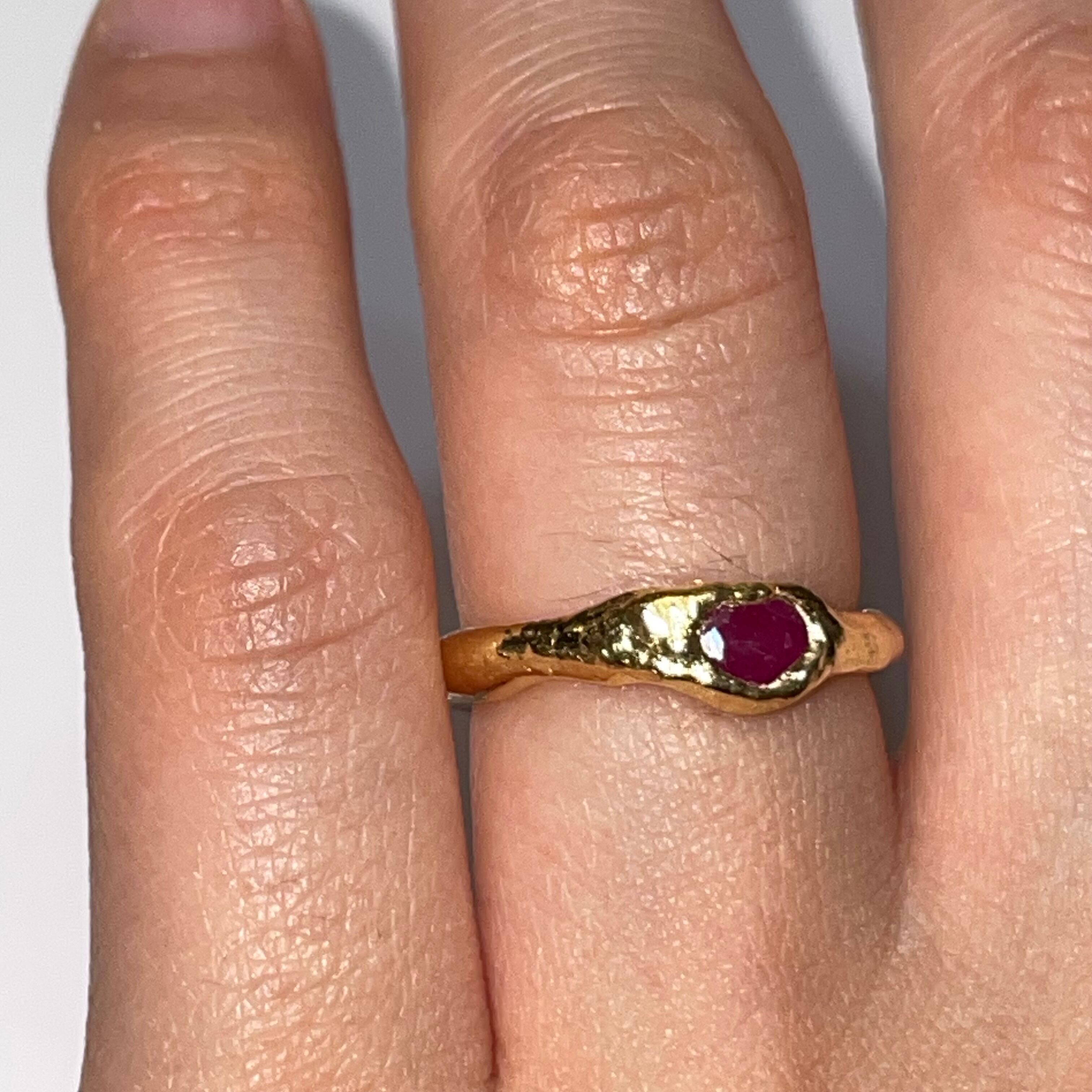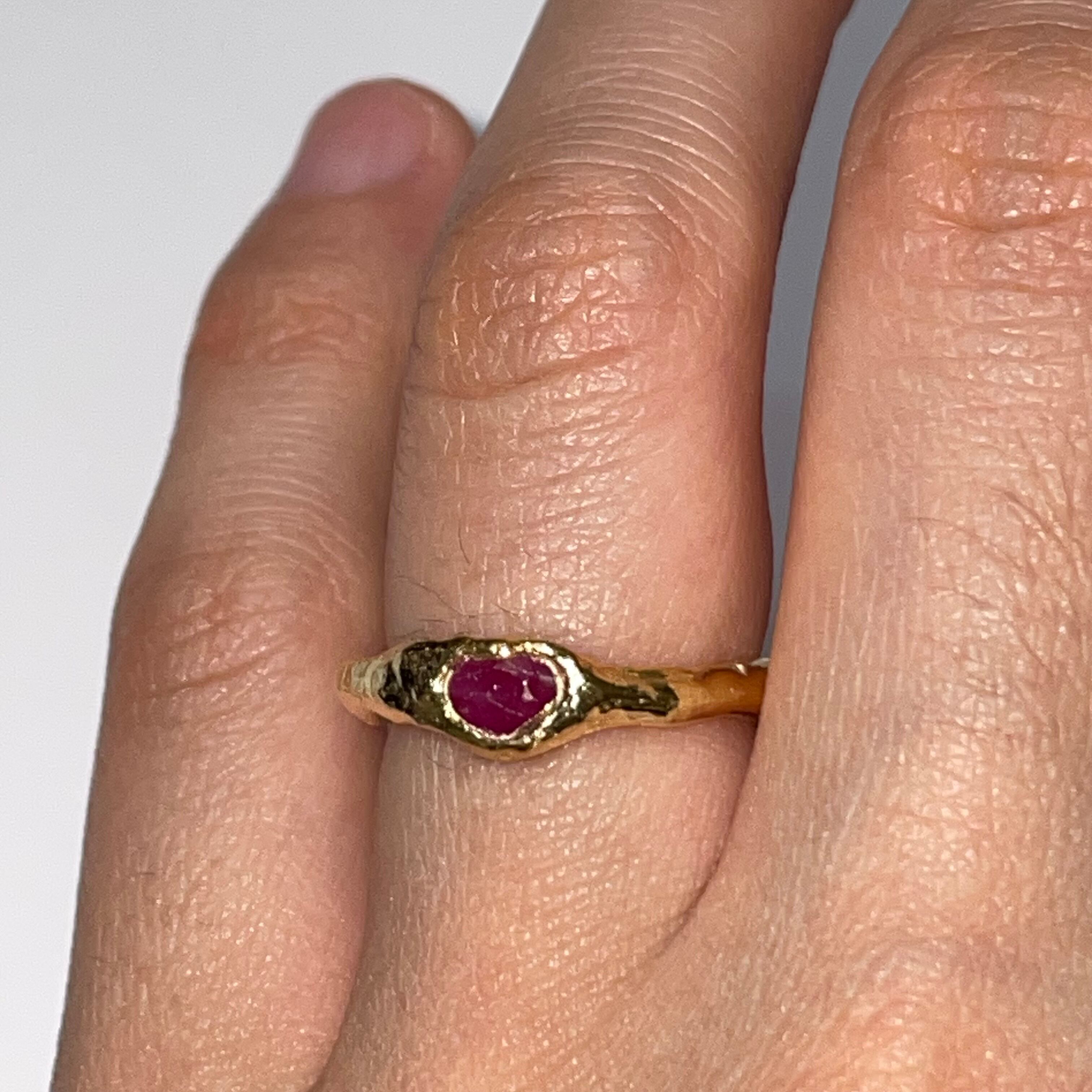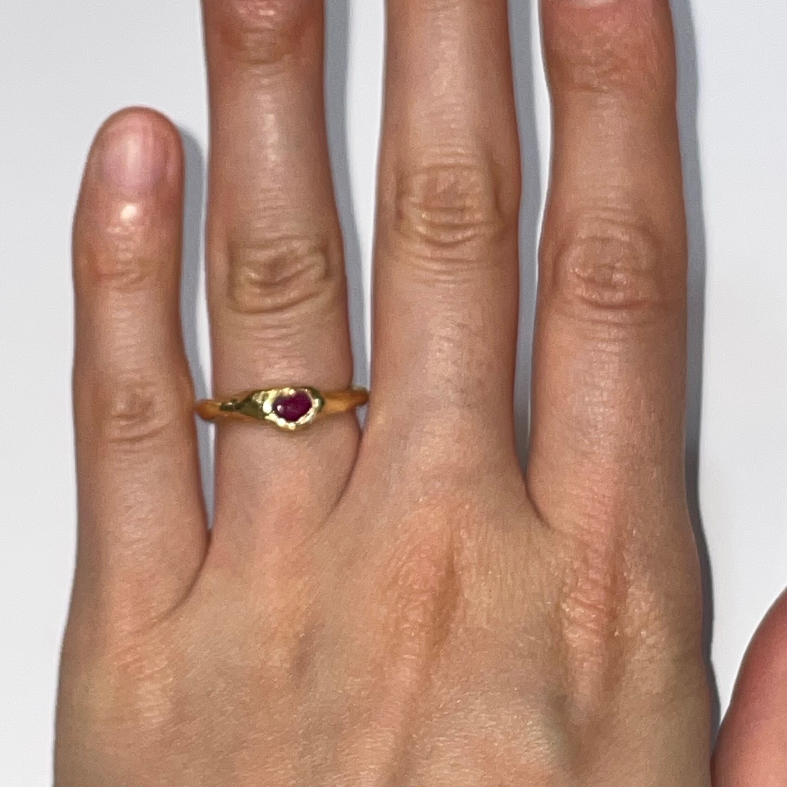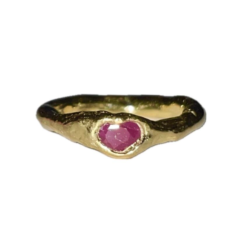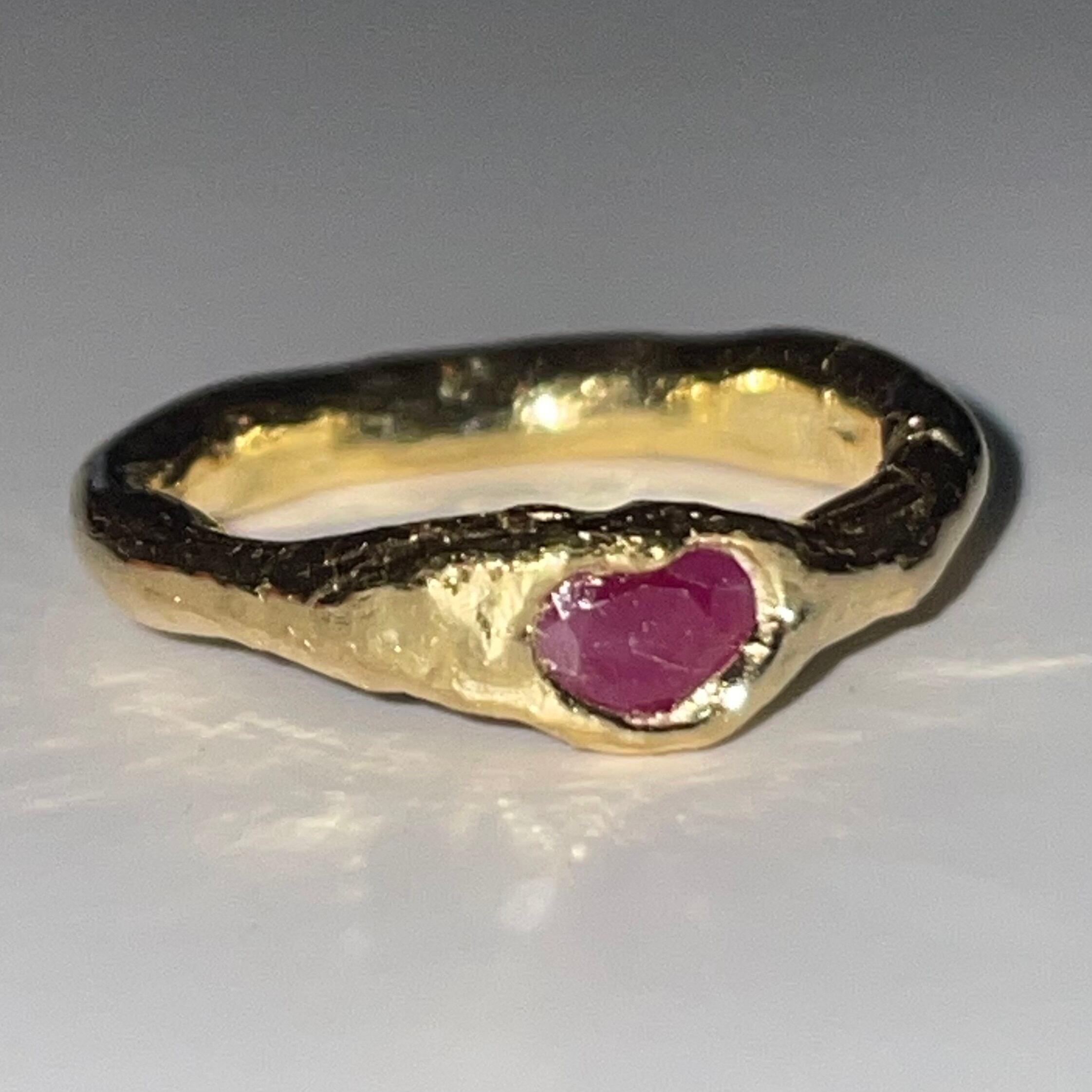 純度99.9%以上のリサイクル銀粘土に天然のルビーを埋め込んで焼き上げたシルバーリングです。