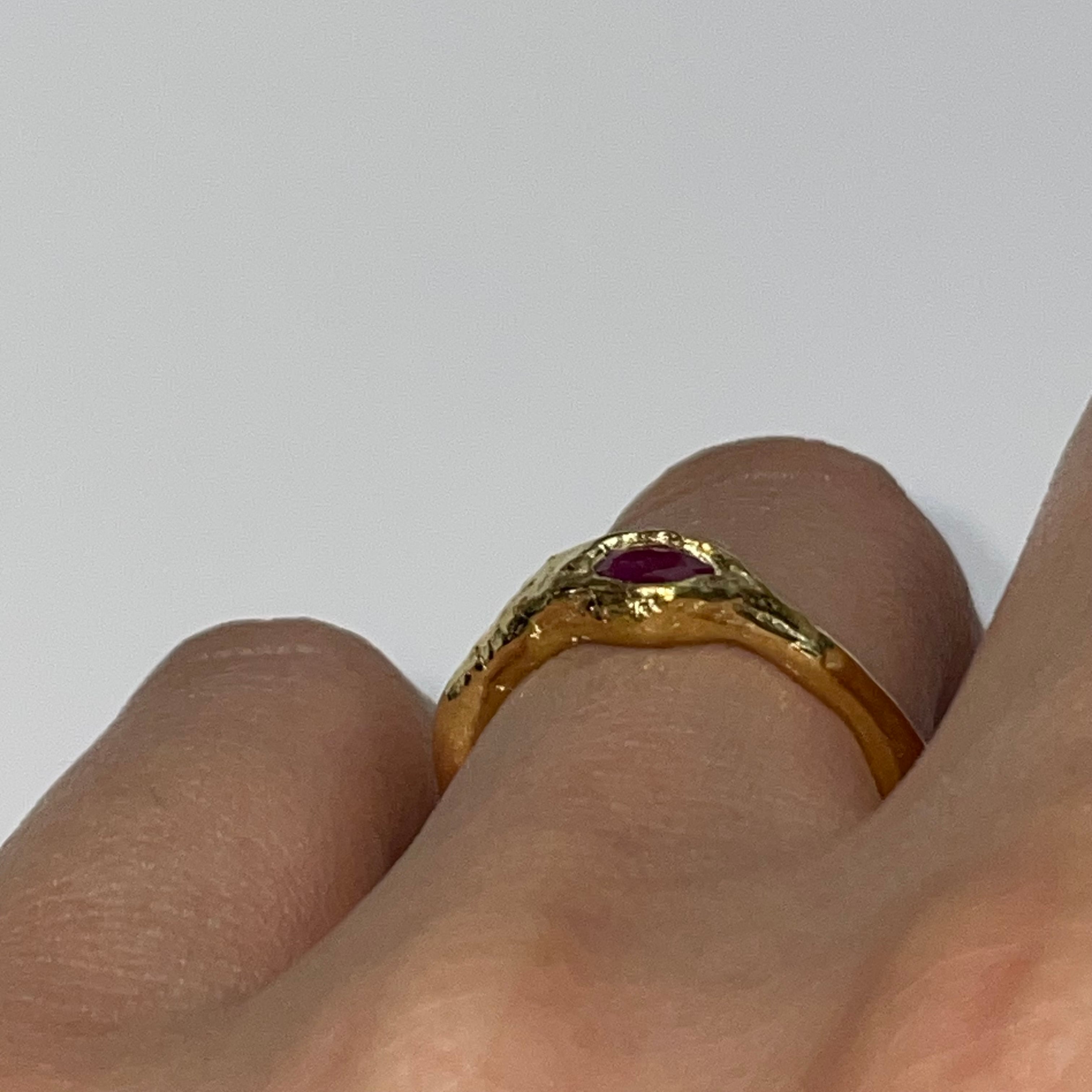 Material: Sterling silver (99.9%), Ruby, 24-karat gold plating