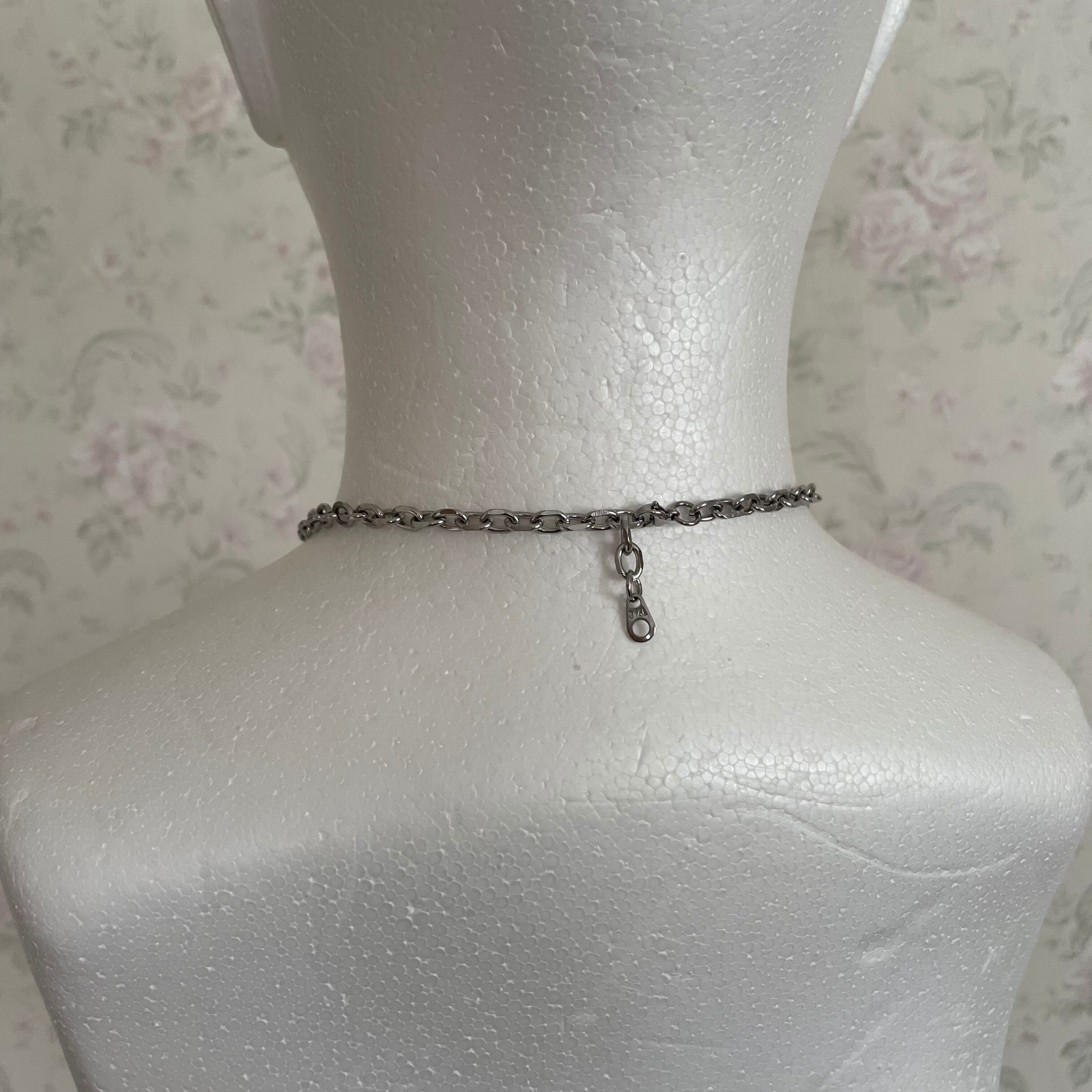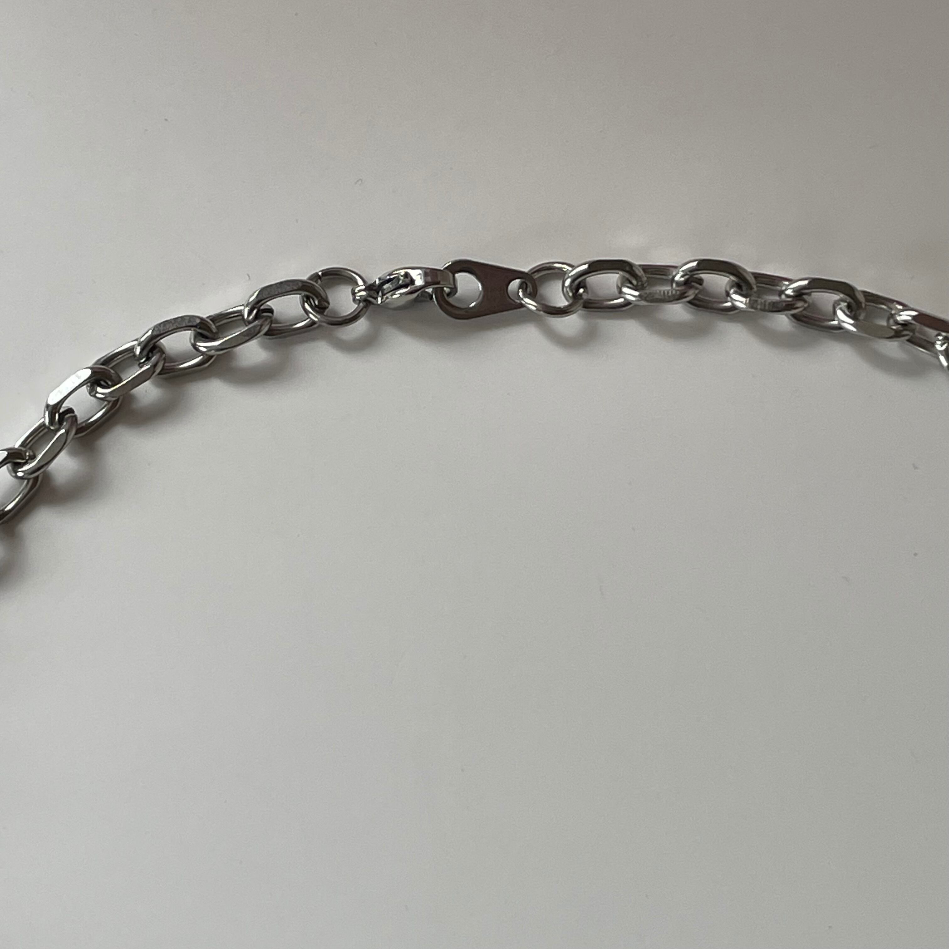 Necklace using a stainless steel chain.