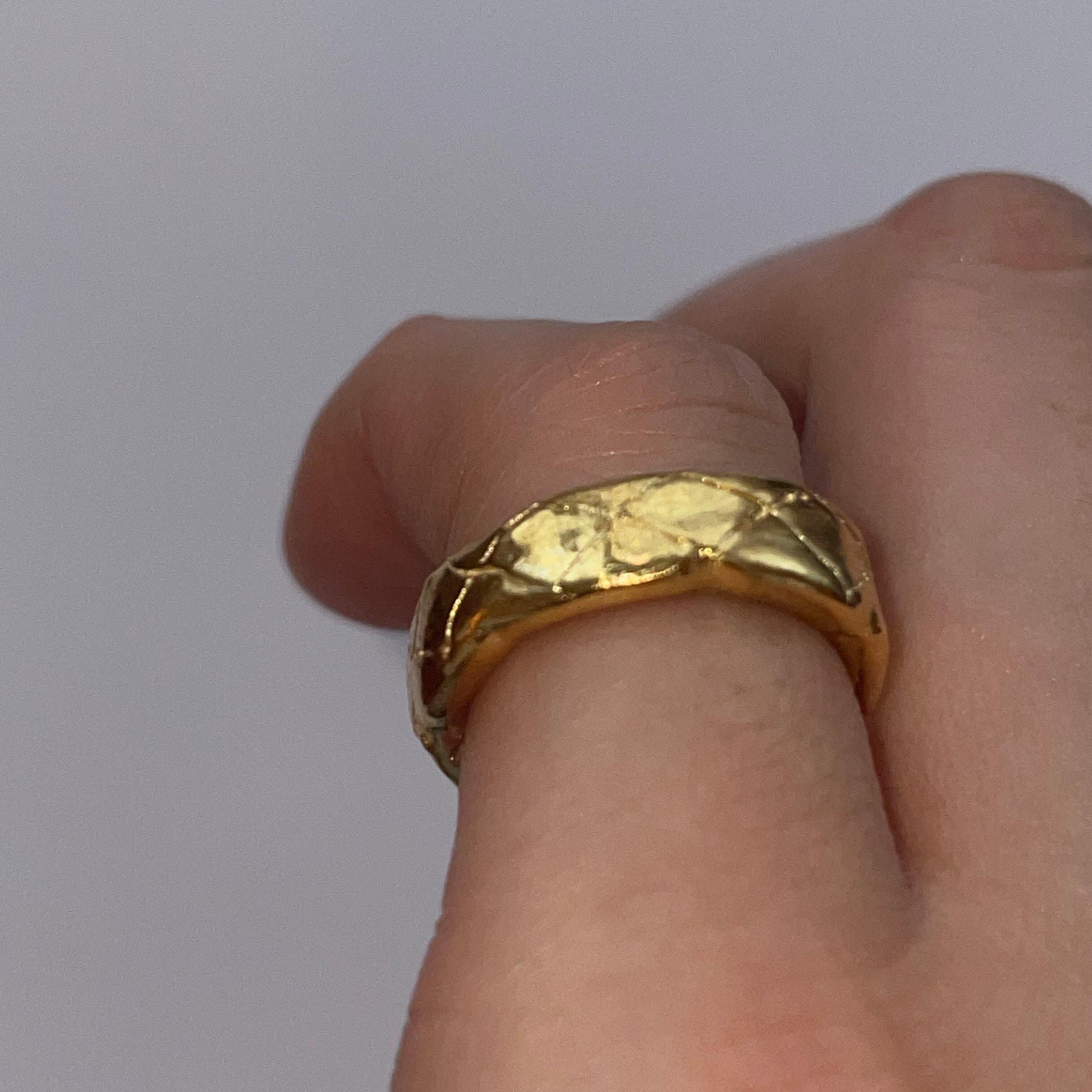 A silver ring made of recycled silver clay with a purity of 99.9% or higher.
