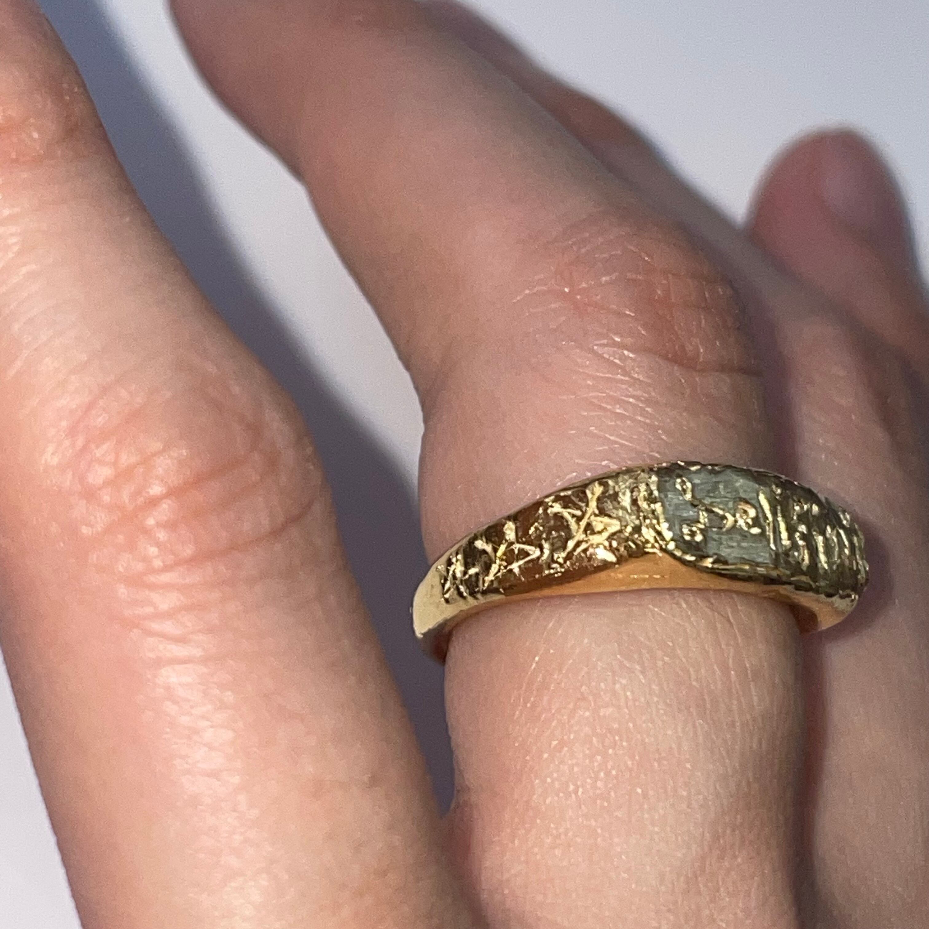 A silver ring made of recycled silver clay with a purity of 99.9% or higher.