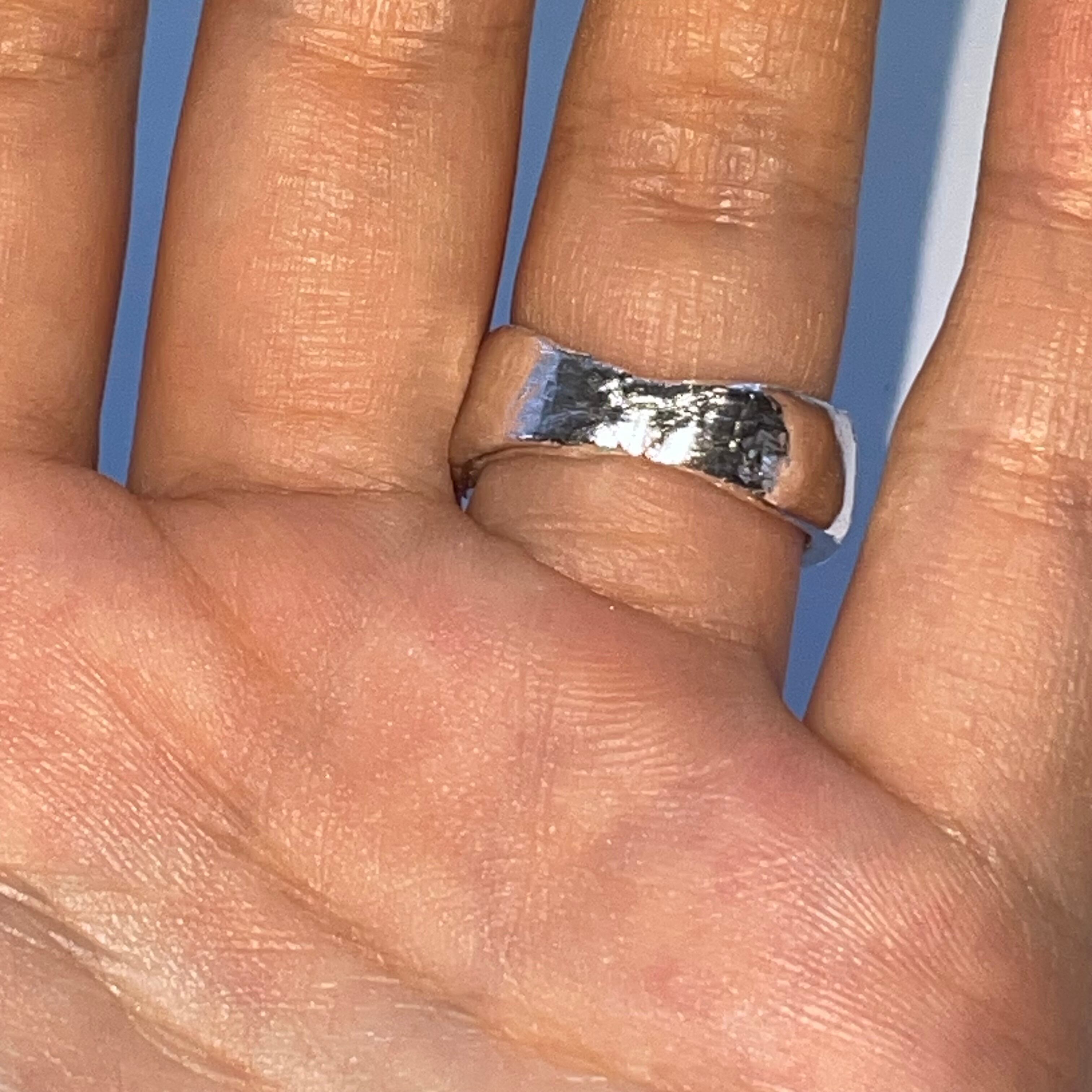 A silver ring made of recycled silver clay with a purity of 99.9% or higher.