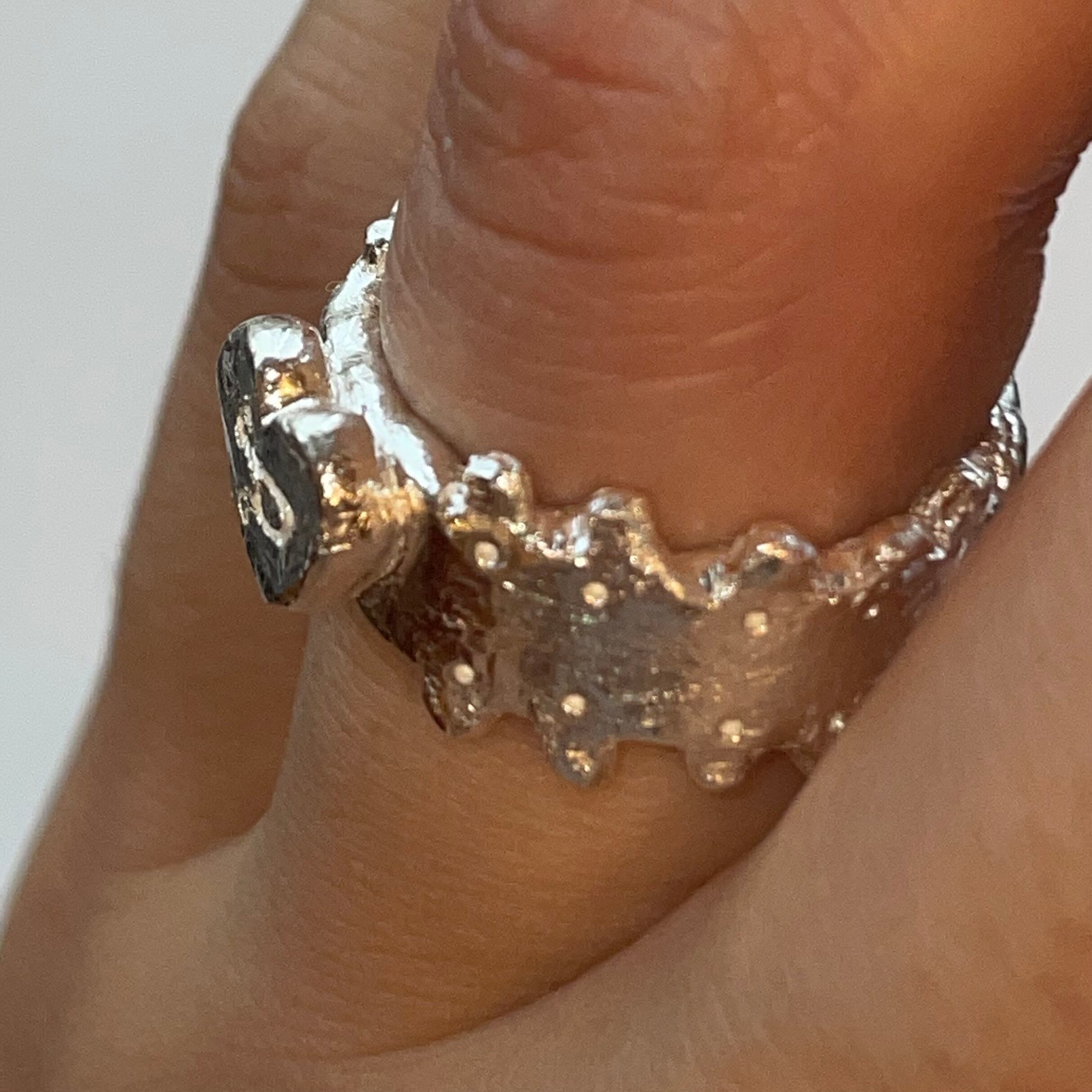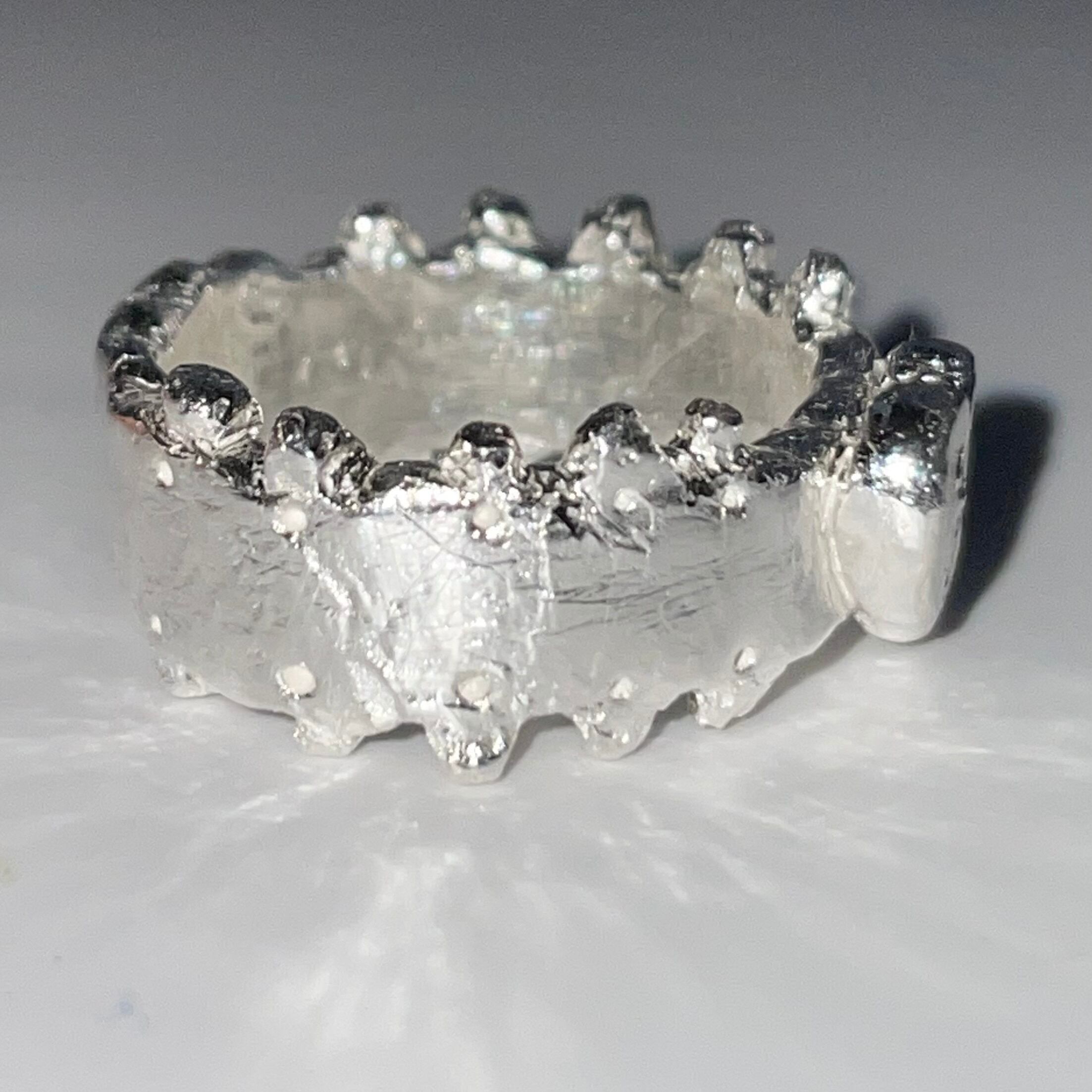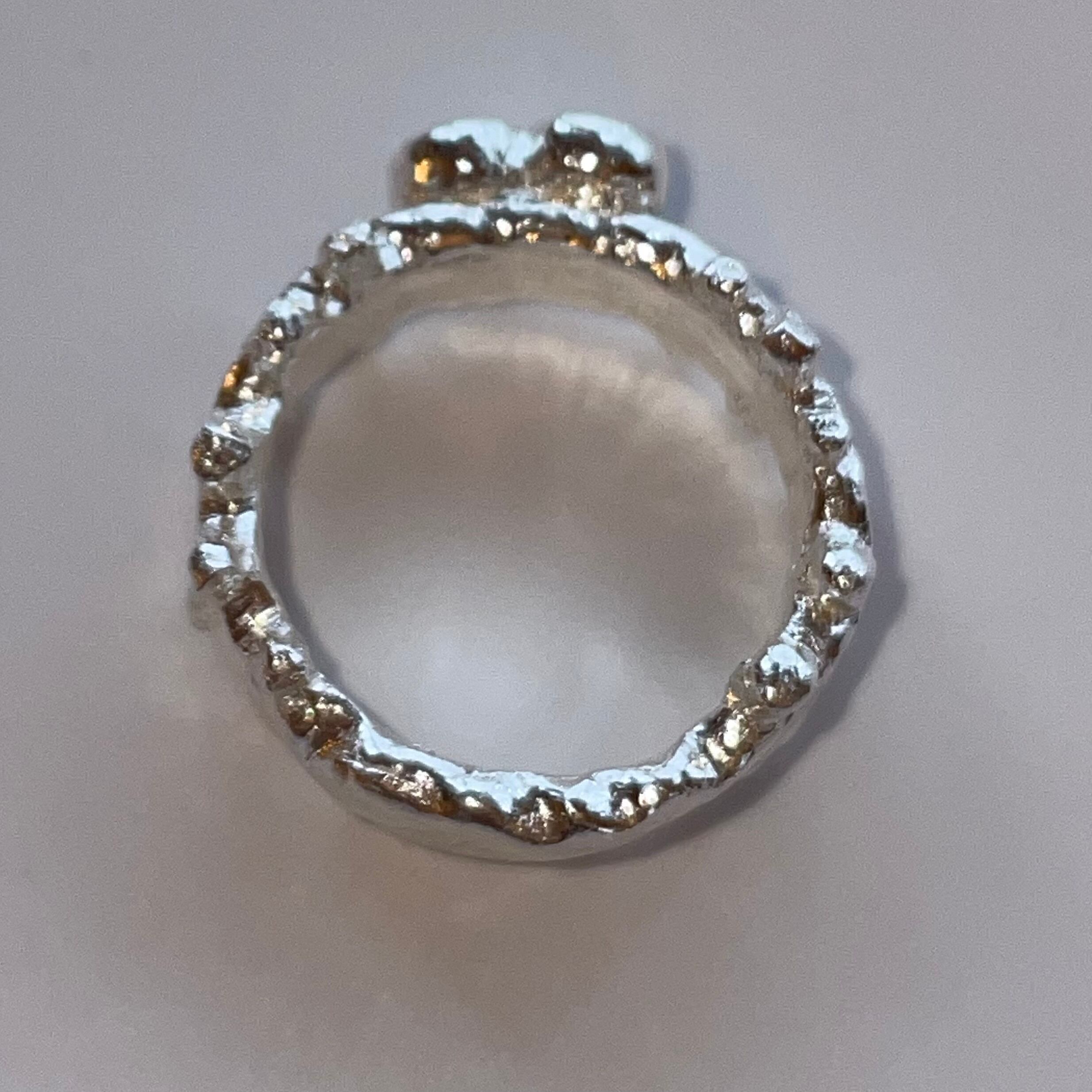 A silver ring made of recycled silver clay with a purity of 99.9% or higher.
