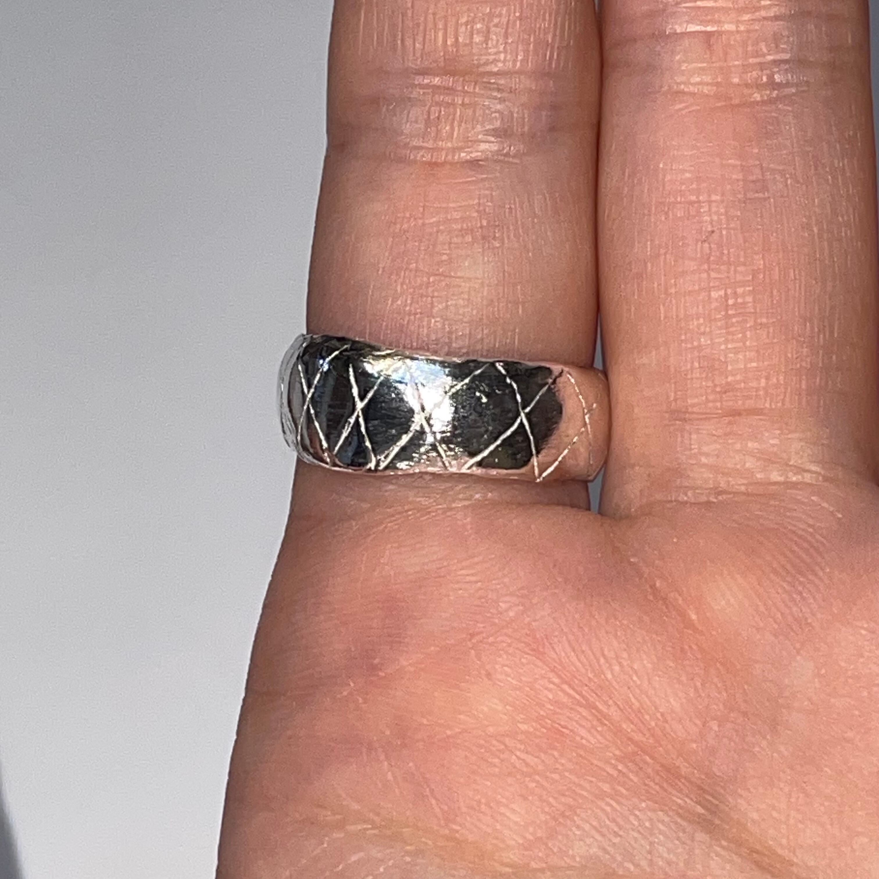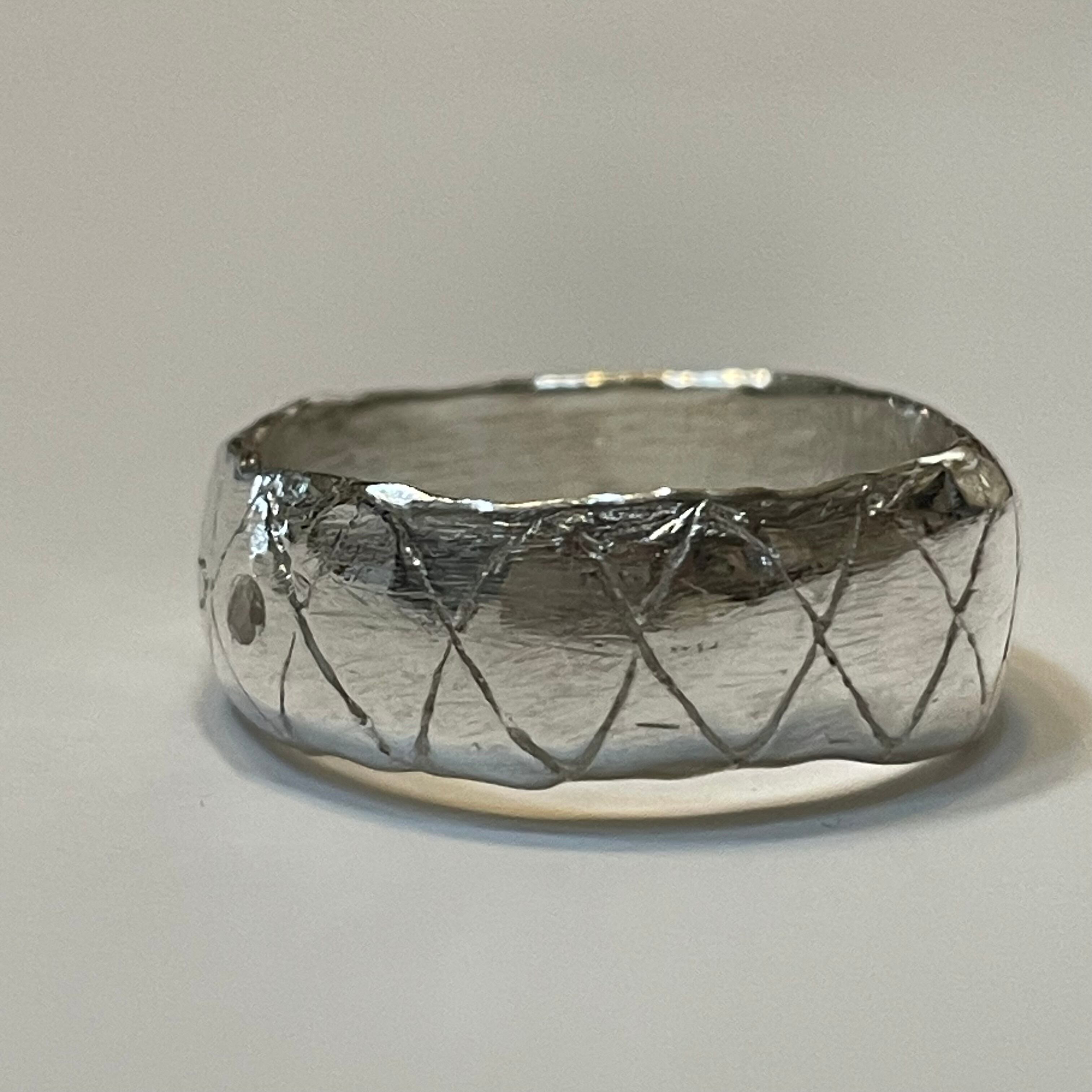 A silver ring made of recycled silver clay with a purity of 99.9% or higher.