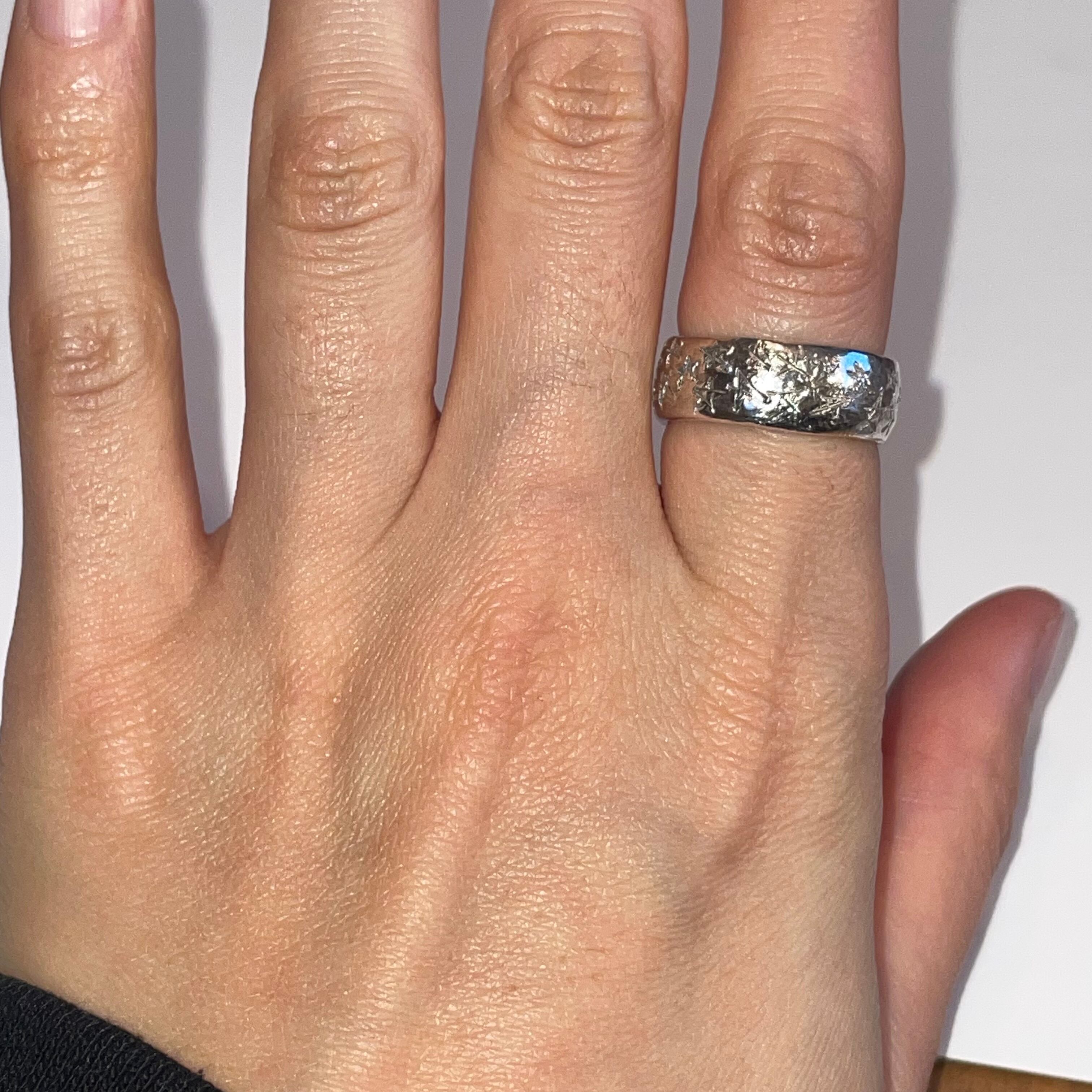A silver ring made of recycled silver clay with a purity of 99.9% or higher.